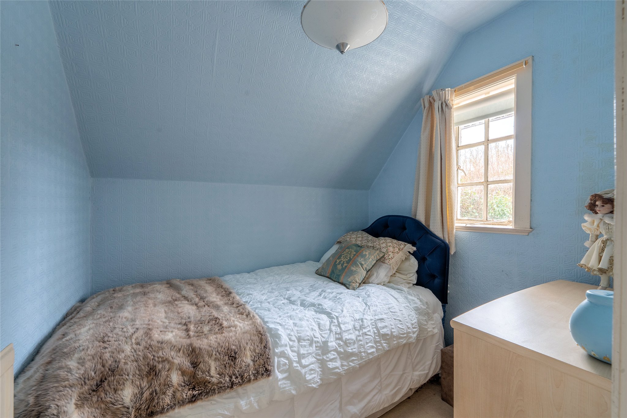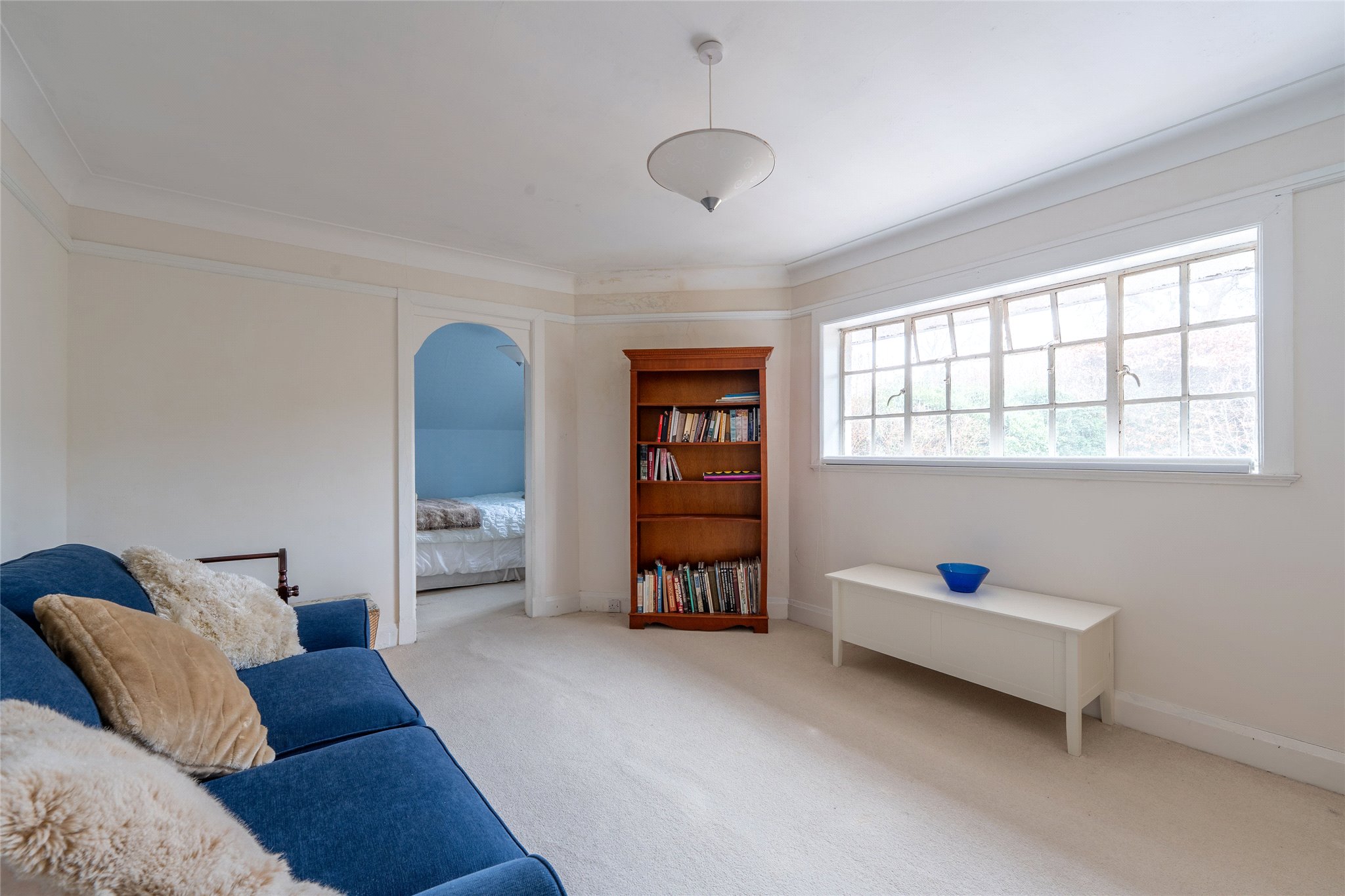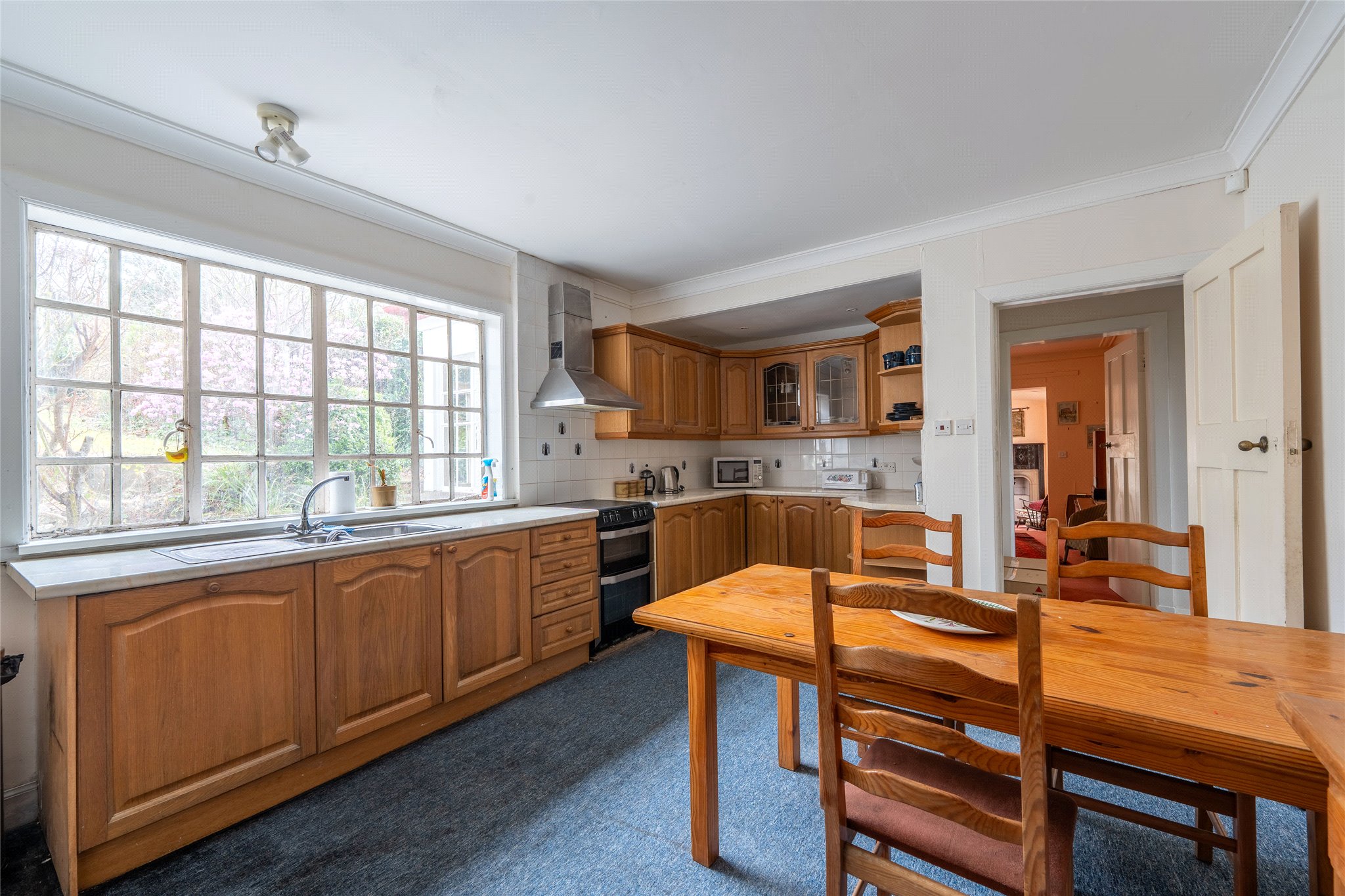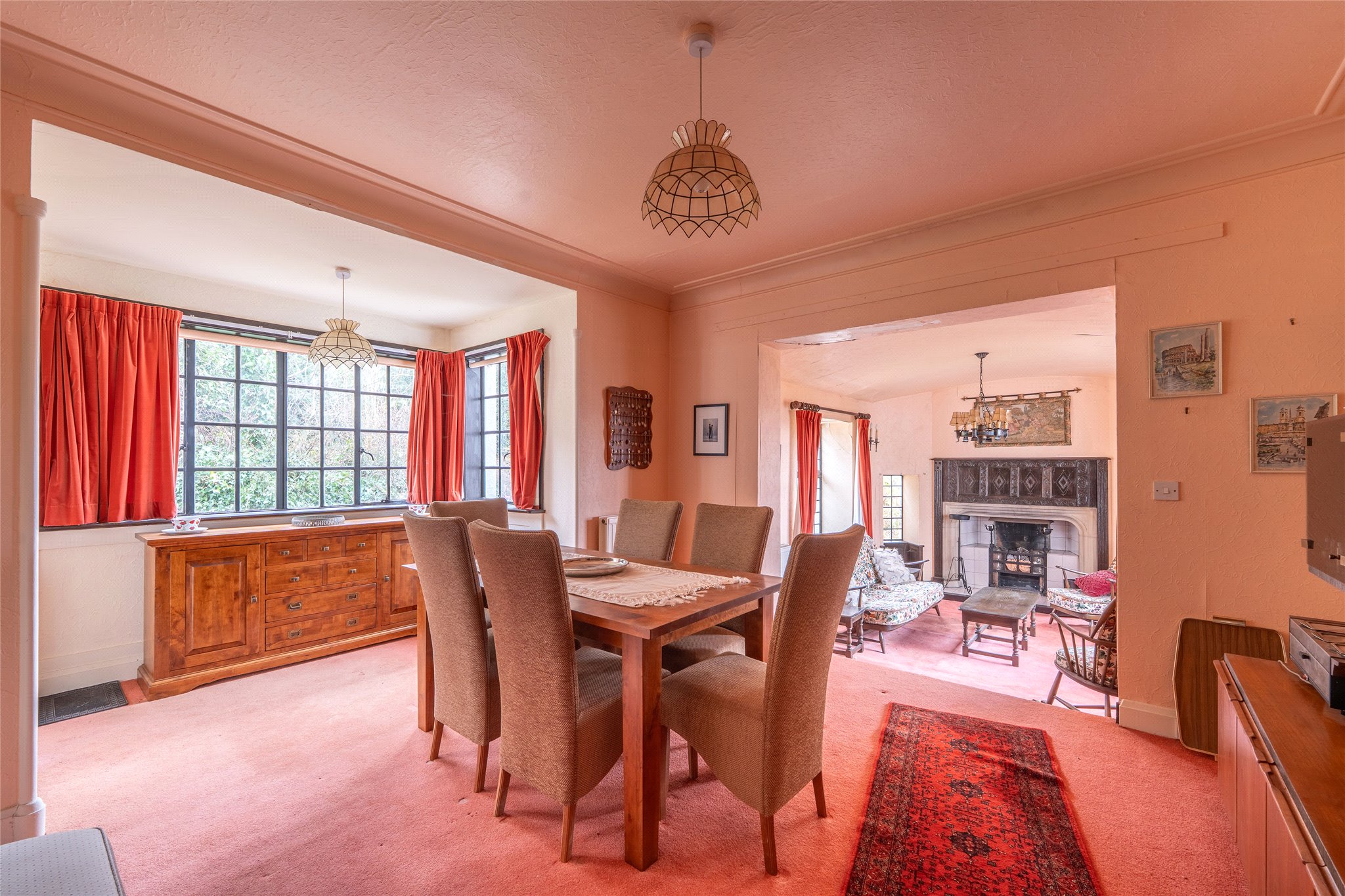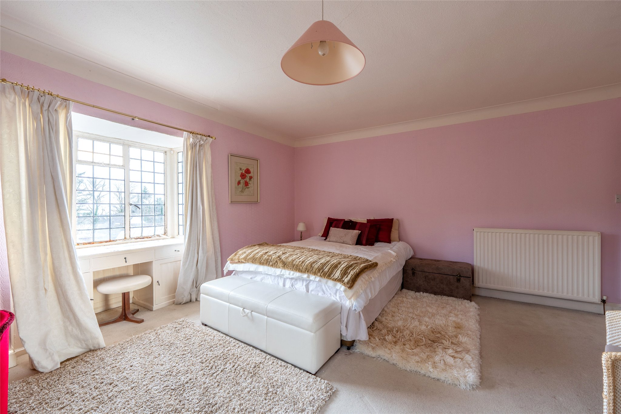 Built in 1925 for James Sturrock of Forebank Dye Works in Dundee and now requiring modernisation, this rarely available five-bedroom Arts and Crafts home in Newport-on-Tay offers a unique opportunity to create a stunning family residence. Characterised by generous proportions, versatile interiors, and timeless architectural charm as well as breathtaking River Tay views, the property is nestled within mature gardens, promising an idyllic setting. A gravel driveway guides you to the front door, where you step into an inviting entrance foyer and hallway. To the right, a west-facing living room, bathed in natural light, from a curved bay window features a rich mahogany open fireplace as its focal point whilst carpeting and a soft colour palette enhance its appeal. Warm and welcoming it then flows seamlessly into an adjoining carpeted sunroom, where cottage-style multi-pane windows frame captivating views of the River Tay, making it an ideal spot to unwind. The home’s impressive layout continues with a dual-aspect sitting room again resplendent with cottage-style multi-pane windows offering tranquil water views. Featuring a magnificent ornate fireplace, it is perfect for cosy evenings or entertaining and leads via steps into a bright, formal dining room which in turn guides you to a south-east-facing conservatory opening to the garden. Moving into the kitchen, oak-effect wall and floor units, a white tiled splashback, and smooth white worktops sit alongside an oven and extractor hood. South-east-facing and boasting a sizeable layout it allows for dining and relaxed family gatherings. Completing the ground floor are two convenient WCs, an office, and a bedroom/spacious study, perfect for home working. A vestibule with built-in storage also offers garden access. Ascending the carpeted staircase, a light and airy landing featuring built-in storage leads to four/five well-presented bedrooms: three generously proportioned doubles and two comfortable singles. Offering excellent versatility depending on specific needs, one of the singles could be utilised as a study and one of the doubles is currently styled as a light-filled south-east-facing family room. All bedrooms share access to a well-appointed modern bathroom, featuring a WC, washbasin, bath with wall-mounted shower, and a sleek chrome towel radiator.