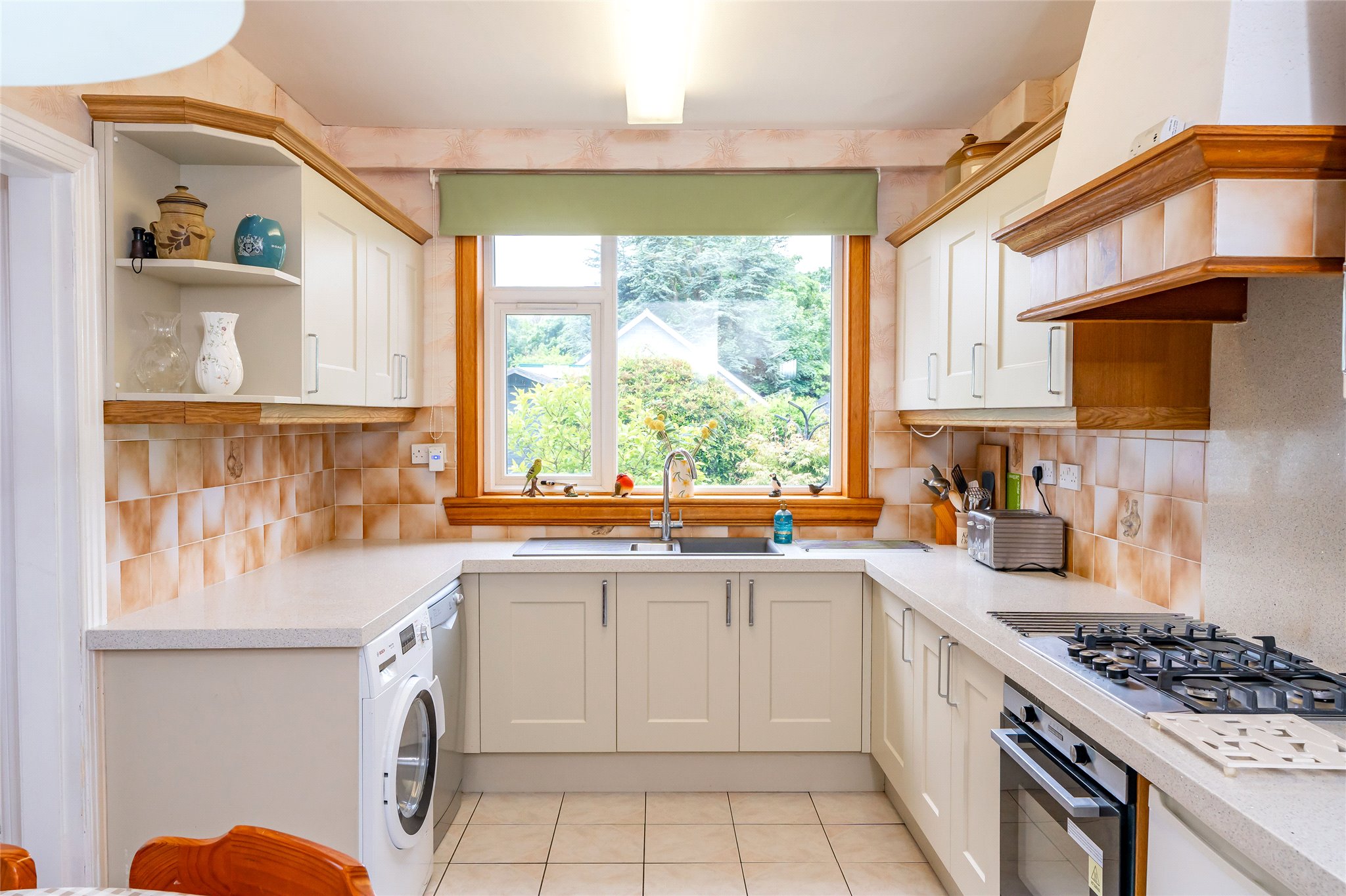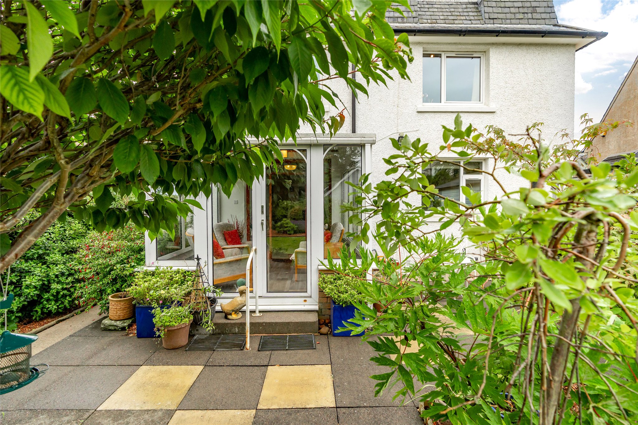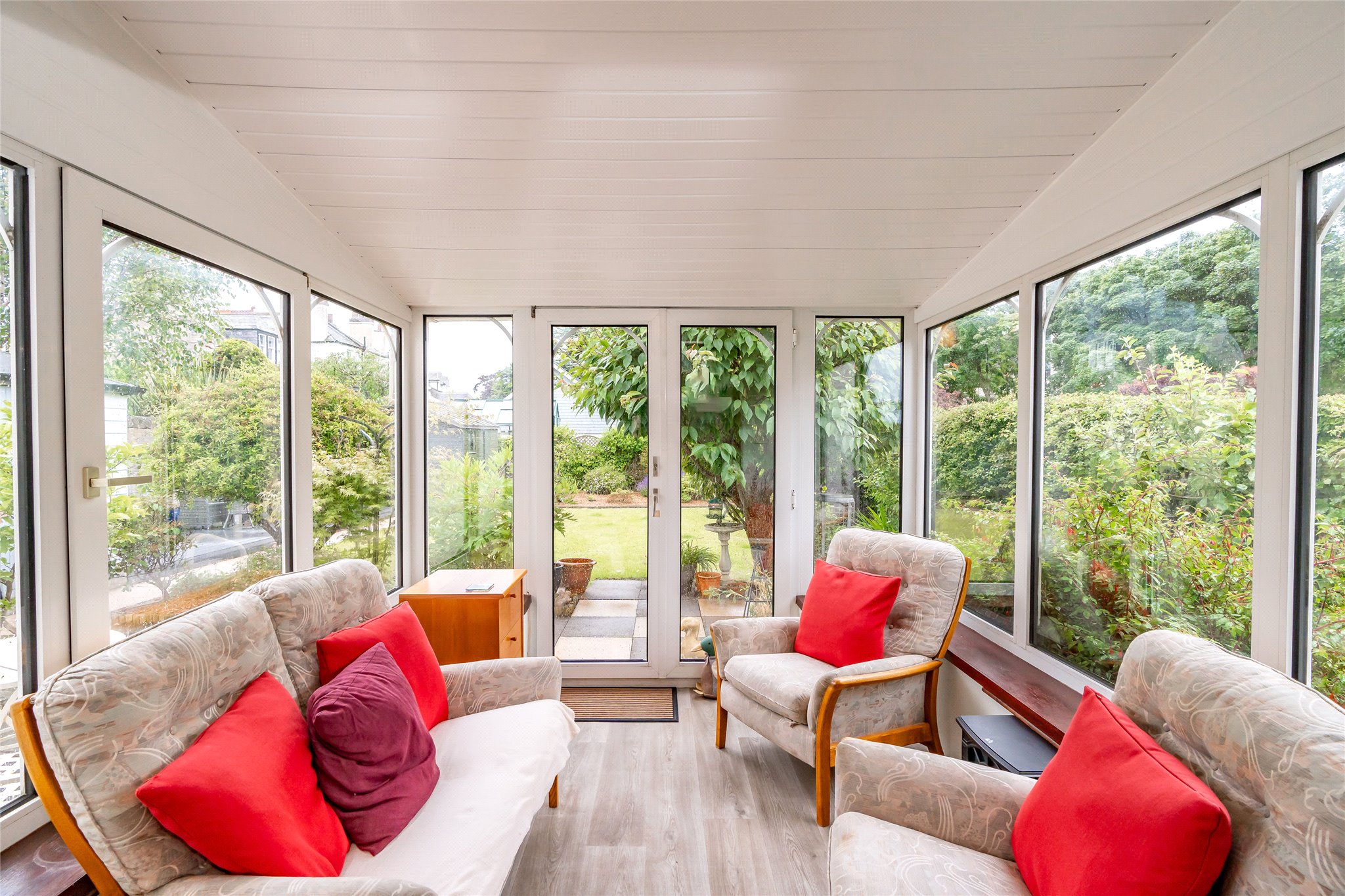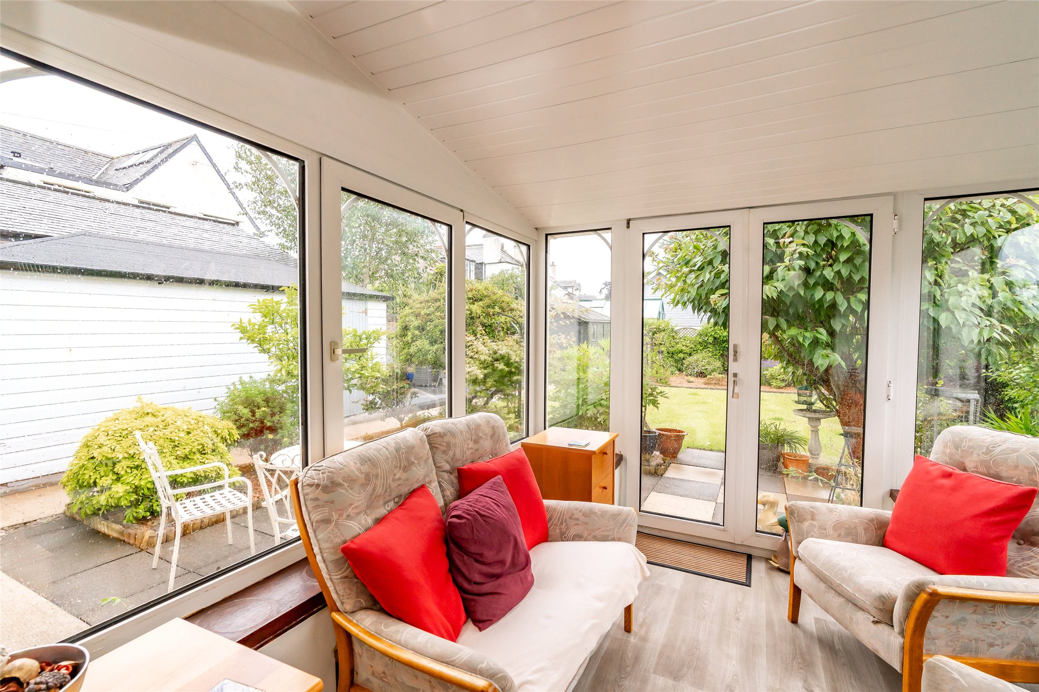 Lying minutes from East Sands Beach this deceptively spacious six-bedroom home in a sought-after St Andrews locale presents a superb opportunity for a comfortable family lifestyle. Welcomed by a neat front garden nestled behind a low stone wall and bordering the driveway and detached garage, the front door ushers you into an entrance vestibule and carpeted hallway. To your left, a south-east-facing living room enjoys a delightful front garden aspect, through a large box bay picture window. Cosy and inviting the interior design showcases plush carpeting, a statement accent wall, and an electric fireplace nestled in an oak mantle. It also features a useful built-in cupboard. Returning to the hallway, you arrive at a well-appointed modern breakfasting kitchen overlooking the rear garden. White shaker-style wall and floor units, worktops, and a tiled splashback in a muted natural tone are complemented by a gas hob, oven, and extractor hood. A large walk-in cupboard provides additional storage and houses the boiler. It doubles as a drying room since it has a radiator and also provides access to a guest WC. Adjacent to the kitchen, is a versatile dining room. Elegantly decorated with carpeting, a picture rail, and built-in shelving it leads to an appealing conservatory to create a wonderful space for hosting family gatherings and entertaining all year round. Boasting panoramic garden views and access, the conservatory with a calm colour palette and wood-inspired flooring is a serene retreat. Ascending the carpeted staircase, the first-floor houses four light and airy carpeted bedrooms, one of which is currently utilised as a study. Comfortable and tastefully decorated they each allow for versatile furniture configurations and share access to a contemporary wet room featuring a generous enclosure, washbasin built into vanity and a WC. Two south-east-facing, generously proportioned double bedrooms occupy the spacious second floor, with the larger room featuring built-in wardrobes. Alongside the bedrooms is a family bathroom equipped with a corner bath, WC, and washbasin. The floor also features fully floored eaves storage.