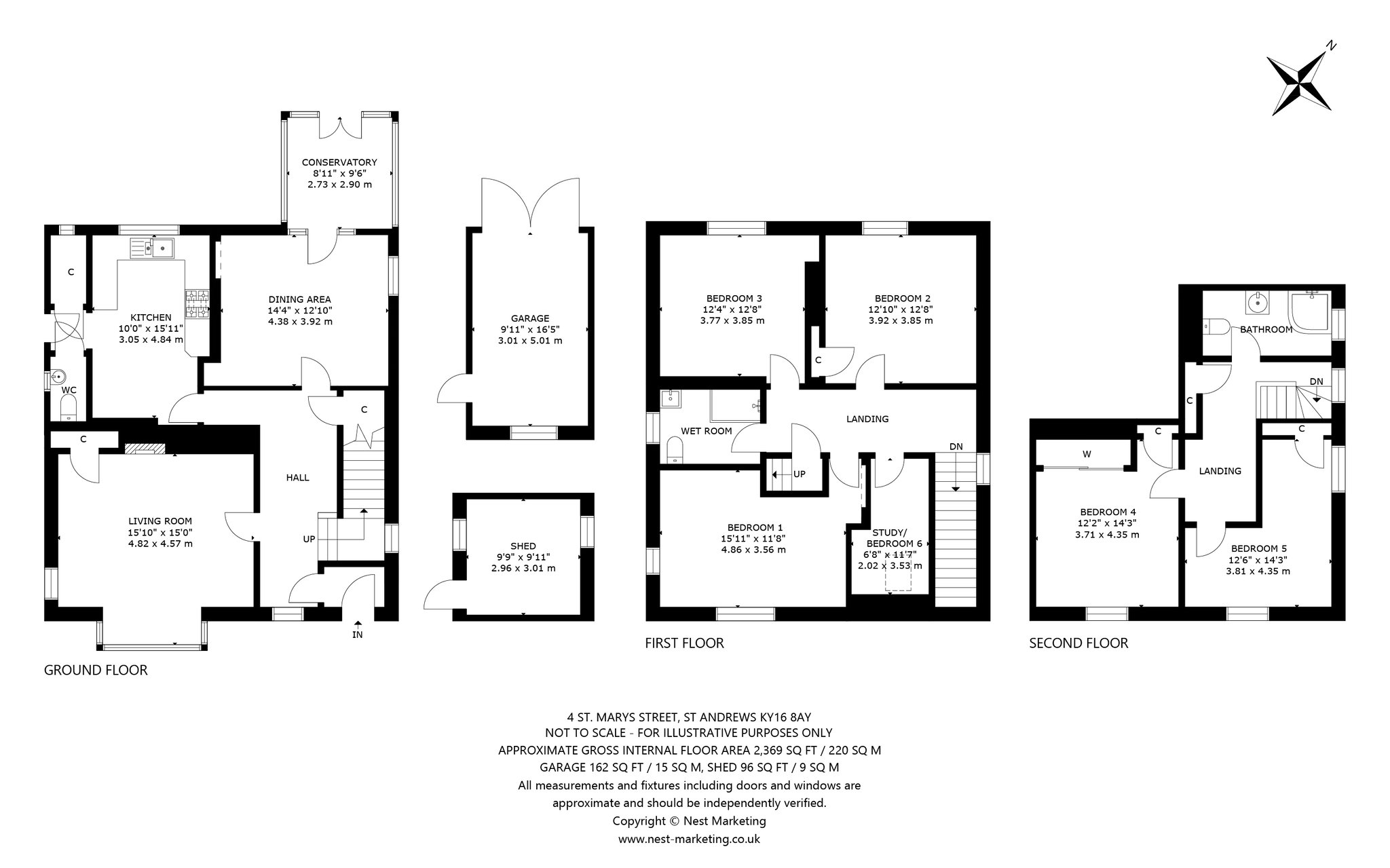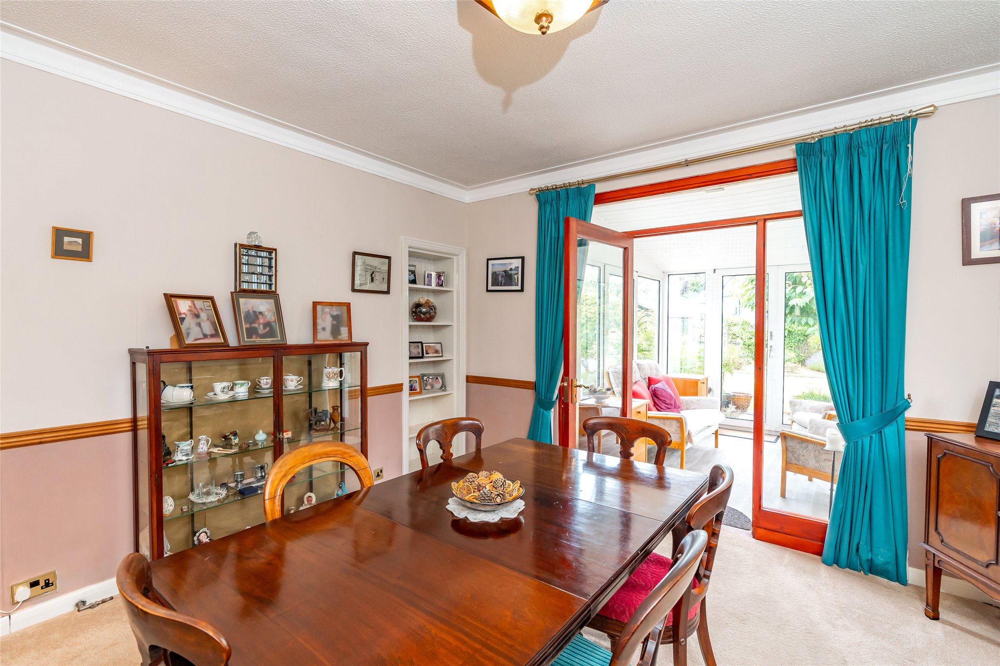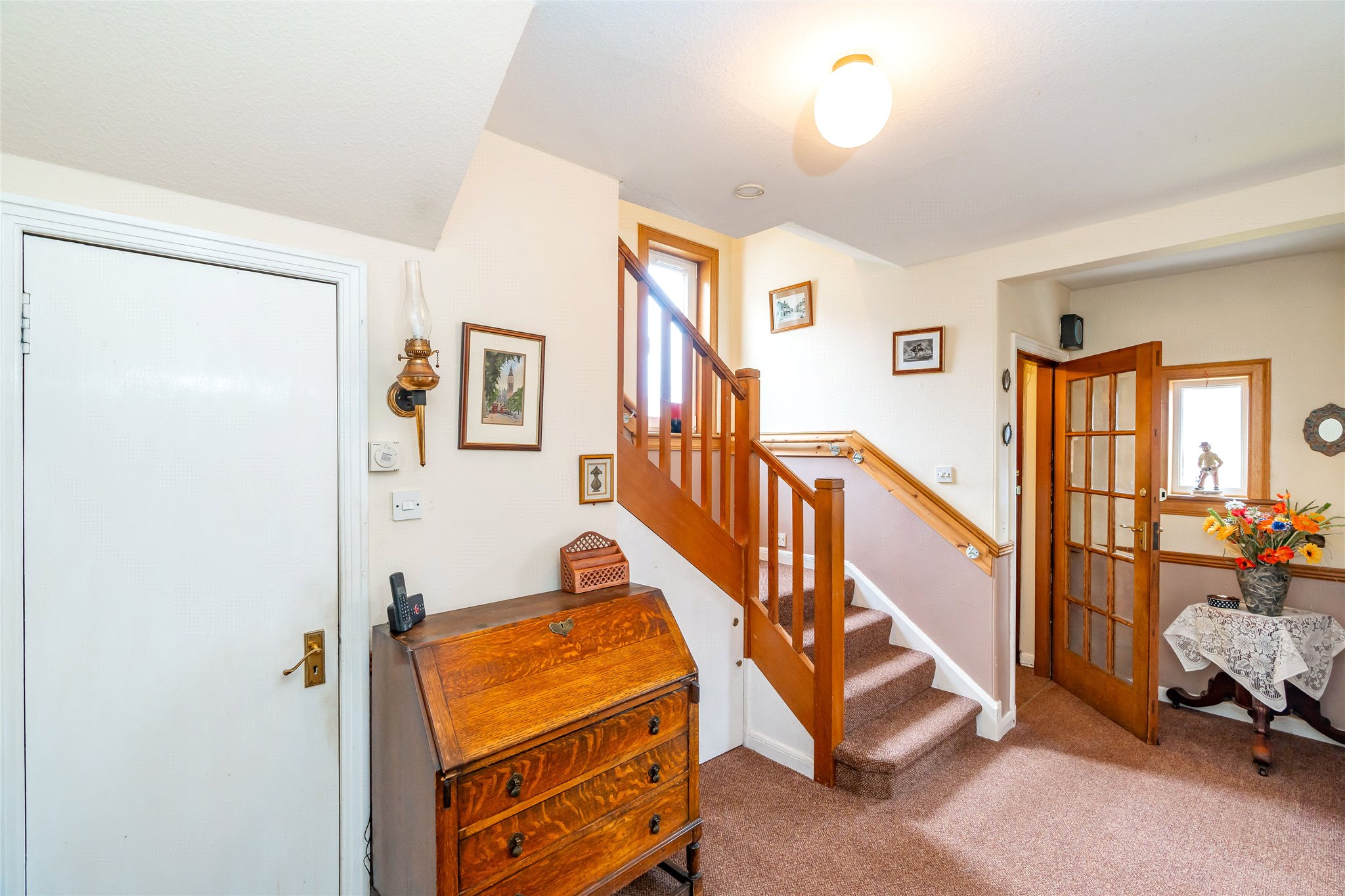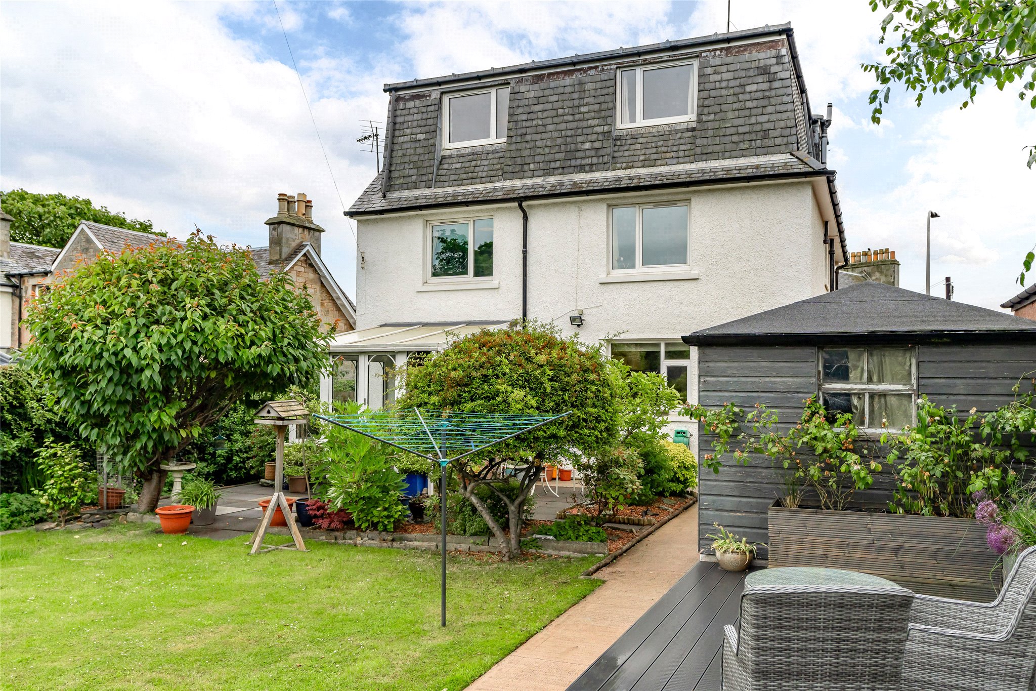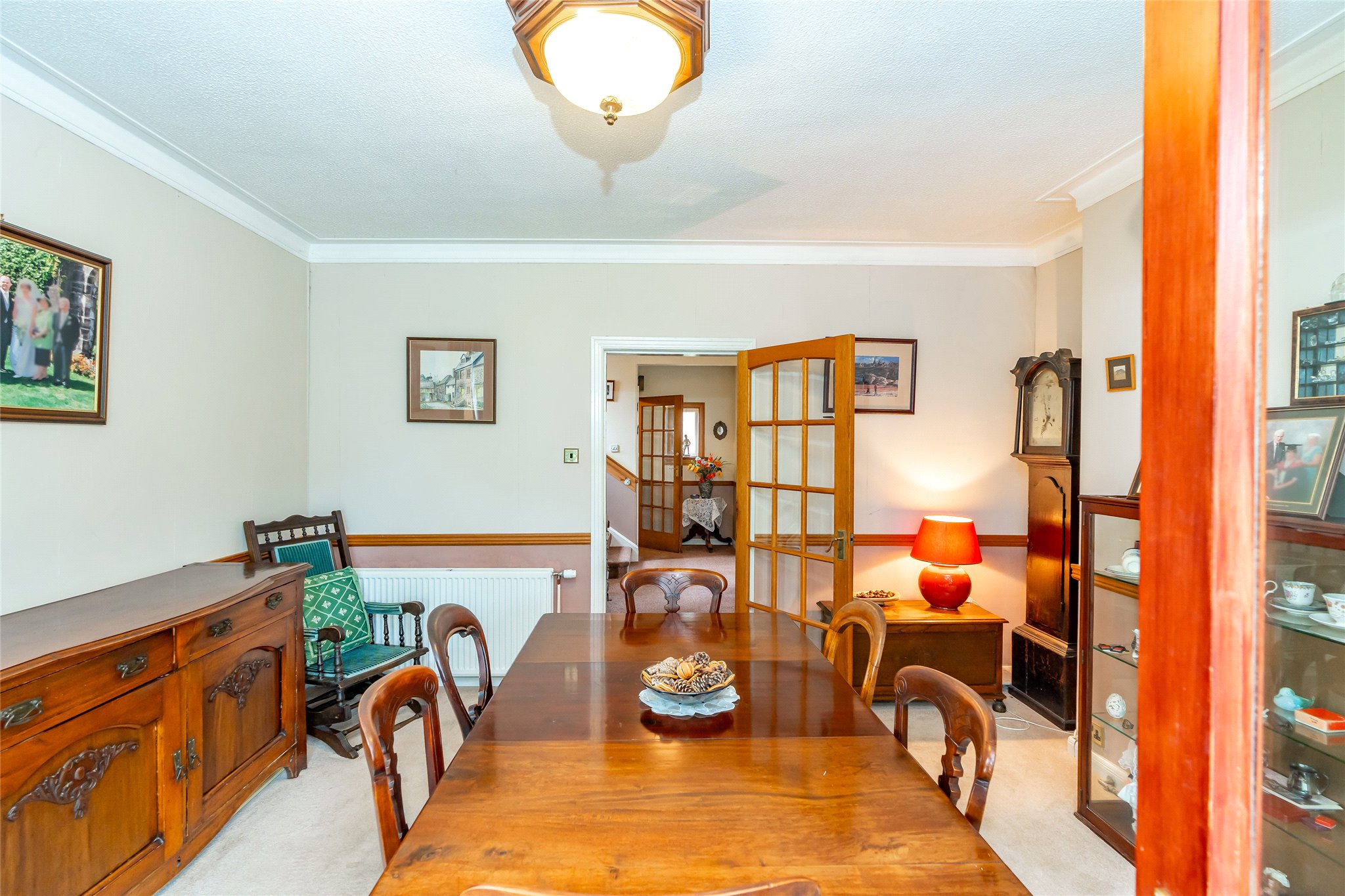 Lying minutes from East Sands Beach this deceptively spacious six-bedroom home in a sought-after St Andrews locale presents a superb opportunity for a comfortable family lifestyle. Welcomed by a neat front garden nestled behind a low stone wall and bordering the driveway and detached garage, the front door ushers you into an entrance vestibule and carpeted hallway. To your left, a south-east-facing living room enjoys a delightful front garden aspect, through a large box bay picture window. Cosy and inviting the interior design showcases plush carpeting, a statement accent wall, and an electric fireplace nestled in an oak mantle. It also features a useful built-in cupboard. Returning to the hallway, you arrive at a well-appointed modern breakfasting kitchen overlooking the rear garden. White shaker-style wall and floor units, worktops, and a tiled splashback in a muted natural tone are complemented by a gas hob, oven, and extractor hood. A large walk-in cupboard provides additional storage and houses the boiler. It doubles as a drying room since it has a radiator and also provides access to a guest WC. Adjacent to the kitchen, is a versatile dining room. Elegantly decorated with carpeting, a picture rail, and built-in shelving it leads to an appealing conservatory to create a wonderful space for hosting family gatherings and entertaining all year round. Boasting panoramic garden views and access, the conservatory with a calm colour palette and wood-inspired flooring is a serene retreat. Ascending the carpeted staircase, the first-floor houses four light and airy carpeted bedrooms, one of which is currently utilised as a study. Comfortable and tastefully decorated they each allow for versatile furniture configurations and share access to a contemporary wet room featuring a generous enclosure, washbasin built into vanity and a WC. Two south-east-facing, generously proportioned double bedrooms occupy the spacious second floor, with the larger room featuring built-in wardrobes. Alongside the bedrooms is a family bathroom equipped with a corner bath, WC, and washbasin. The floor also features fully floored eaves storage.