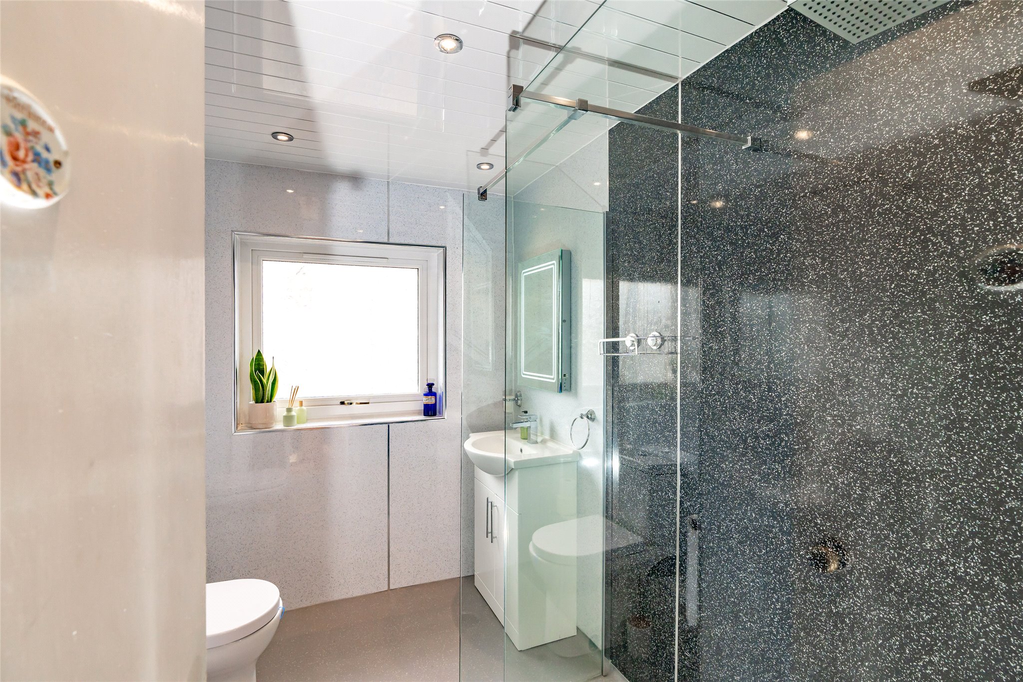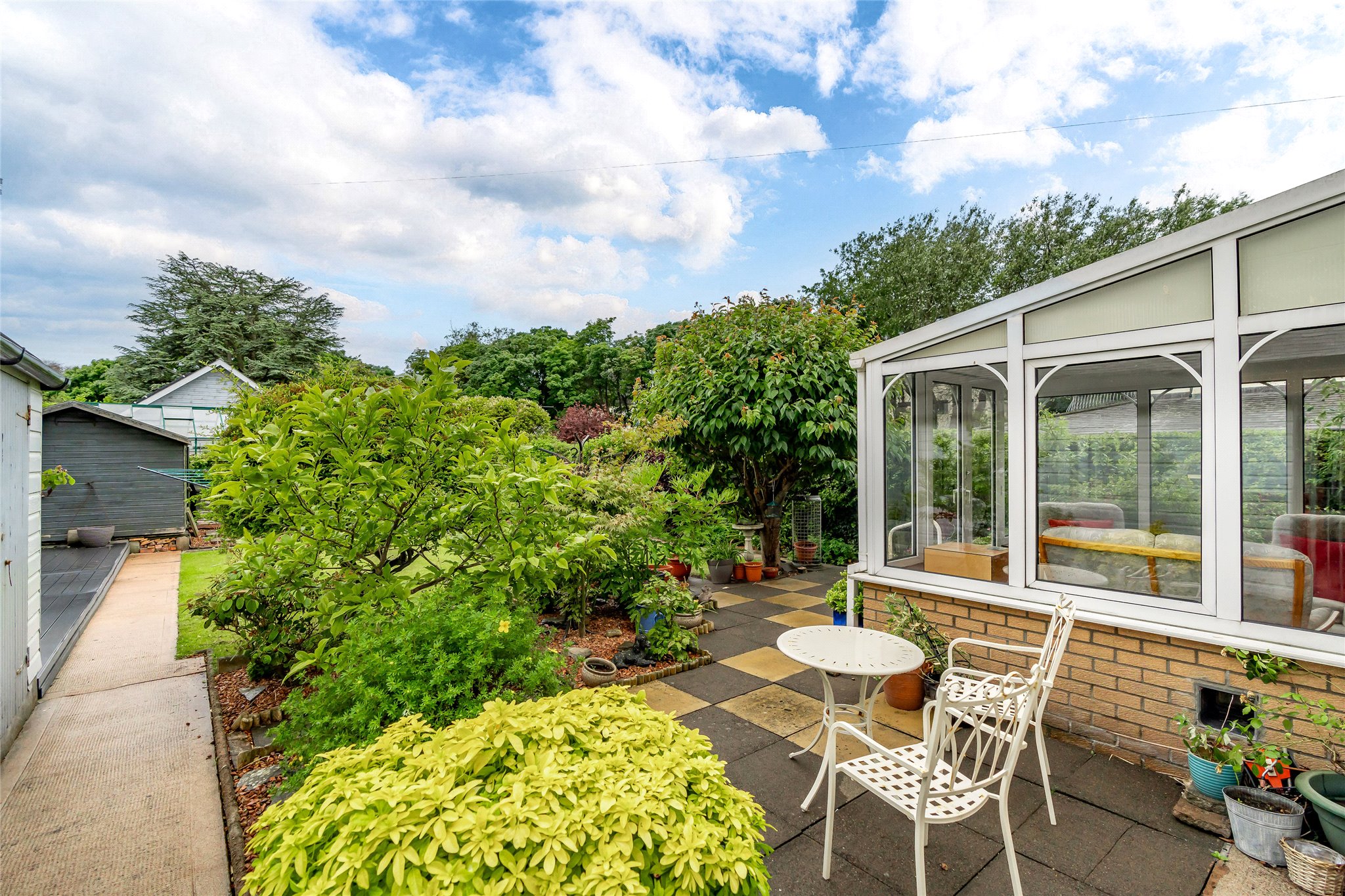 At the rear, the expansive landscaped garden enclosed by hedging and a stone wall, enjoys a meticulous design of a manicured lawn, paving, pretty borders, and composite decking to create a peaceful and idyllic retreat. A garden shed offers storage for gardening equipment and furniture.