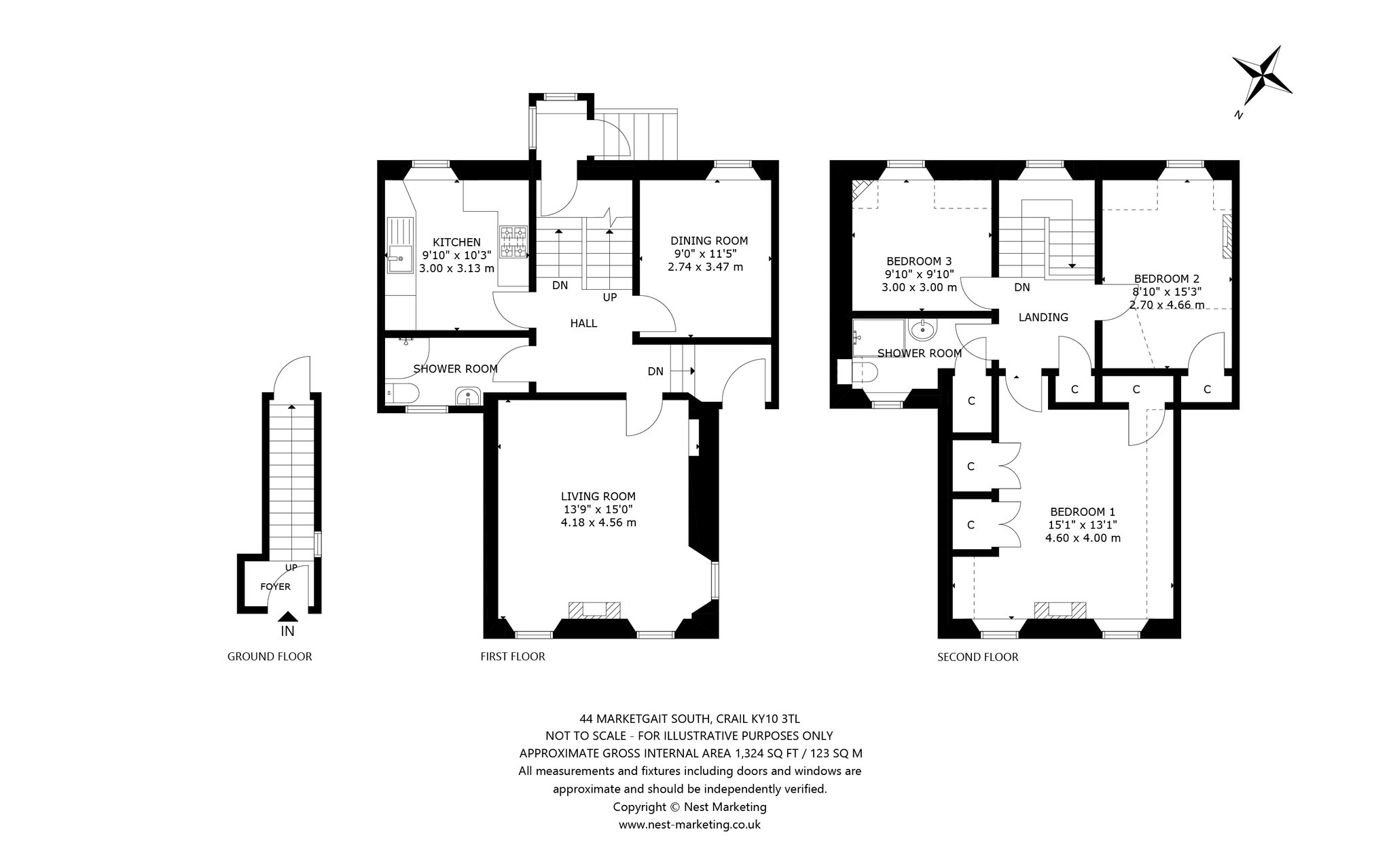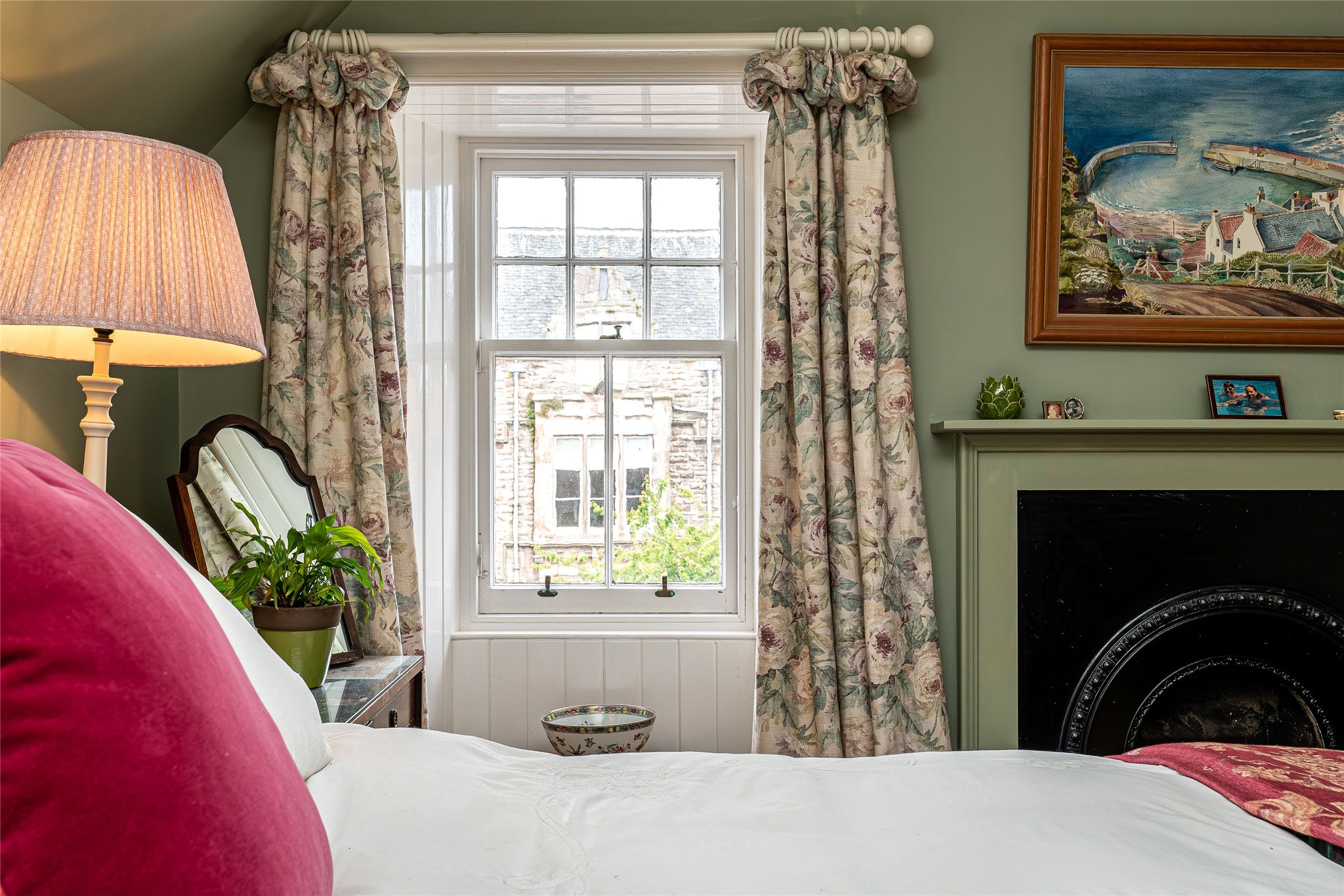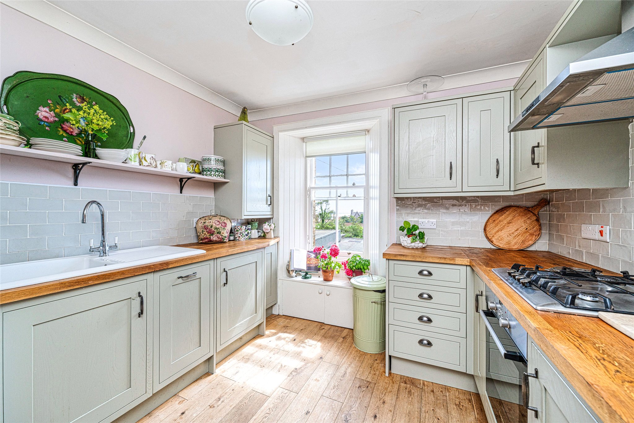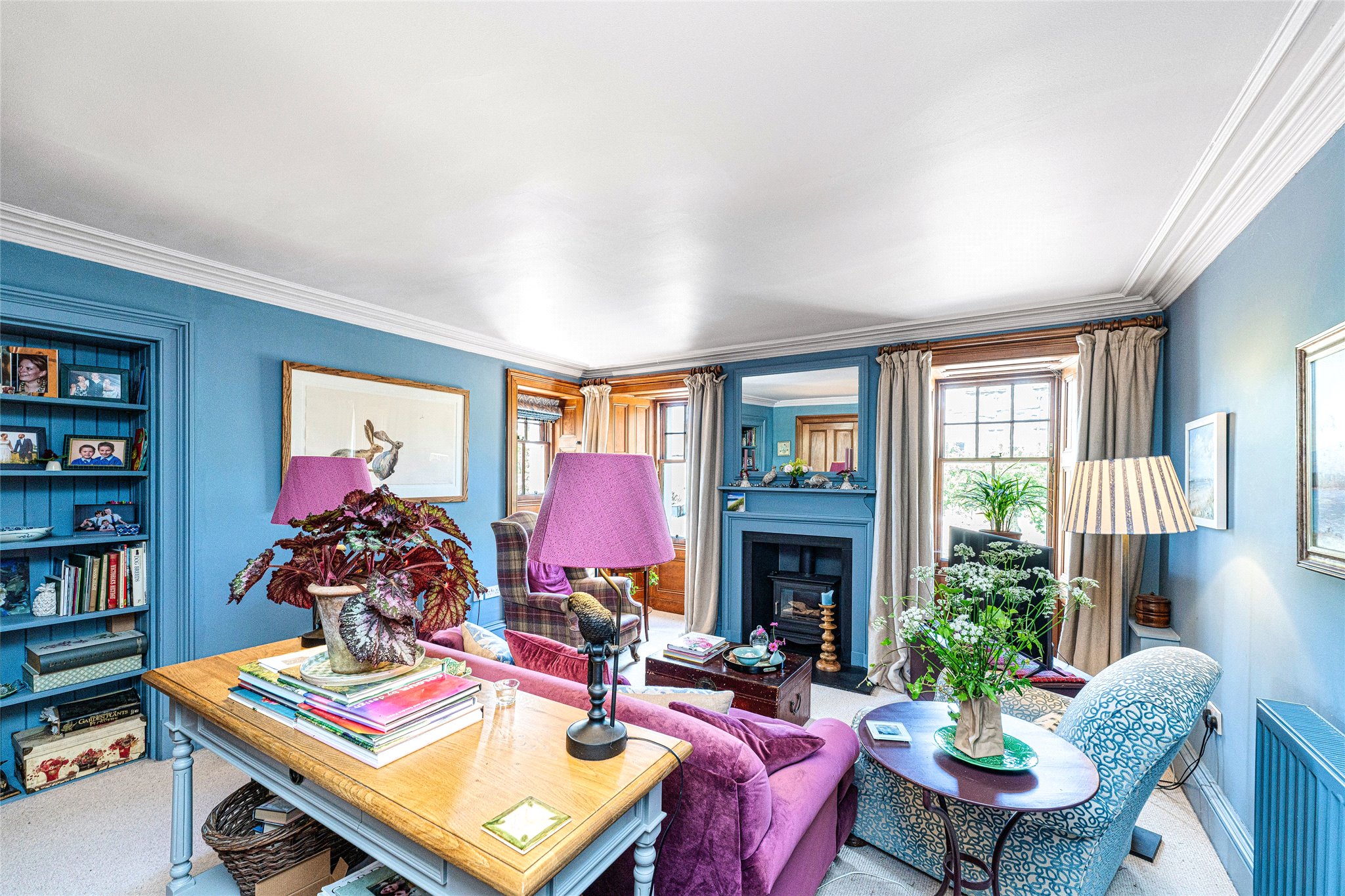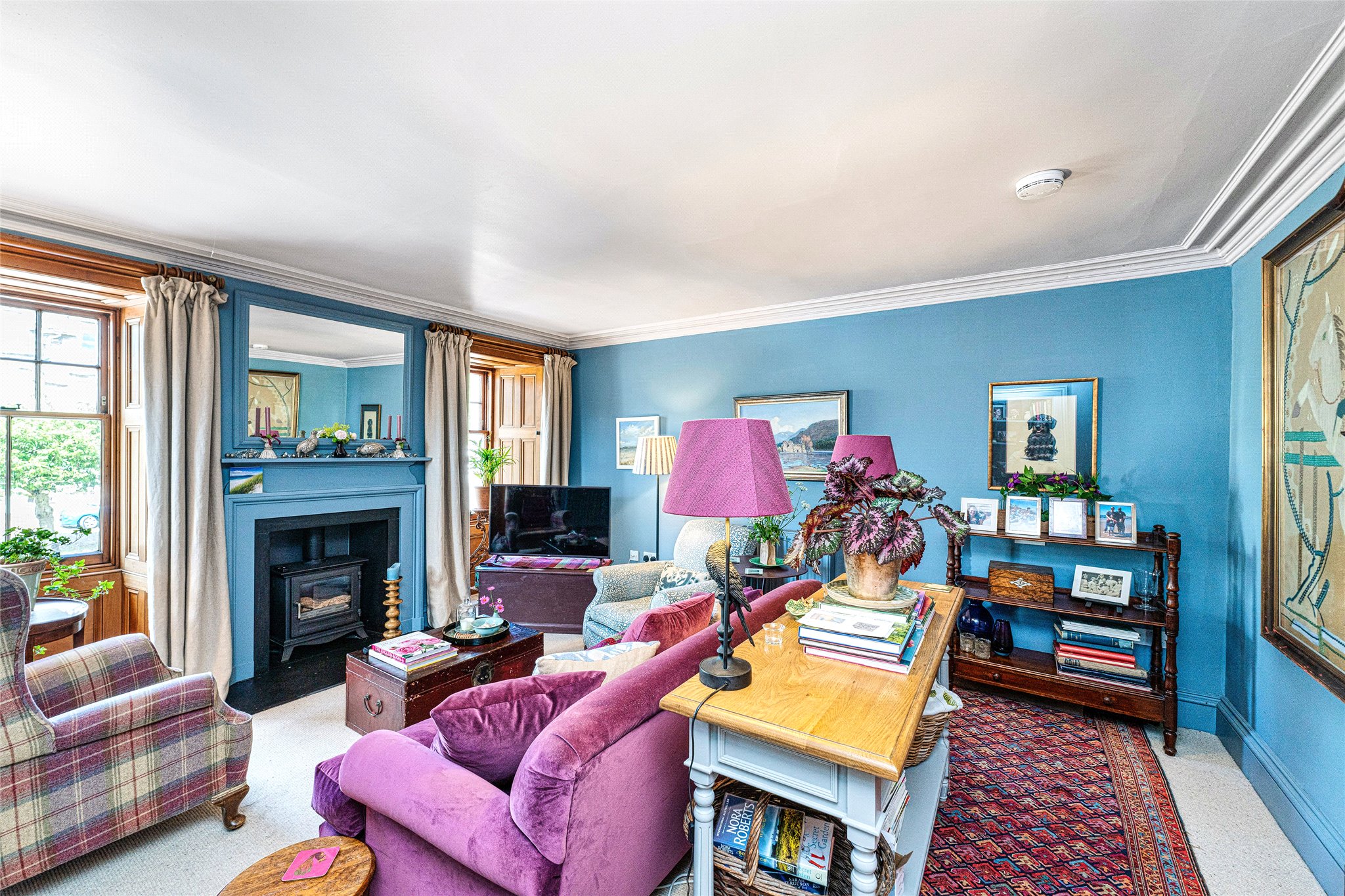 Combining classic elegance with modern comfort this rarely available traditional three-bedroom B-listed residence in the heart of desirable Crail is a must-see for discerning buyers. From the moment you approach its handsome stone-built exterior it is evident that something unique and special awaits, a feeling cemented as you move from the ground-floor entrance foyer to the first-floor accommodation. Straight across the carpeted hallway adorned with a calm colour palette, you arrive at the stunning living room overlooking Marketgate. Flooded with light from twin windows it showcases an elegant interior design that includes oak window frames, working shutters, built-in shelving and a focal log-burning stove. Cosy and inviting it is perfect for peaceful nights in or entertaining friends. Returning to the hallway, the classically styled south-east-facing kitchen exudes warmth and an understated style. Butcher block worktops complement shaker-style cabinetry in a soft sage, a metro-tiled splashback and high-spec integrated appliances including a BOSCH gas hob, oven, and extractor hood. Opposite, an elegant dining room offers versatility as a potential fourth bedroom whilst a contemporary shower room with WC, chrome towel radiator, and washbasin completes the appealing first-floor layout. Ascending the staircase resplendent with a carved oak banister the light and airy landing of the second floor leads to three beautifully presented double bedrooms. The principal looking across Marketgate is a magnificent retreat with handsome wooden flooring, twin sash and case windows, bespoke built-in cabinetry, and an open cast iron fireplace. Two additional, bright south-facing double bedrooms with captivating skyline and Firth of Forth views, provide a serene place to relax and boast original fireplaces along with a tasteful décor.