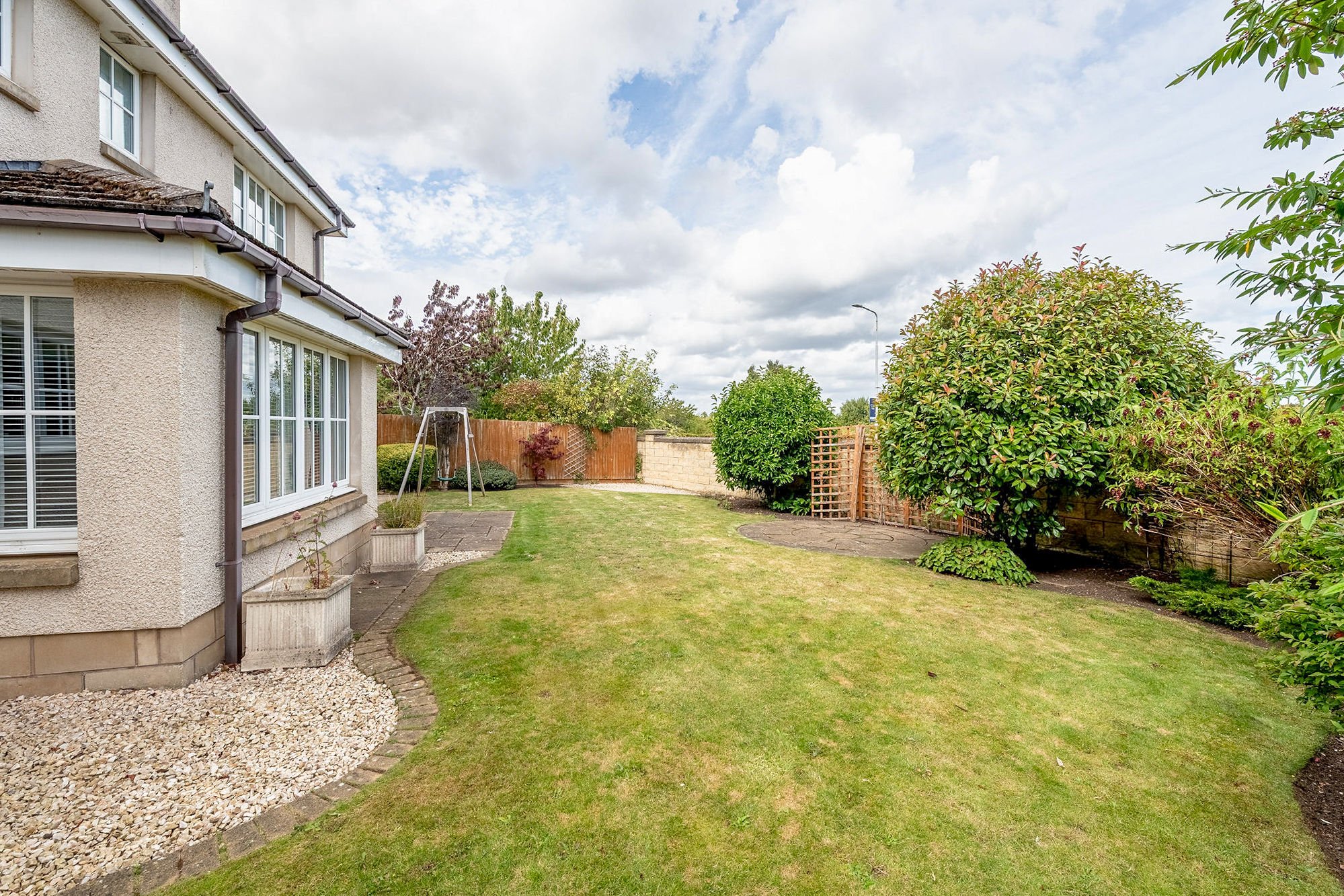 The enclosed garden with its manicured lawn and established borders is the perfect outdoor retreat for friends and family.