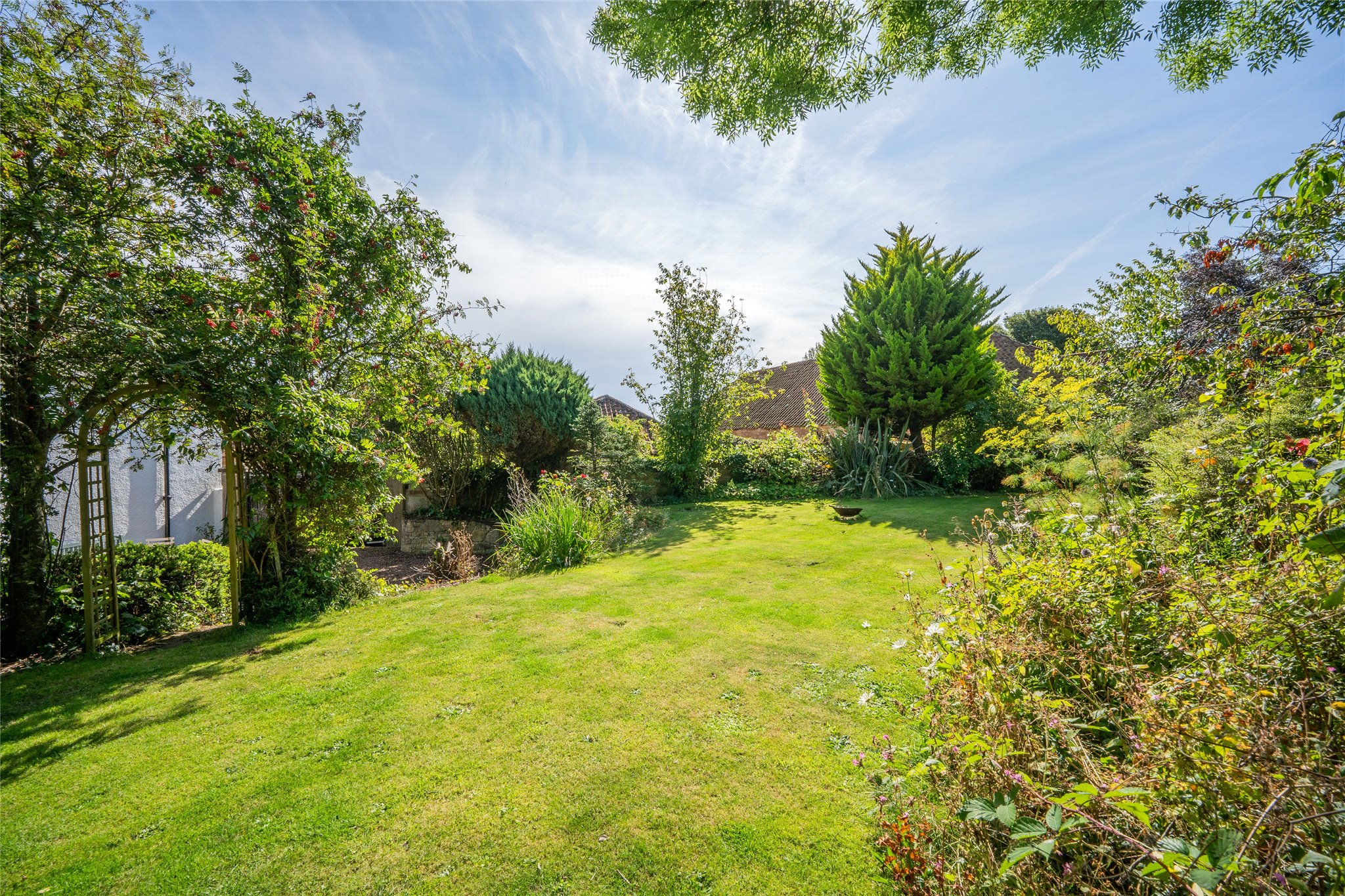 Backing onto rolling fields, the expansive rear garden showcases a lush lawn with established trees and borders, the perfect place to relax and entertain.