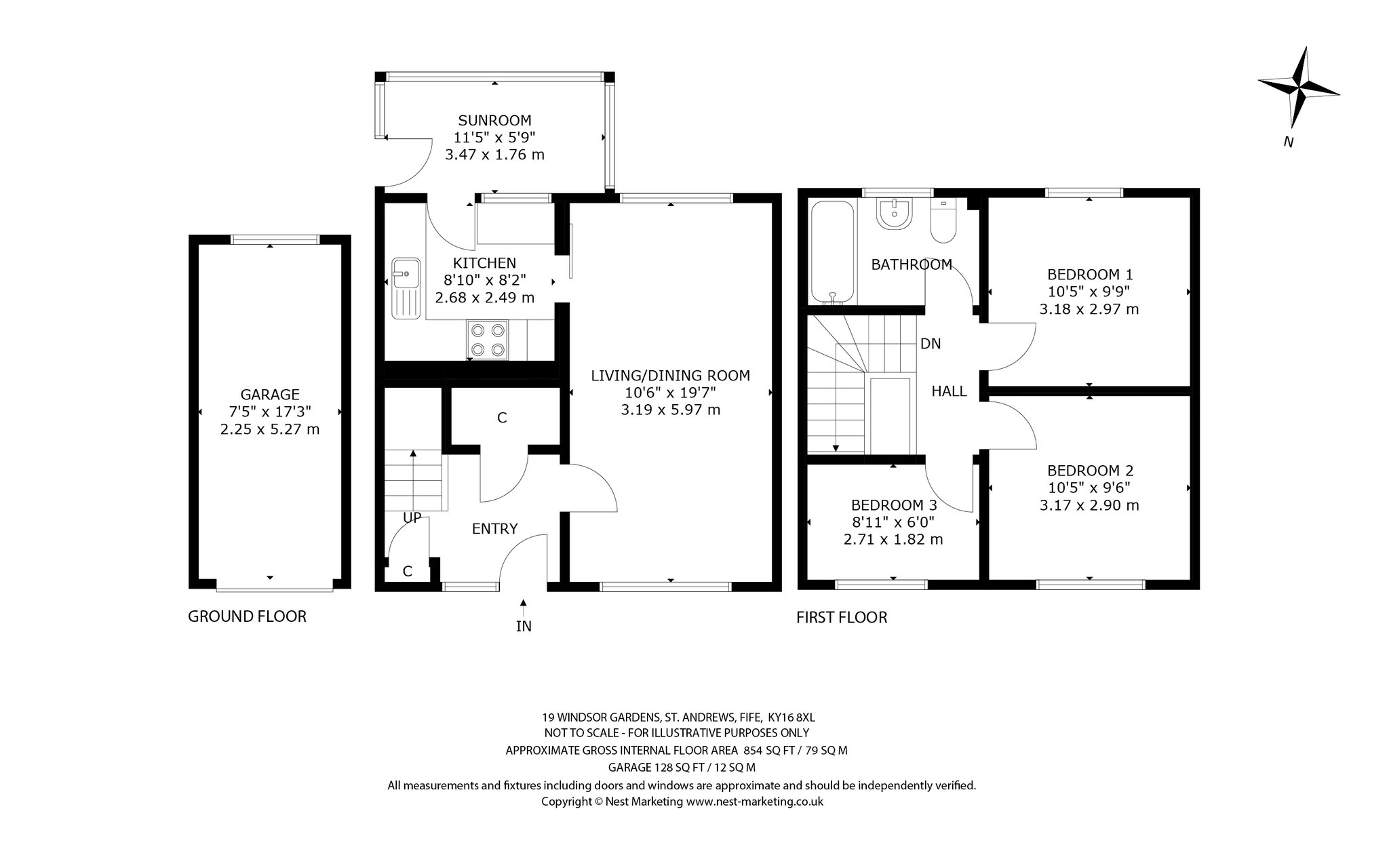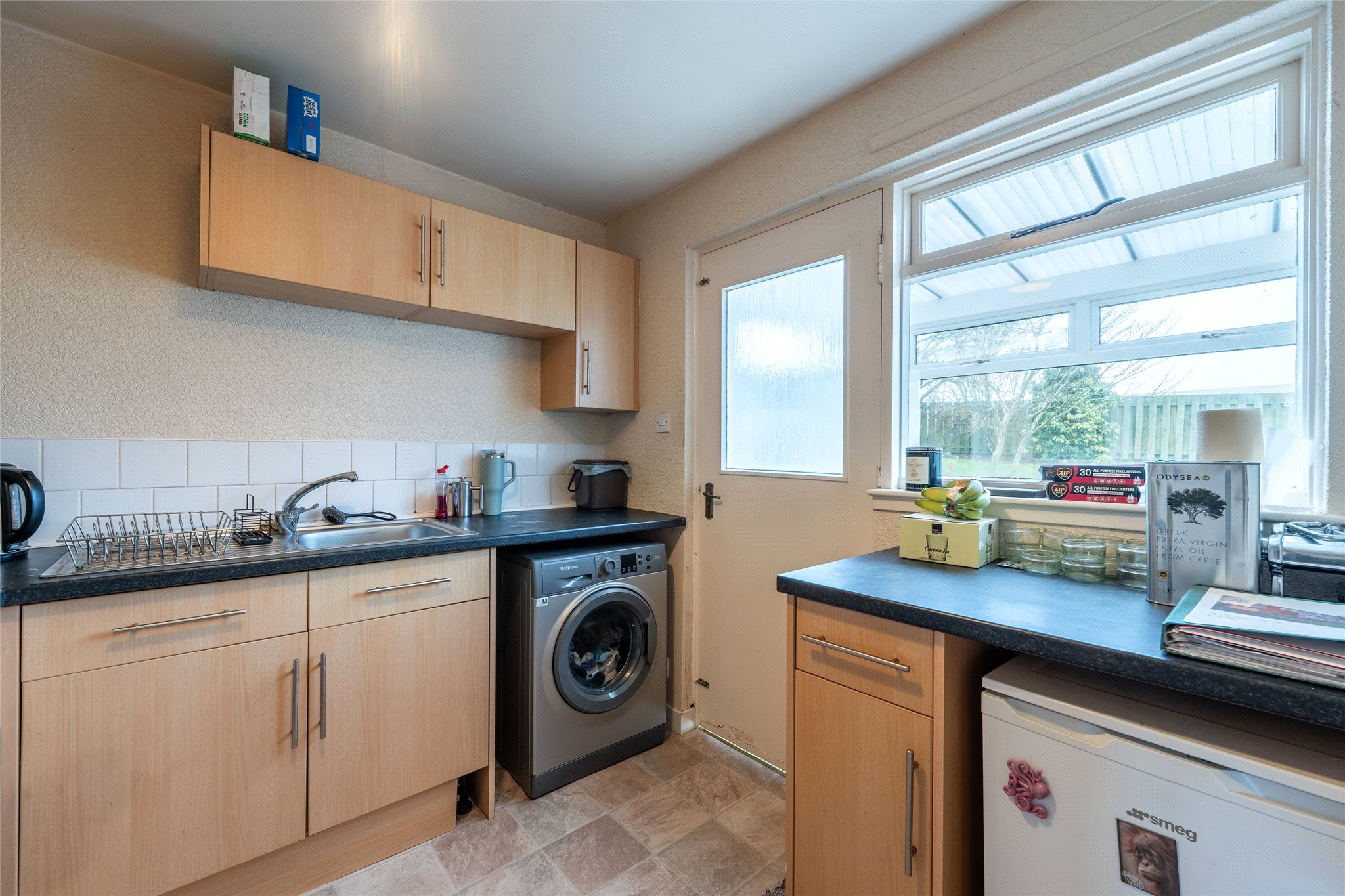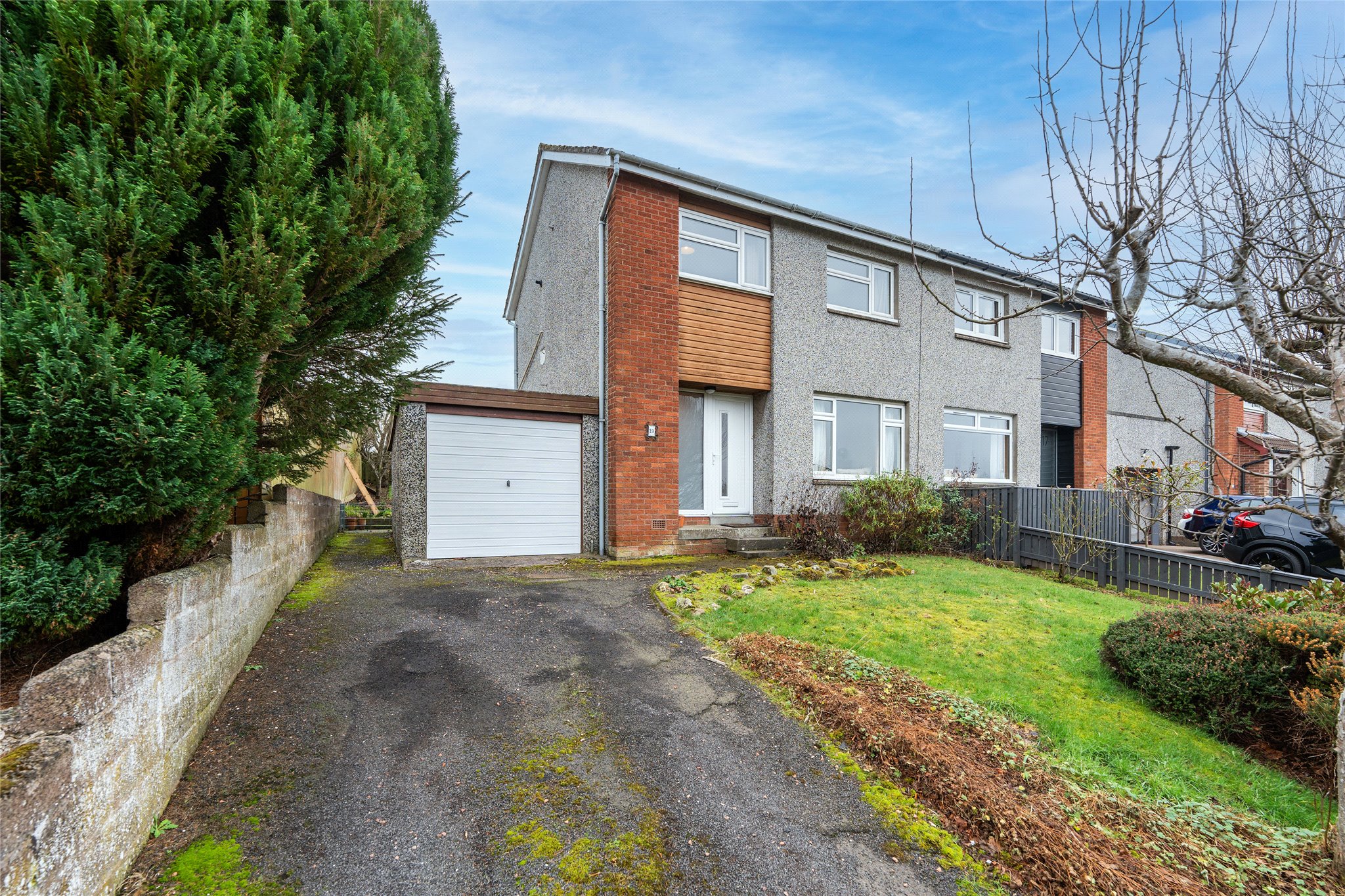 Less than a ten-minute drive from the heart of St Andrews, this three-bedroom semi-detached home in a popular and peaceful residential setting close to amenities and schooling is perfectly suited to comfortable modern living. Flanked by a driveway, the front garden ushers you into the home where a light-filled carpeted hallway equipped with convenient built-in storage awaits. On your right is a generously proportioned dining living room, flooded with natural light thanks to its dual aspect. Decorated in neutral tones and with carpeting, this versatile room is perfect for day-to-day life. Adjoining lies a modern kitchen showcasing wall and floor cabinets in a natural hue and quartz-effect worktops alongside ample space for freestanding appliances. Offering rear garden access and additional storage space is the adjacent sunroom. With a south, east, and west-facing orientation, it is also a delightful retreat for peaceful relaxation. Ascending the stairs, the first floor houses three light and airy double bedrooms. Positioned to the rear, the principal enjoys a southerly aspect and picturesque views of the surrounding fields. Completing the internal layout is a well-appointed bathroom featuring a chrome towel radiator, a bath with a wall-mounted shower, WC, and washbasin.