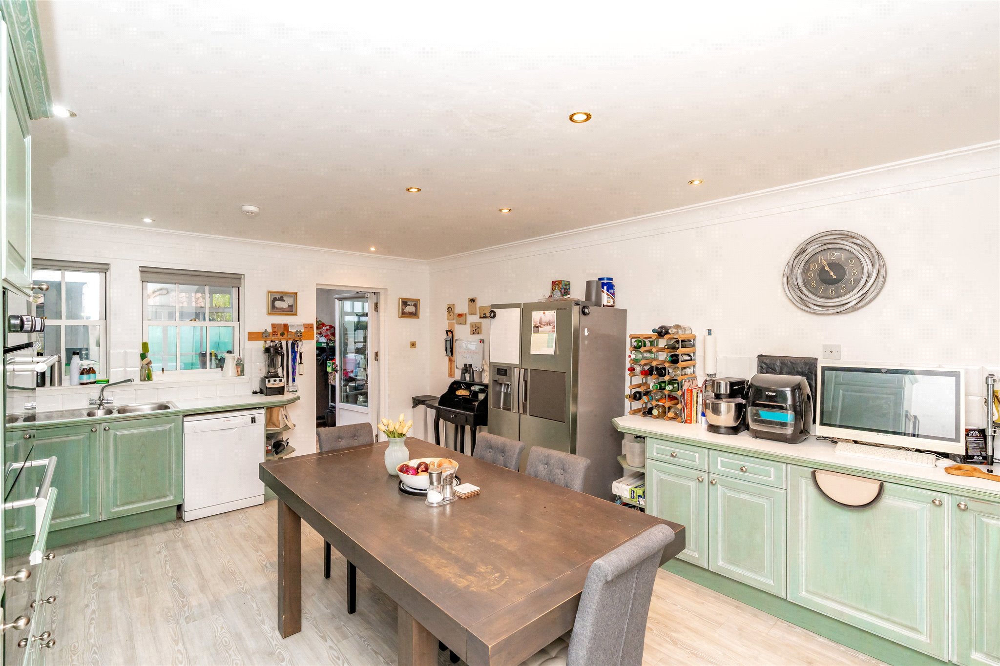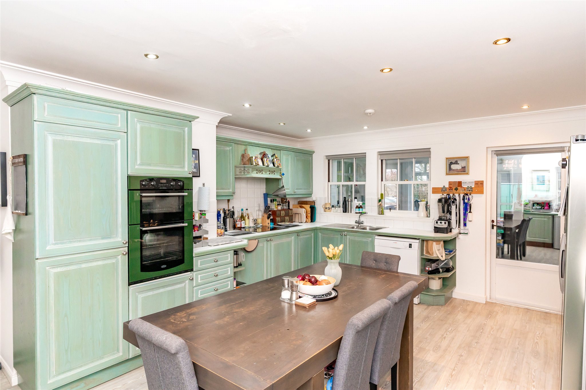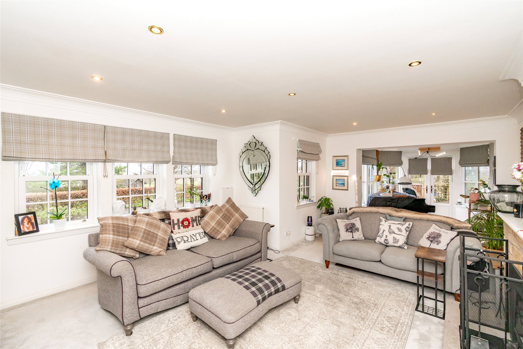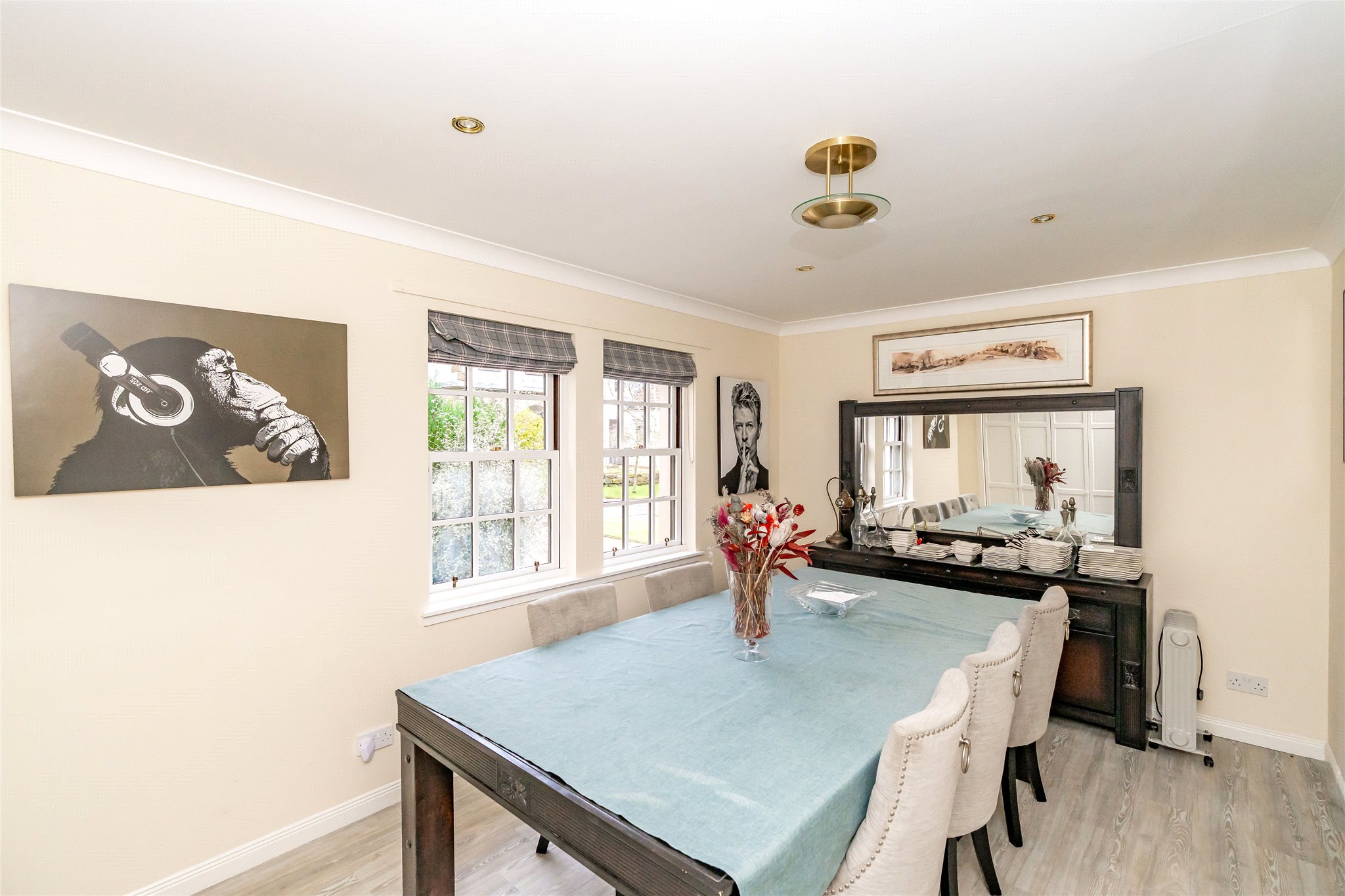 Set within an exclusive courtyard development on the site of a former mansion house in the hills above St Andrews, 5 The Doocot is an impressive, detached family home enjoying a peaceful and scenic countryside setting. Upon entering, a welcoming hallway leads to a bright and elegantly decorated living room, which seamlessly extends into a sunroom. Bathed in natural light, this south-east-facing space opens to the garden through French doors, creating a perfect indoor-outdoor flow. A log-burning stove and a calming palette of greys and whites enhance its warm and inviting ambiance, while the generous layout allows for versatile furniture arrangements. Adjacent to the living room, the bright dining kitchen also provides external access and showcases a charming farmhouse-style design. Rustic green wall and floor units are paired with smooth worktops to create a stylish yet functional space. Integrated appliances include an extractor hood, eye-level oven, grill, and hob, with ample room for freestanding appliances. A separate utility room offers additional storage. Completing the ground floor is a versatile dining room/bedroom and office, along with a convenient shower room. Upstairs, four bright and spacious double bedrooms all benefit from built-in wardrobes with the principal enhanced by an en-suite shower room. The additional bedrooms share a stylish family bathroom, which features a bath, a separate shower enclosure, a WC, and a washbasin built into vanity.