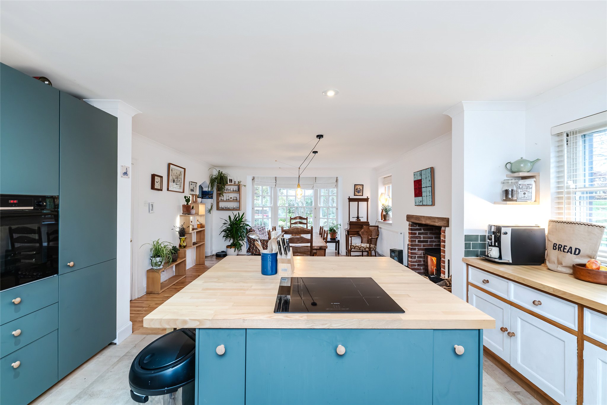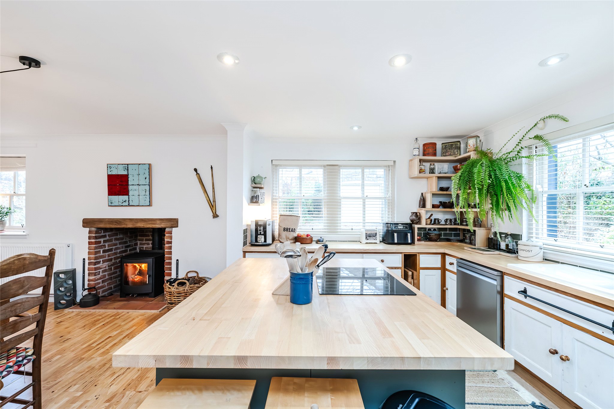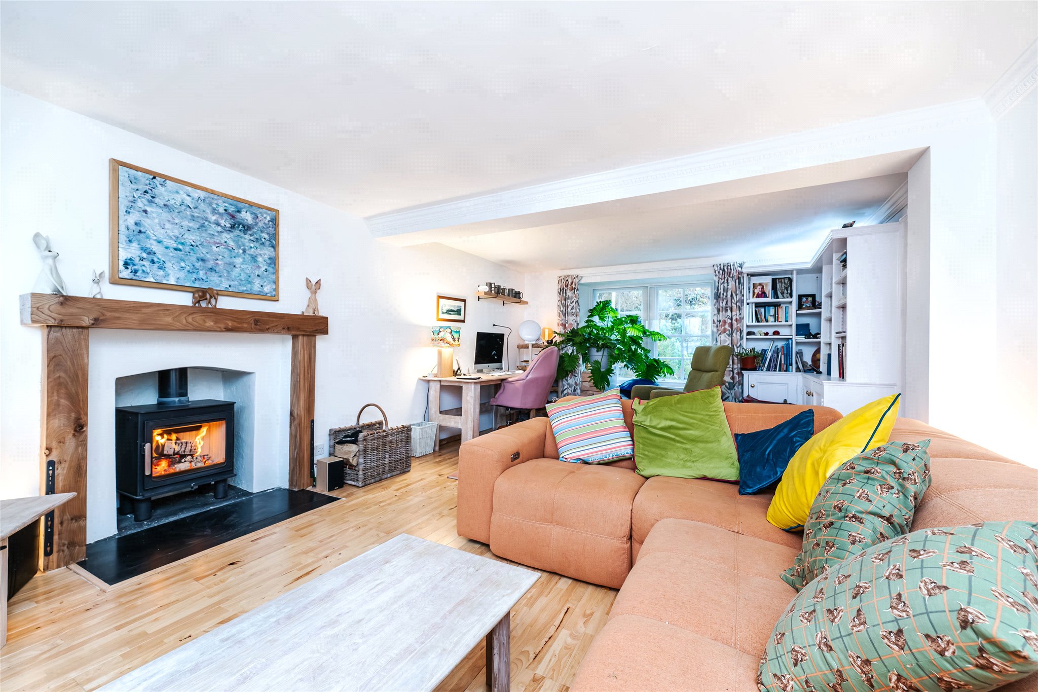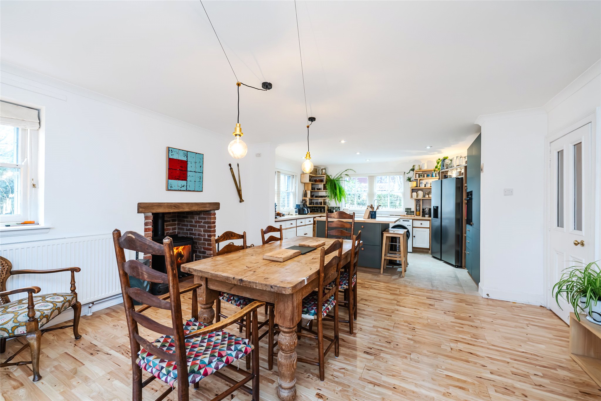 This immaculately presented four-bedroom stone-built cottage in a peaceful and captivating village setting offers buyers a desirable and charming lifestyle. Welcomed into a bright and versatile dining room that is perfect for family gatherings and entertaining you move through to a charming dual-aspect living room. Bathed in natural light this cosy and inviting space features rich wooden flooring, a crisp décor and a log-burning stove nestled beneath an oak mantle. The generous layout allows for a variety of furniture configurations dependent on individual needs. Returning to the dining room past a guest WC you are guided into an inner entrance hallway where French doors open into a spectacular south, east, and west-facing garden room. Contemporary in design and with a panoramic garden aspect this is an exceptional retreat that offers a seamless flow between the property and its idyllic surroundings. From here you descend a set of terracotta tiled stairs and enter a most impressive open-plan dining kitchen that spans the length of the residence and offers an enchanting triple aspect. A thoughtful difference in flooring and the presence of a log-burning stove creates a natural divide between the stylish kitchen and the dining area, the result is a space very much at the heart of the home. Light-filled the well-appointed kitchen boasts wall and floor units in soft white and sage complemented by butcher block worktops. A full suite of high-spec integrated appliances include an eye-level oven, American-style fridge/freezer, and an induction hob built into a desirable island. An adjacent pantry complete with shelving allows for additional storage. This wing of the home also leads out via an entrance hall and front door to the driveway. Ascending to the first floor, you arrive at the south-facing principal double bedroom. Boasting a serene décor and wooden flooring this exudes a tranquil ambience enhanced by a classically styled en-suite featuring a bath with a wall-mounted shower, WC, washbasin, and chrome towel radiator. From here you pass a second double bedroom/study before a third generously proportioned double bedroom connects you with the west landing and staircase, and a further south-facing double bedroom adorned with built-in cabinetry. Rounding off the layout on this floor is a generous bathroom complete with a shower enclosure, bath, WC, and washbasin.