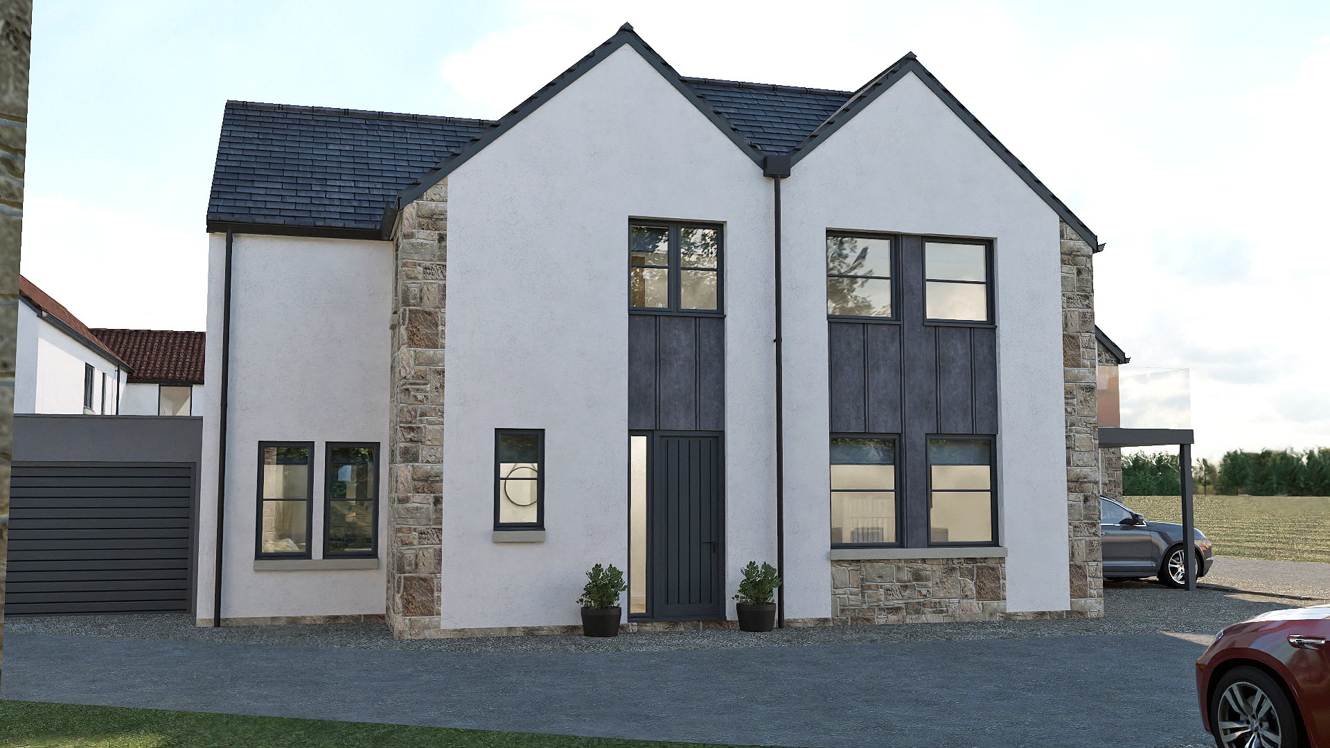 Nestled in the beautiful, highly-sought after East Neuk of Fife, between the picturesque fishing villages of Anstruther and Pittenweem, Milton Muir is an exclusive development offering spectacular countryside views. On entering through the front entrance, set within a stone wall built from the original steading of Milton Muir, Phase Three presents a desirable opportunity to secure a thoughtfully crafted property by the renowned Manse Homes. As is expected from Manse Homes, they have tastefully replicated those original Scottish details of narrow windows, hayloft dormers, curved headed openings to the stables, natural stone facades with clay, coloured pantiles and natural slate covering roofs.
