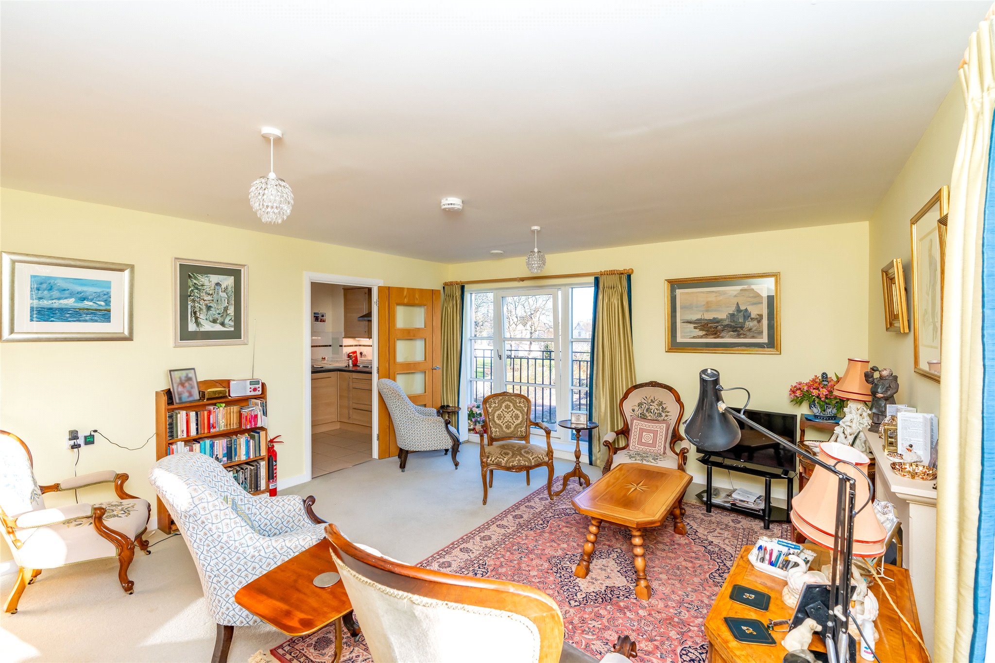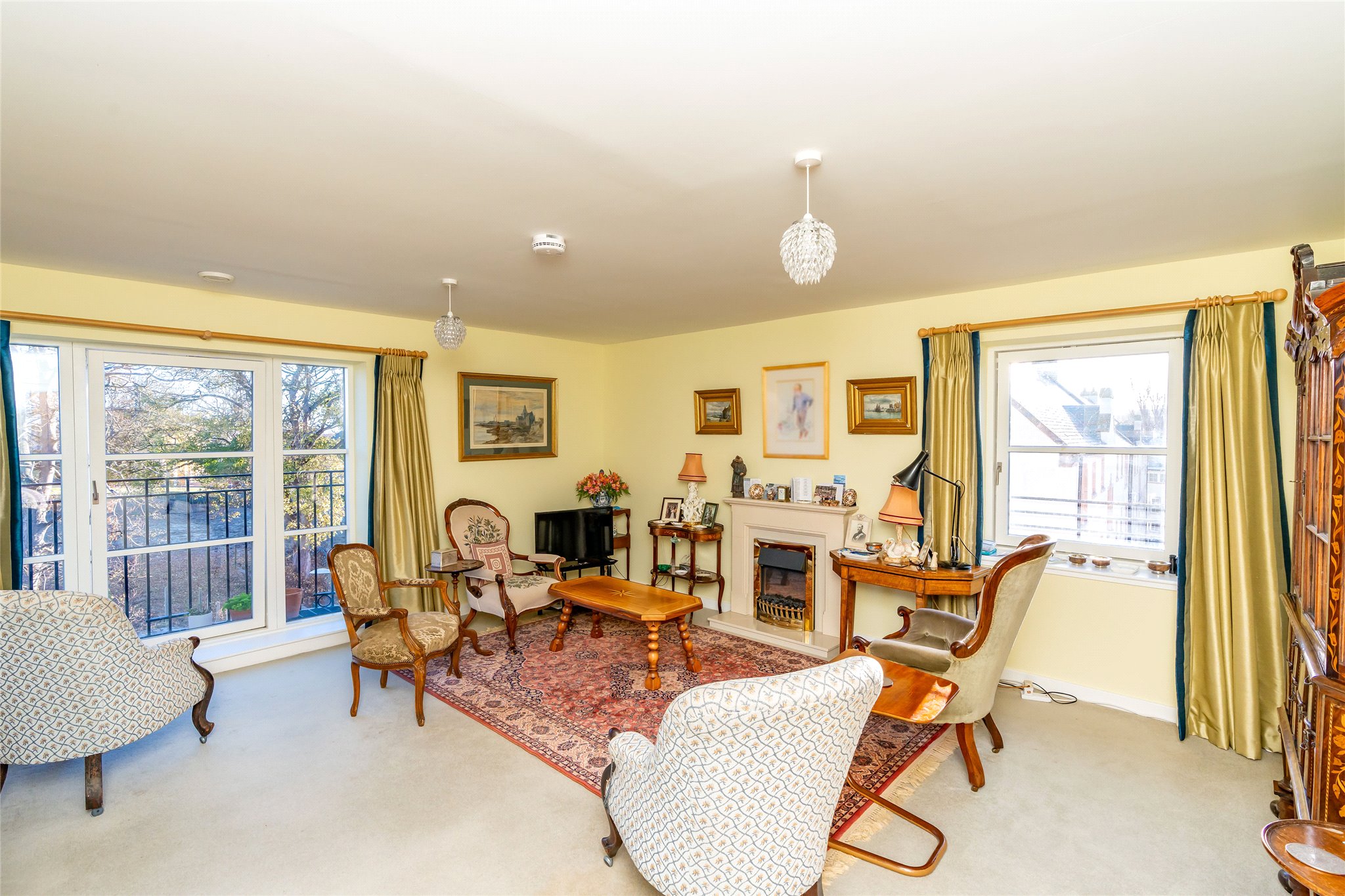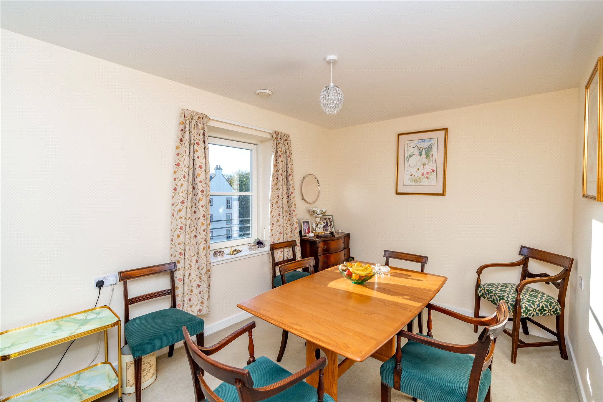 Forming part of a luxurious McCarthy and Stone development in the tranquil grounds of the former St Leonard’s School close to the centre of St Andrews, this well-presented two-bedroom apartment offers a secure and comfortable retirement. Accessed on the third floor via lift or stair, the front door opens into a carpeted hallway equipped with useful built-in storage and leading to a versatile box room. Straight ahead lies a generously proportioned living room. South-east-facing it is flooded with natural light and boasts full-height windows opening to a Juliet balcony. Exuding a warm ambience, and benefitting from underfloor heating, it showcases plush carpeting, a calm colour palette, and a living flame fireplace. Adjoining, the modern kitchen features under-base-lit oak-effect wall and floor units, quartz-effect worktops, and a tiled splashback. Integrated appliances include an extractor hood, induction hob, and eye-level oven. Returning to the hallway, the principal double bedroom is a peaceful and spacious retreat with a well-appointed en-suite bathroom, a walk-in wardrobe, and a versatile office. Completing the accommodation is a second light and airy south-east-facing double bedroom currently utilised as a dining room and a fully tiled shower room with handrails. There is a guest suite for visiting friends and family within the development and there are opportunities to socialise with other homeowners thanks to a communal lounge, laundry, kitchen, and reading room. The presence of a house manager offers additional peace of mind as does a CCTV door entry system and a 24-hour emergency call system.