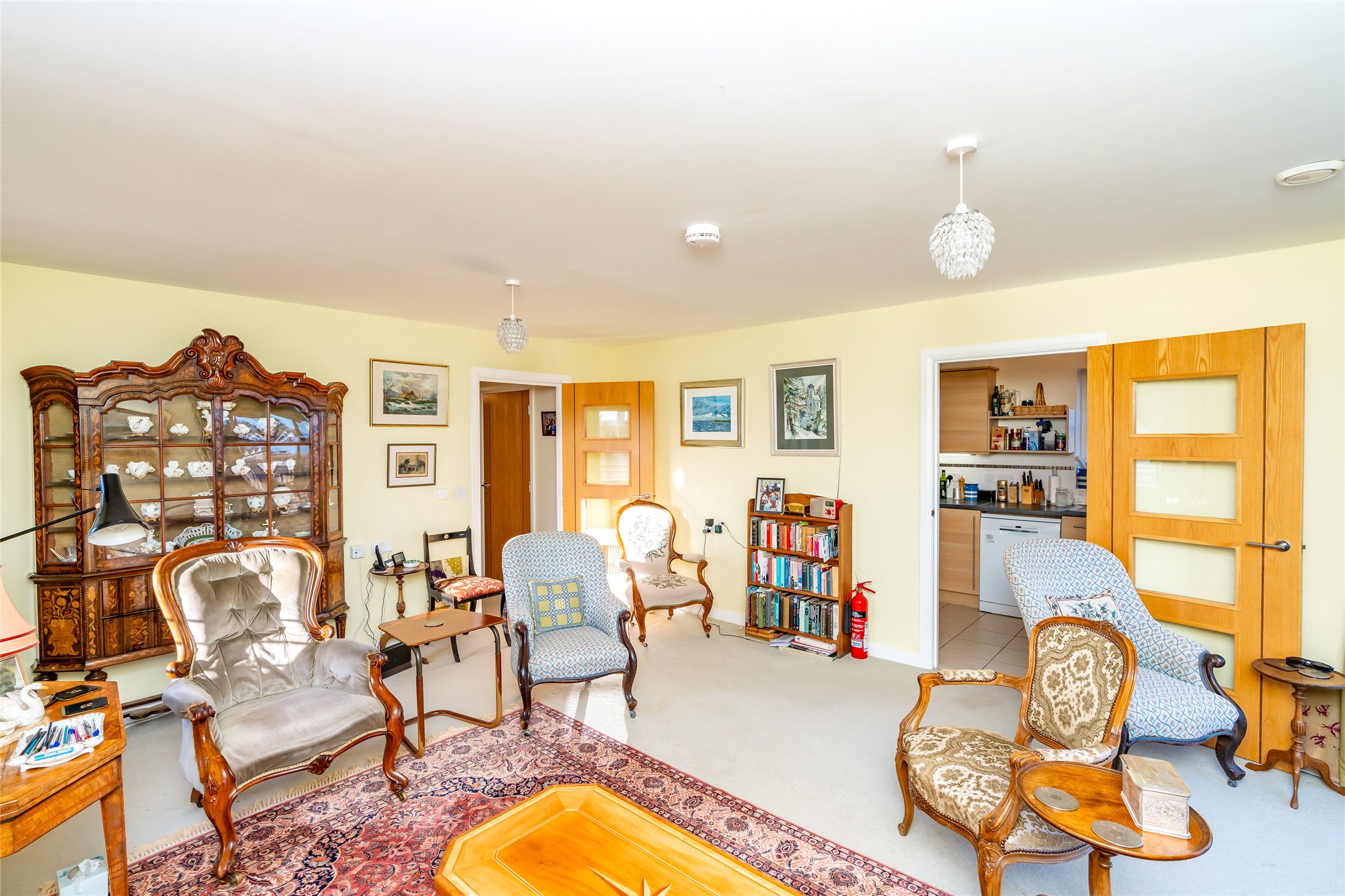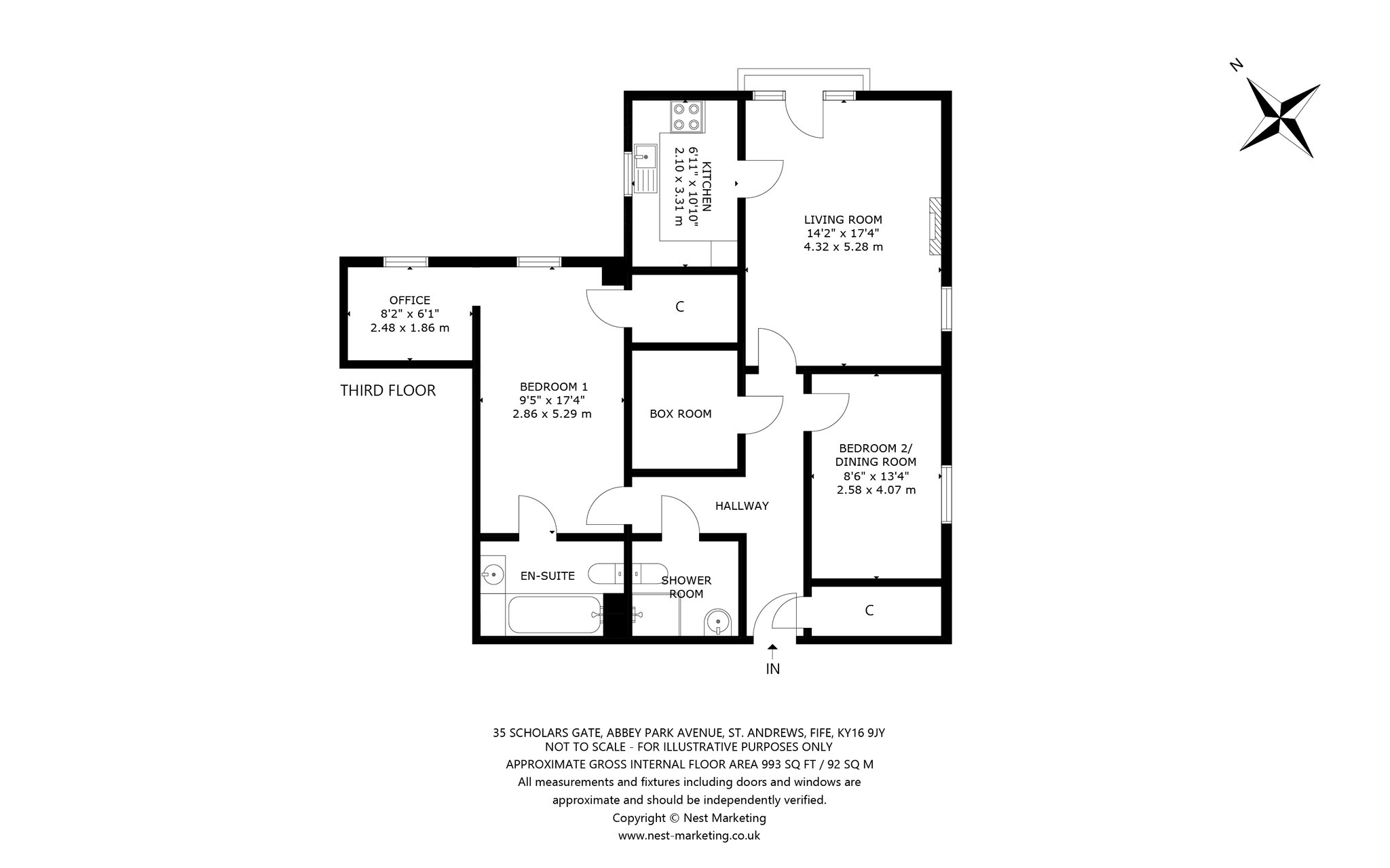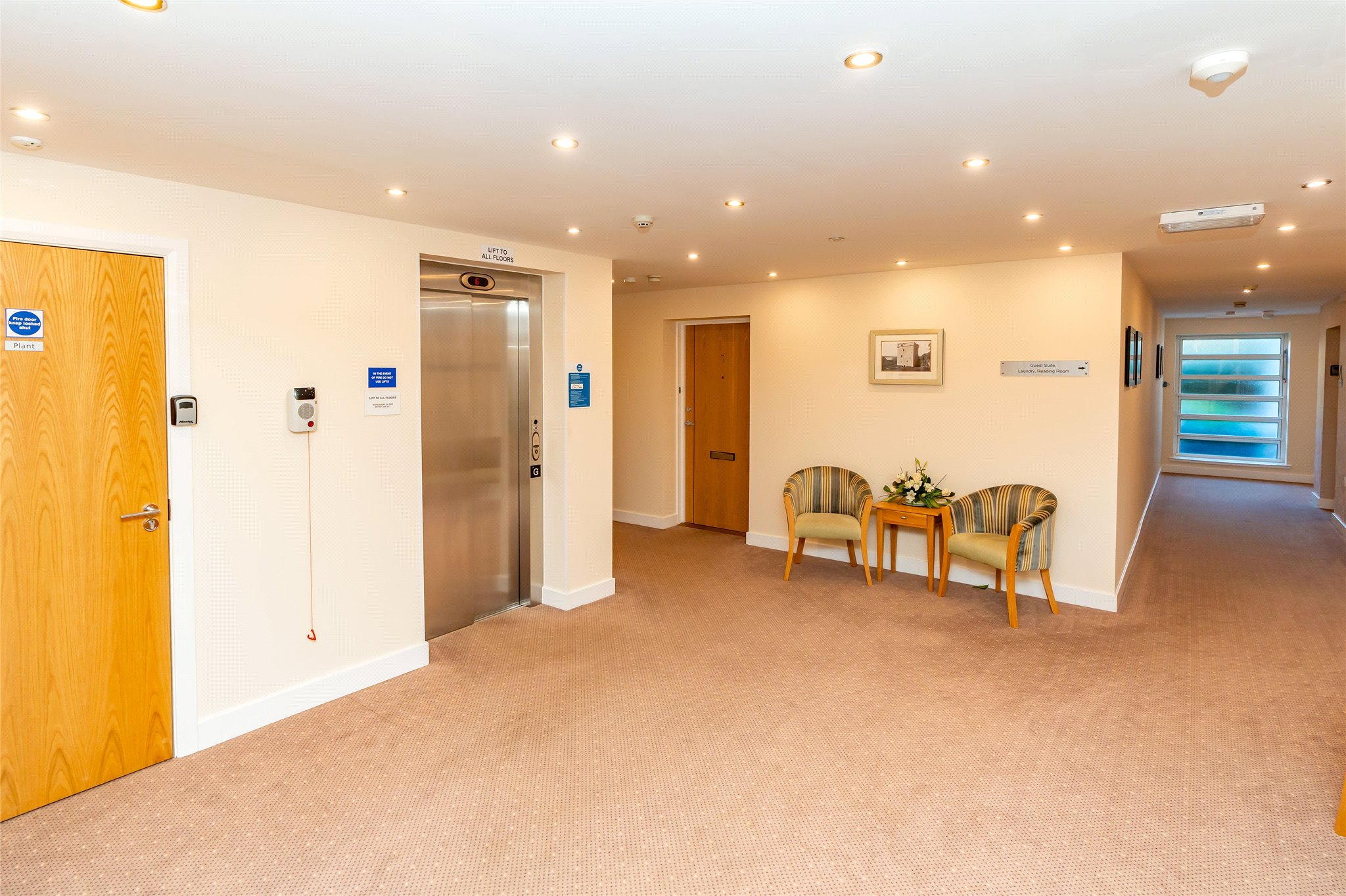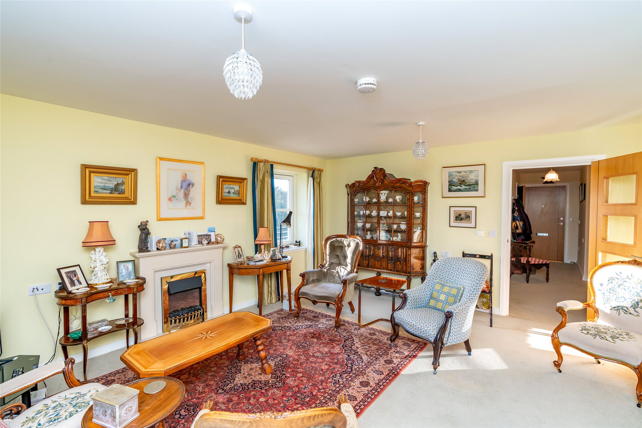Forming part of a luxurious McCarthy and Stone development in the tranquil grounds of the former St Leonard’s School close to the centre of St Andrews, this well-presented two-bedroom apartment offers a secure and comfortable retirement. Accessed on the third floor via lift or stair, the front door opens into a carpeted hallway equipped with useful built-in storage and leading to a versatile box room. Straight ahead lies a generously proportioned living room. South-east-facing it is flooded with natural light and boasts full-height windows opening to a Juliet balcony. Exuding a warm ambience, and benefitting from underfloor heating, it showcases plush carpeting, a calm colour palette, and a living flame fireplace. Adjoining, the modern kitchen features under-base-lit oak-effect wall and floor units, quartz-effect worktops, and a tiled splashback. Integrated appliances include an extractor hood, induction hob, and eye-level oven. Returning to the hallway, the principal double bedroom is a peaceful and spacious retreat with a well-appointed en-suite bathroom, a walk-in wardrobe, and a versatile office. Completing the accommodation is a second light and airy south-east-facing double bedroom currently utilised as a dining room and a fully tiled shower room with handrails. There is a guest suite for visiting friends and family within the development and there are opportunities to socialise with other homeowners thanks to a communal lounge, laundry, kitchen, and reading room. The presence of a house manager offers additional peace of mind as does a CCTV door entry system and a 24-hour emergency call system.