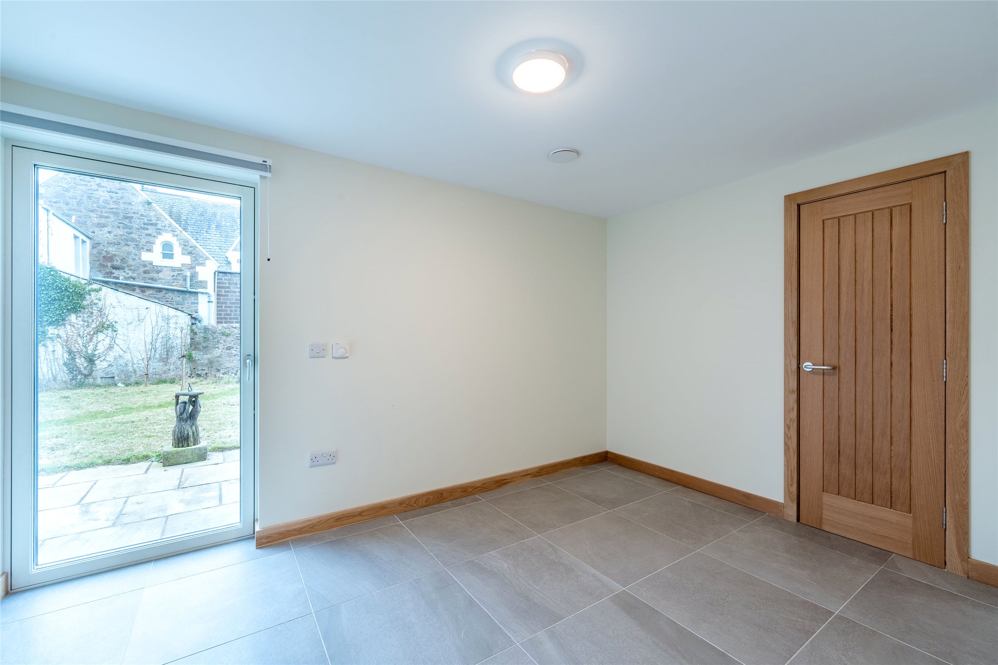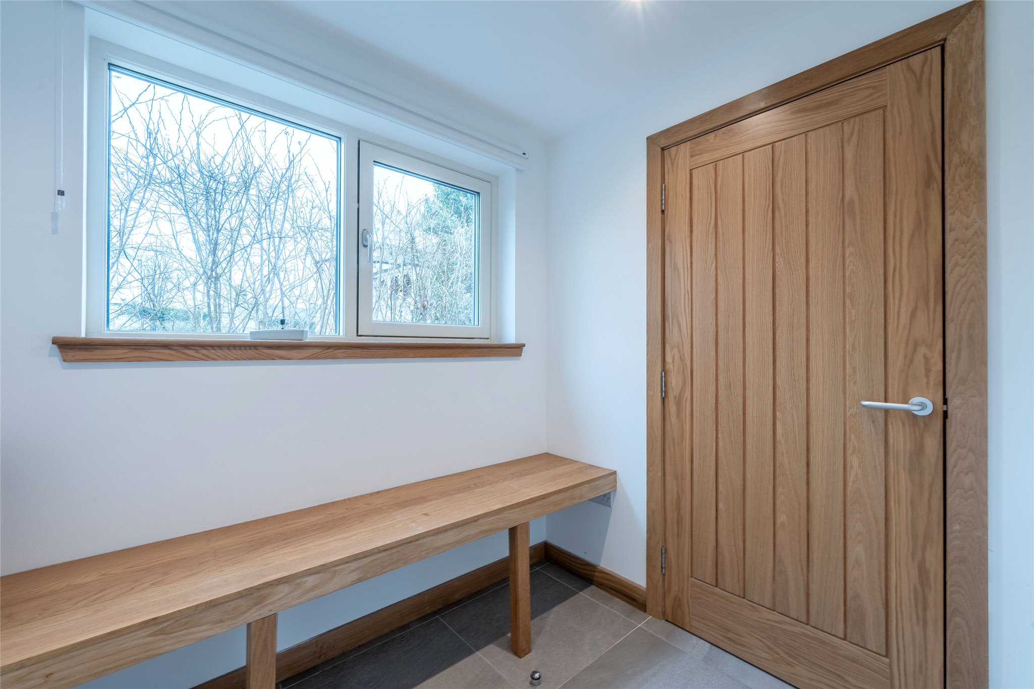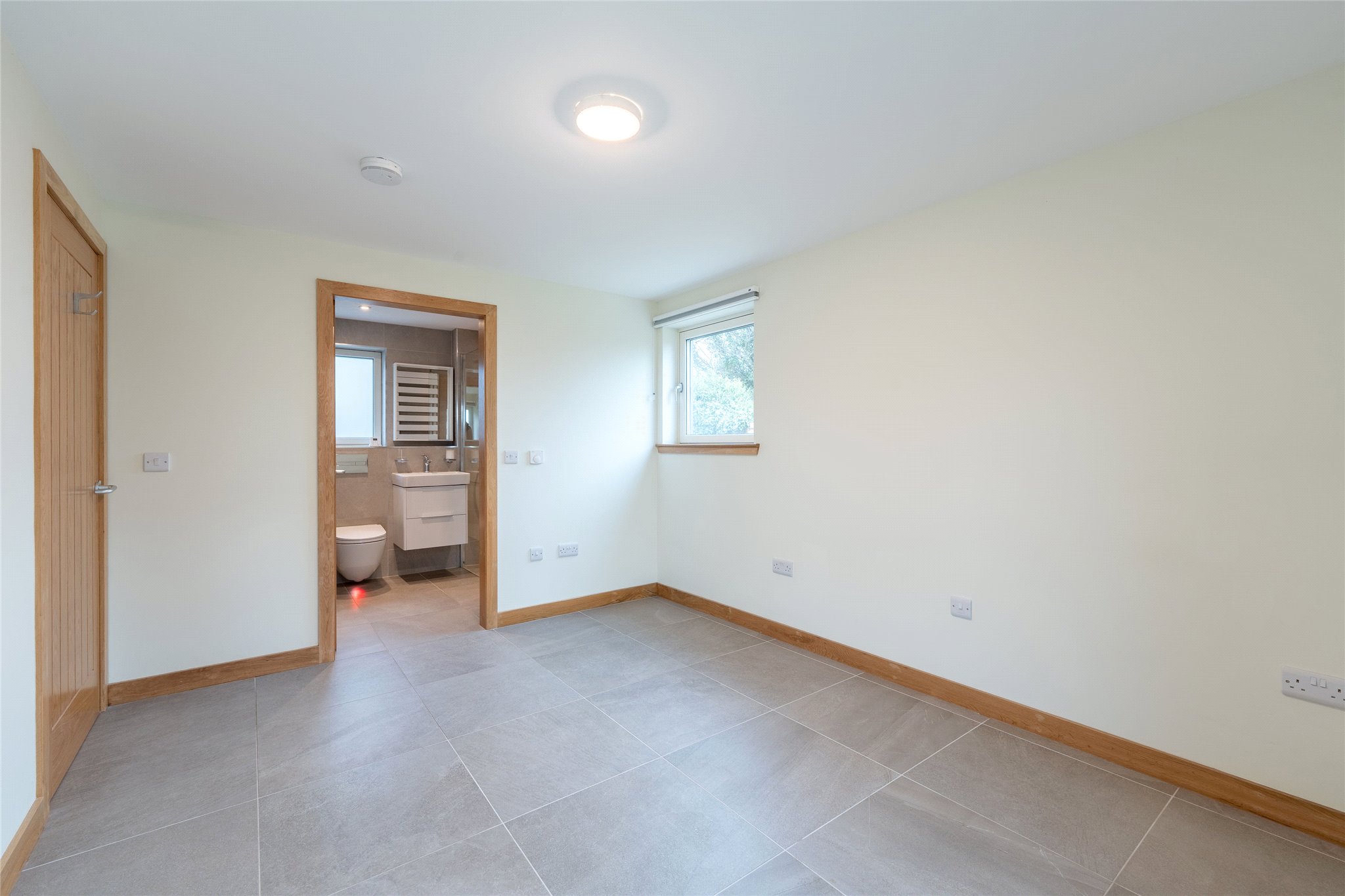 Entrance vestibule, hallway, living/dining room, kitchen, utility, office, two bedrooms (one with en-suite), shower room