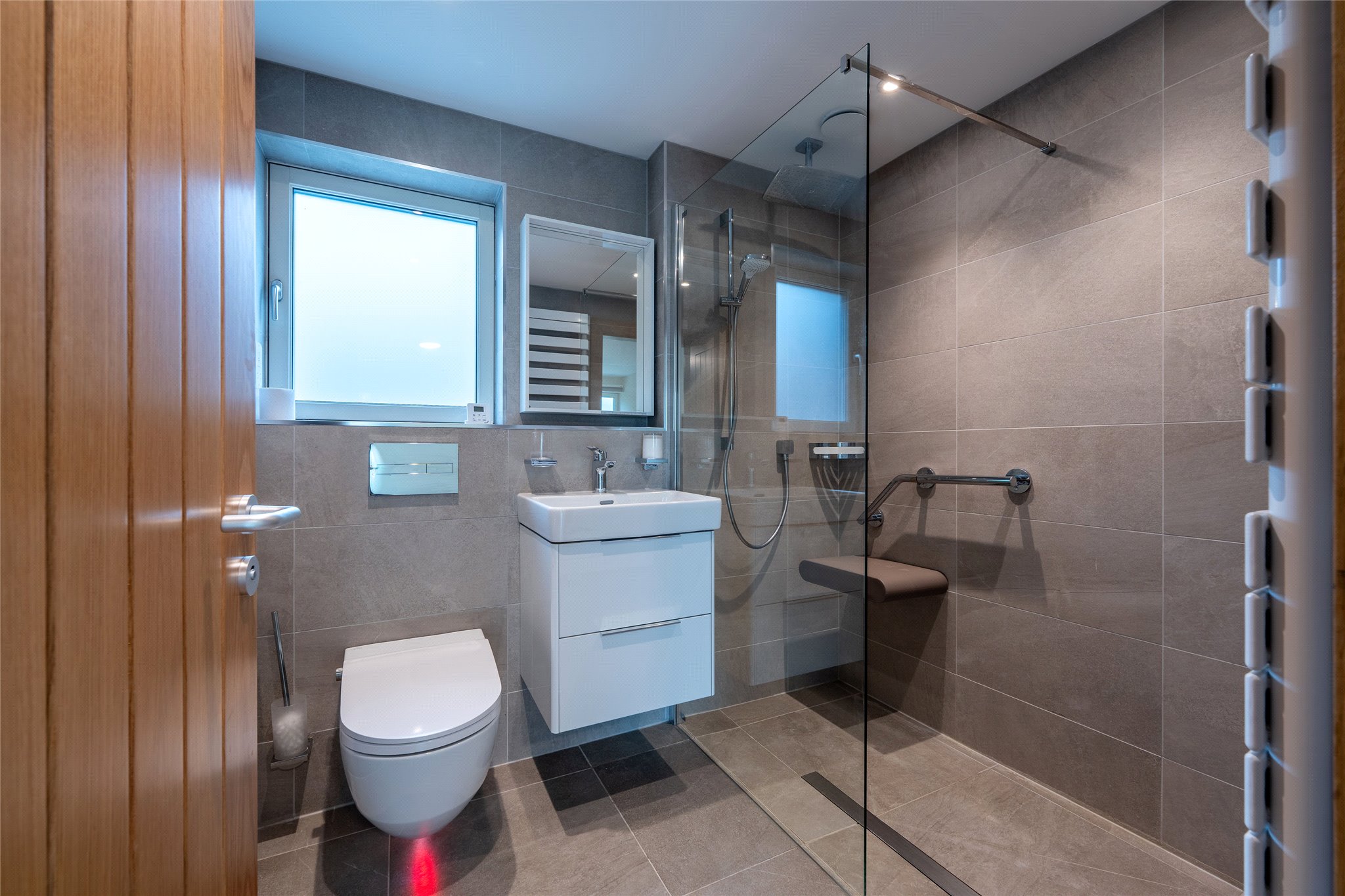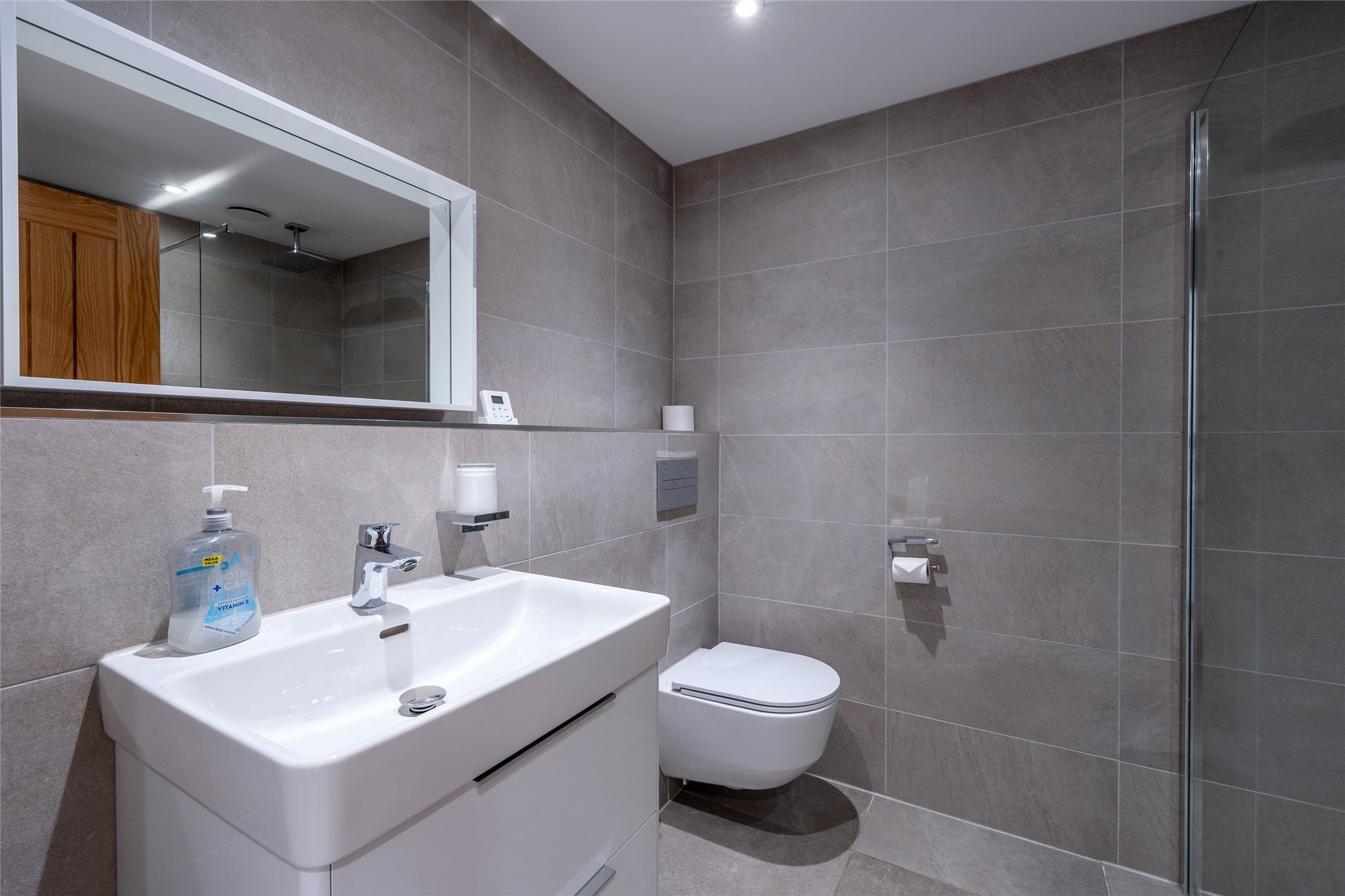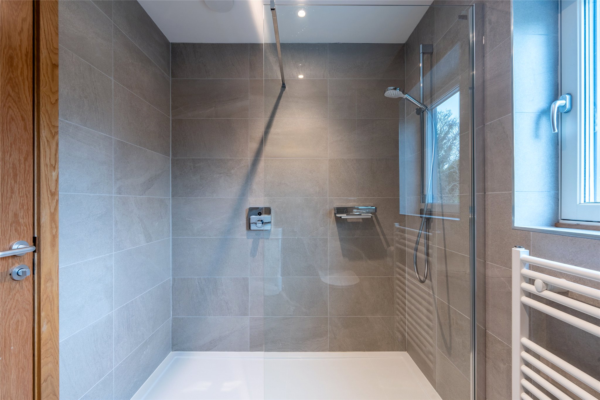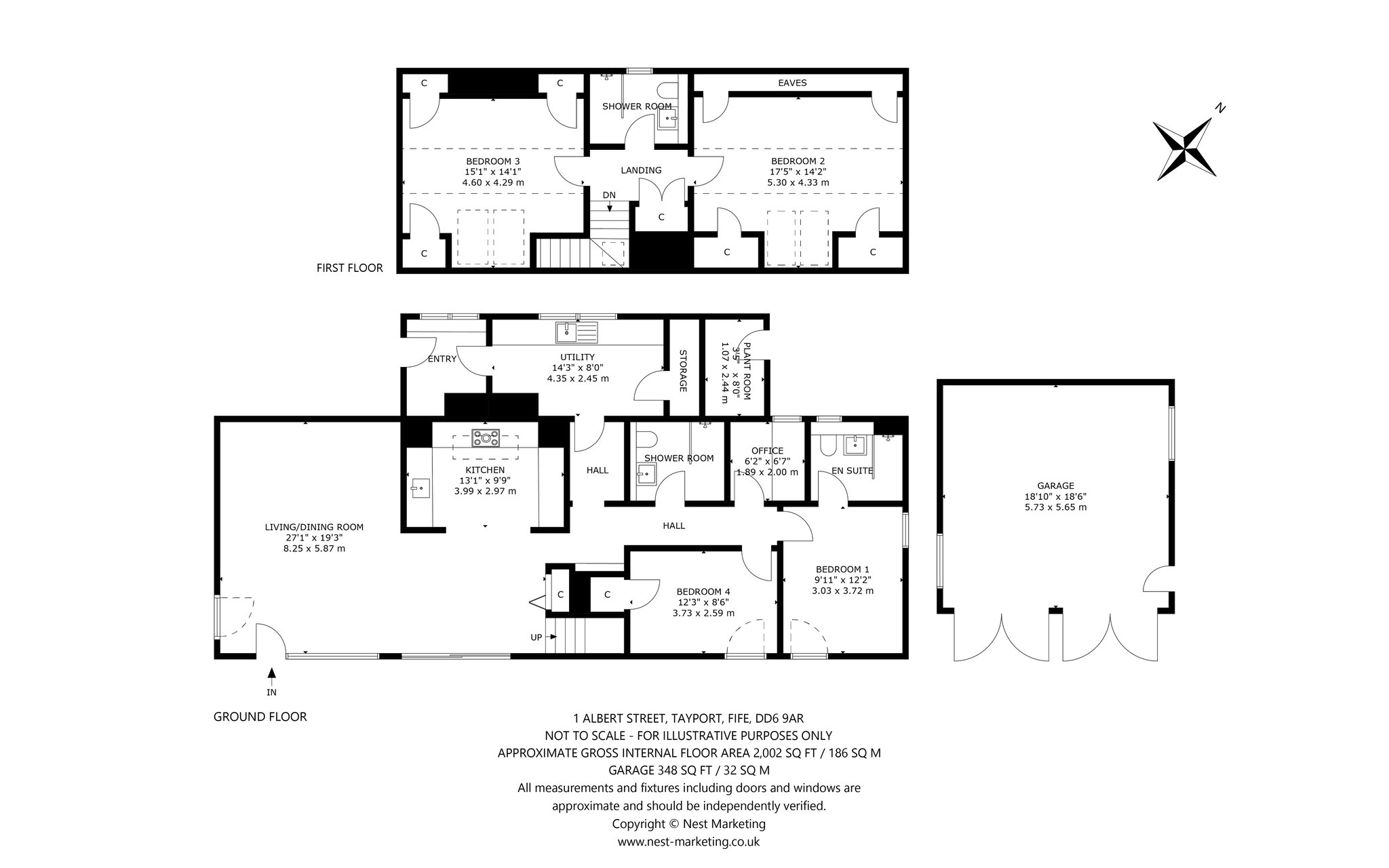 Entrance vestibule, hallway, living/dining room, kitchen, utility, office, two bedrooms (one with en-suite), shower room