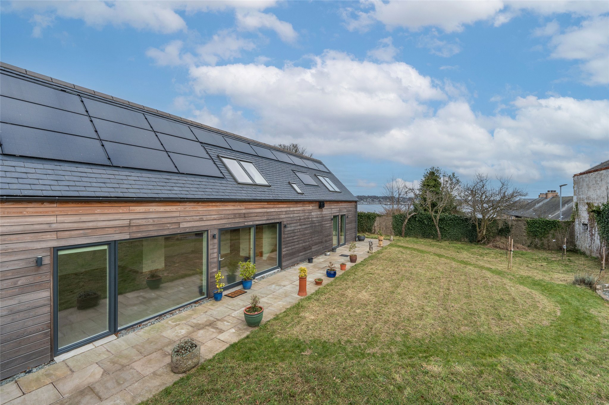 Designed and crafted with sustainability, energy, and environmental efficiency in mind, this exceptional four-bedroom Tayport property by Hebridean Homes harmoniously blends with its surroundings, drawing inspiration from traditional Hebridean longhouse architecture. Without compromising on style and comfort it is perfect for forward-thinking modern living. The timber-clad exterior and carefully considered glazing sets the tone, welcoming you into a bright entrance vestibule that leads through a spacious utility room and into a central hallway, providing access to a sleek, contemporary kitchen. Thoughtfully designed it combines practicality with modern aesthetics, featuring clean lines, white wall and floor units, and complementary worktops. An expansive skylight bathes the u-shaped layout in natural light, creating a sense of openness and space. High-spec integrated Siemens appliances, including an eye-level double oven and hob with extractor, enhance both function and style. The kitchen flows seamlessly into an impressive, light-filled open-plan living and dining area. South-east-facing, a large picture window overlooks the garden and offers direct access, achieving a wonderful balance between indoor and outdoor living for a truly inviting atmosphere. The neutral décor enhances the sense of calm, making this an ideal space for family life and entertaining, with close proximity to the kitchen adding to its convenience. Beyond the main living areas, two comfortable double bedrooms provide light and airy retreats. The principal bedroom boasts a design-led en-suite shower room finished in a soothing grey palette, featuring a wall-hung hidden cistern WC, an AXOR rainfall shower, and a wall-hung washbasin integrated into a sleek vanity unit. A versatile office space and a stylish shower room complete the ground floor layout. Ascending the handcrafted staircase, the first floor offers two expansive double bedrooms, each benefiting from built-in and eaves storage and a south-east aspect over the garden. These bedrooms share access to a luxurious shower room that mirrors the high-end finishes seen throughout the home. Designed to be warm and energy efficient all year round the property which has an EPC rating of A, benefits from PV panels, structurally insulated panels, NorDan timber framed triple glazed windows, timber framed double glazed roof windows and an air source heat pump system. There is mains water, drainage and electricity.