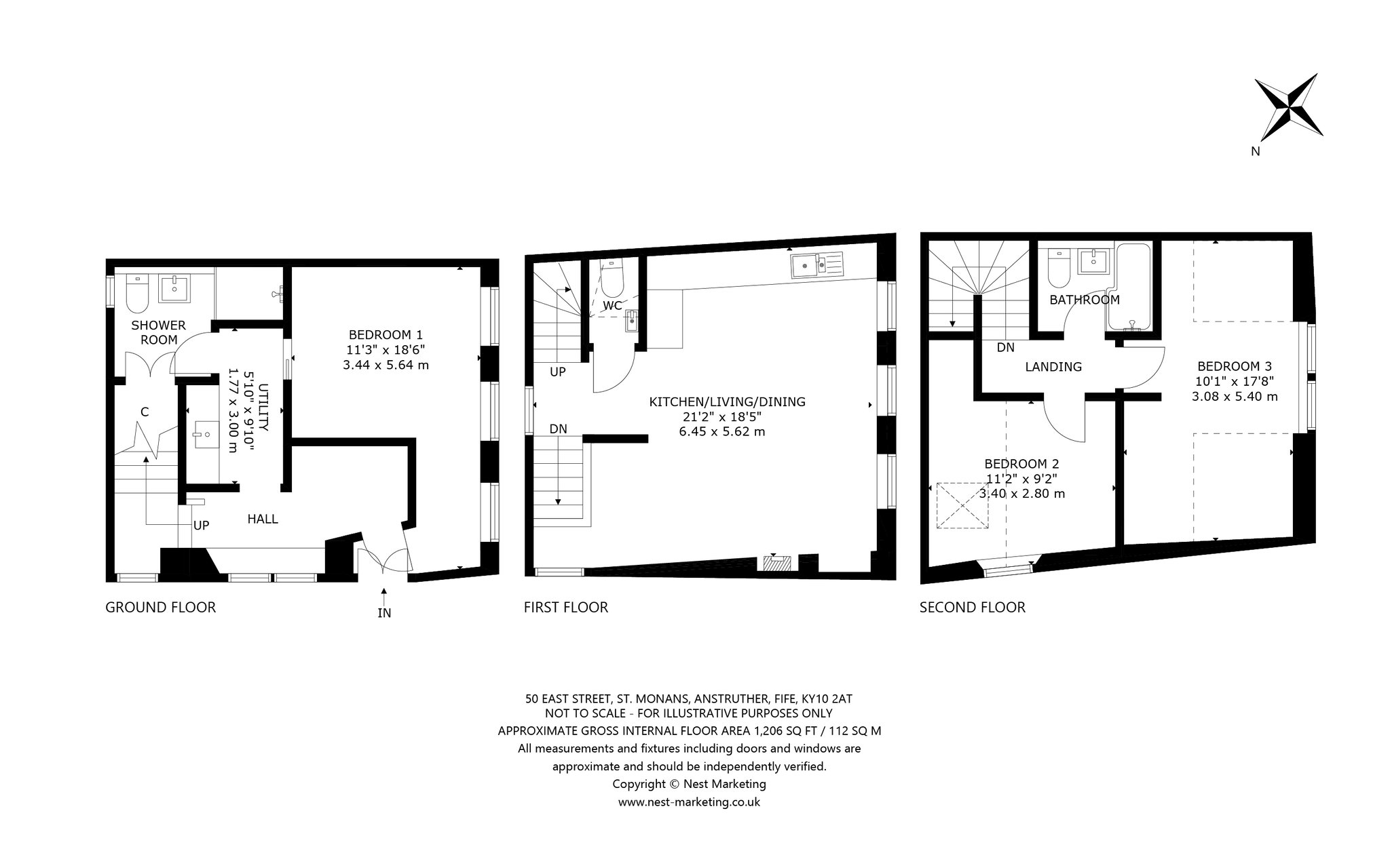 A stone’s throw from the picturesque and historic St Monan’s Harbour, 50 East Street enjoys an idyllic location on the East Neuk of Fife. Only twelve miles south of St Andrews this delightful village and fishing port is dotted with attractive 17th and 18th century fishermen’s cottages fostering a warm and friendly community. The village provides essential amenities with a convenience store, and a well-loved café, the Giddy Gannet. The restored 14th century parish church adds to the village’s character. Exquisite and award-winning dining is just minutes away at the East Pier Smokehouse and Craig Millar Restaurant. Nearby Anstruther boasts bustling bars, restaurants, independent boutiques, and of course its world-renowned fish bar. It also has an extensive Co-op Food. The family-run Ardross Farm Shop only a short drive from St Monans sells an array of local produce, and Bowhouse food hub hosts a monthly farmers market. Situated directly on the Fife Coastal Trail, St Monans is the gateway to the other pretty villages that lie along the coast, including Crail, Elie, and Pittenweem. Dundee to the north is a forty-minute drive and Edinburgh to the south is approx. 80 minutes by car or just over an hour by train from Leuchars.
