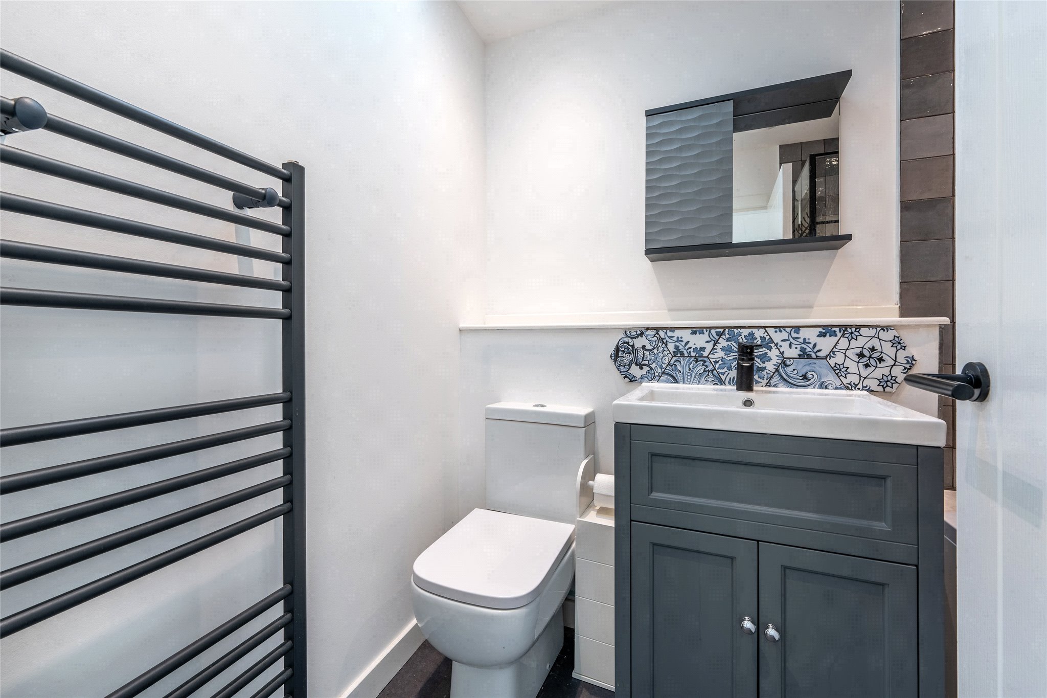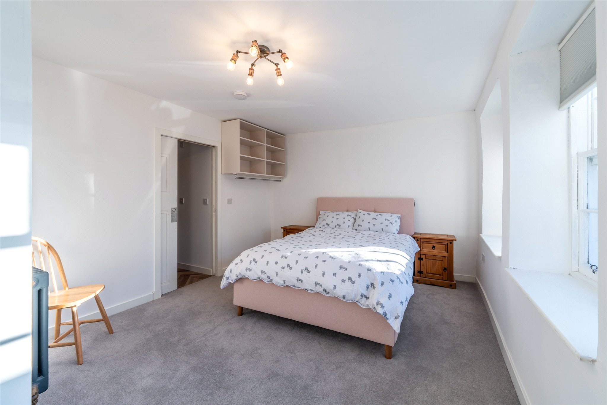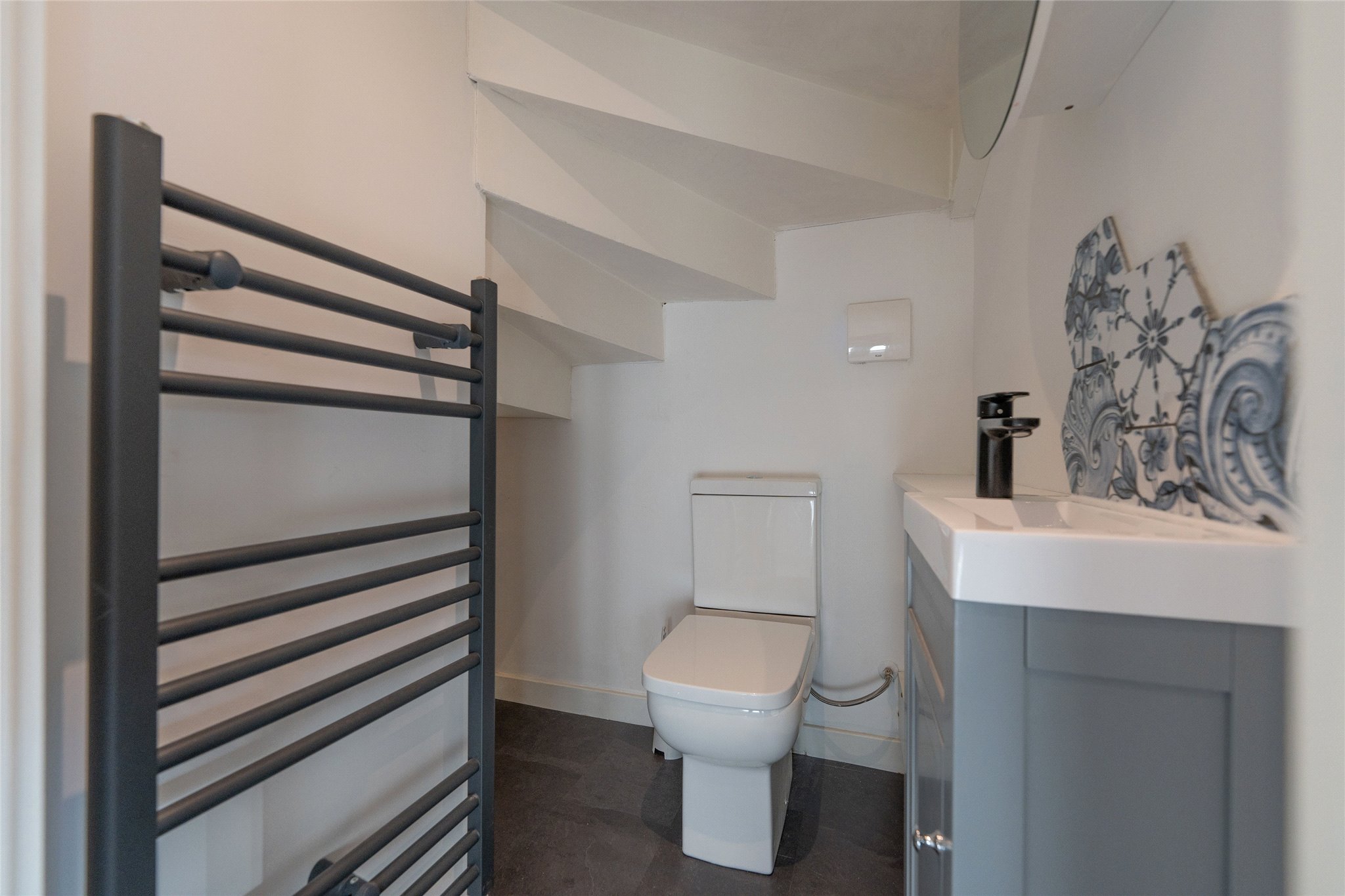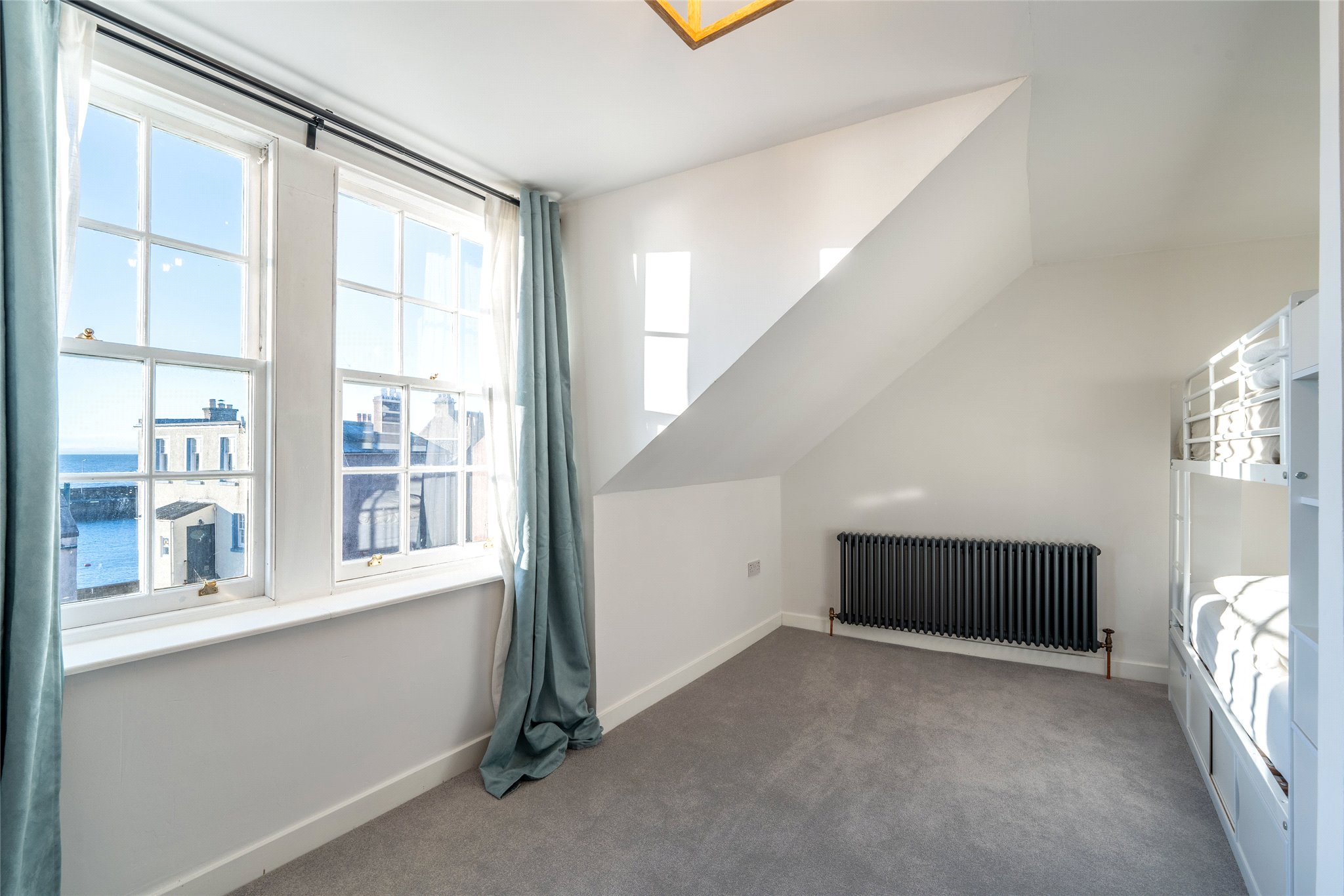Beautifully renovated by the current owners with careful consideration given to its heritage, this three-floor Category C-listed townhouse steps from St Monan’s harbour is characterised by historic charm and thoughtful high quality modern finishes. Elegant parquet flooring and a calm colour palette welcome you into the ground floor entrance hallway, setting the scene for the impressive interiors. Here alongside useful shoe and coat storage, there is a bespoke and open utility area complete with built-in cupboards and a Belfast sink. You then move through to a stylish shower room finished in soothing matte black, grey, and white. Complete with a washbasin built into vanity and WC, it is a useful addition to the ground floor. Returning to the hallway, the principal double bedroom is flooded with natural light thanks to a south-west-facing aspect and triple sash and case windows. Decorated with plush carpeting and neutral wall finishes it is light and airy yet comfortable and inviting. Ascending the carpeted staircase from the hallway, the first floor hosts a spectacular south-west-facing open plan kitchen and living room with views across the harbour. Tastefully combining original features with the best in modern design, an exposed stone wall and sash and case windows sit alongside oak-engineered flooring, a custom-made dining table with built-in seating, and a contemporary kitchen. L-shaped in layout wall and floor cabinetry in a soft green is complemented by smooth black worktops and a colourful geometric tiled splashback. High-spec integrated appliances include an extractor hood, hob, eye-level grill, and oven. A stove and cast-iron radiators ensure the room despite its generous proportions remains warm and comfortable. There is a WC on this floor. The second floor is home to two sizeable double bedrooms, one of which spans the length of the residence and boasts a tranquil south-west-facing view of the harbour and Firth of Forth. A luxurious family bathroom finishes the interior layout featuring a bath with a wall-mounted shower, washbasin built into vanity, WC, and towel radiator.