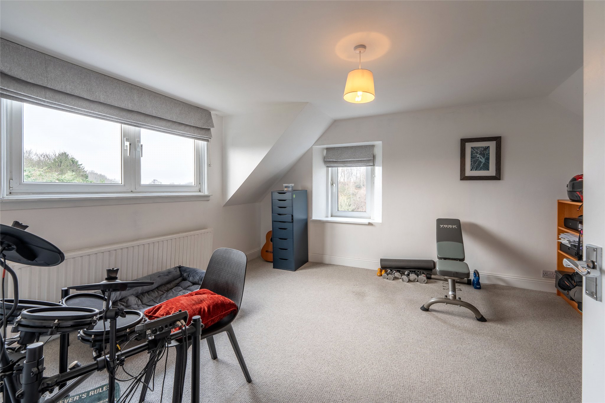 Returning to the hallway, you pass a well-appointed shower room before reaching a light-filled double bedroom. Completing the ground floor is a large sitting room overlooking the front of the property and with a feature fireplace.