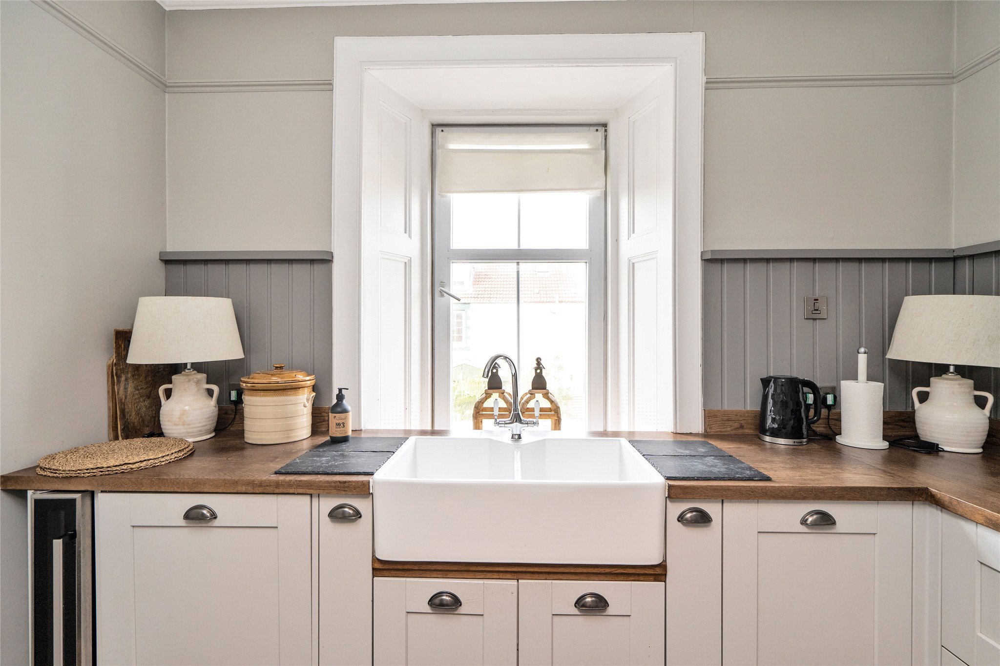 Minutes from the picturesque and historic St Monans Harbour and tidal pool, Sage House enjoys a sought-after and idyllic location on the East Neuk of Fife. Only twelve miles south of St Andrews this delightful village and fishing port is dotted with attractive 17th and 18th century fishermen’s cottages fostering a warm and friendly community. The village provides essential amenities with a convenience store, and a well-loved café, the Giddy Gannet. The restored 14th century parish church adds to the village’s character. Exquisite and award-winning dining is just minutes away at the East Pier Smokehouse and Craig Millar Restaurant. Nearby Anstruther boasts bustling bars, restaurants, independent boutiques, and of course its world-renowned fish bar. It also has an extensive Co-op Food. The family-run Ardross Farm Shop only a short drive from St Monans sells an array of local produce, and Bowhouse food hub hosts a monthly farmers market. Situated directly on the Fife Coastal Trail, St Monans is the gateway to the other pretty villages that lie along the coast, including Crail, Elie, and Pittenweem. Dundee to the north is a forty-minute drive and Edinburgh to the south is approx. 80 minutes by car or just over an hour by train from Leuchars.