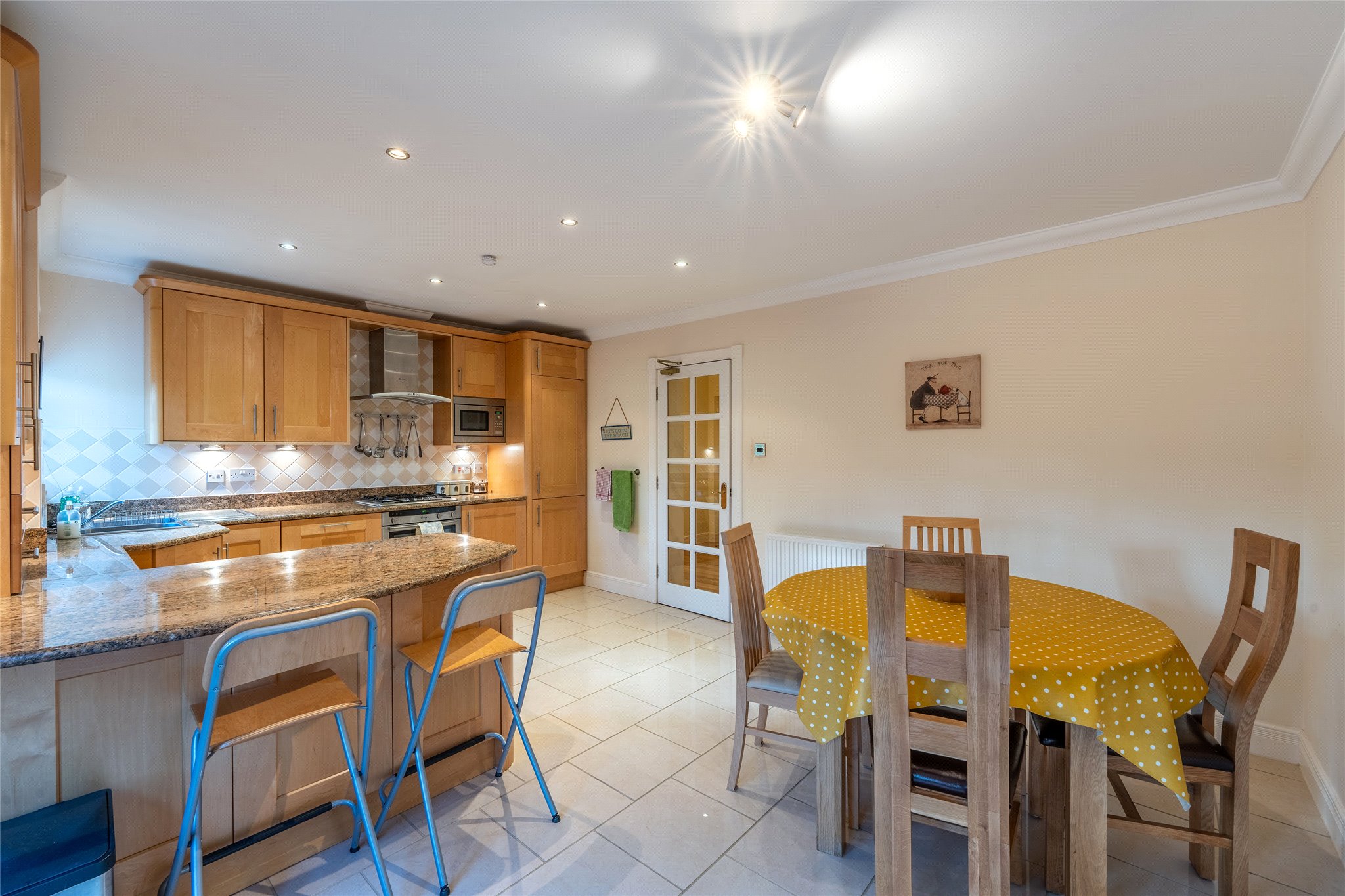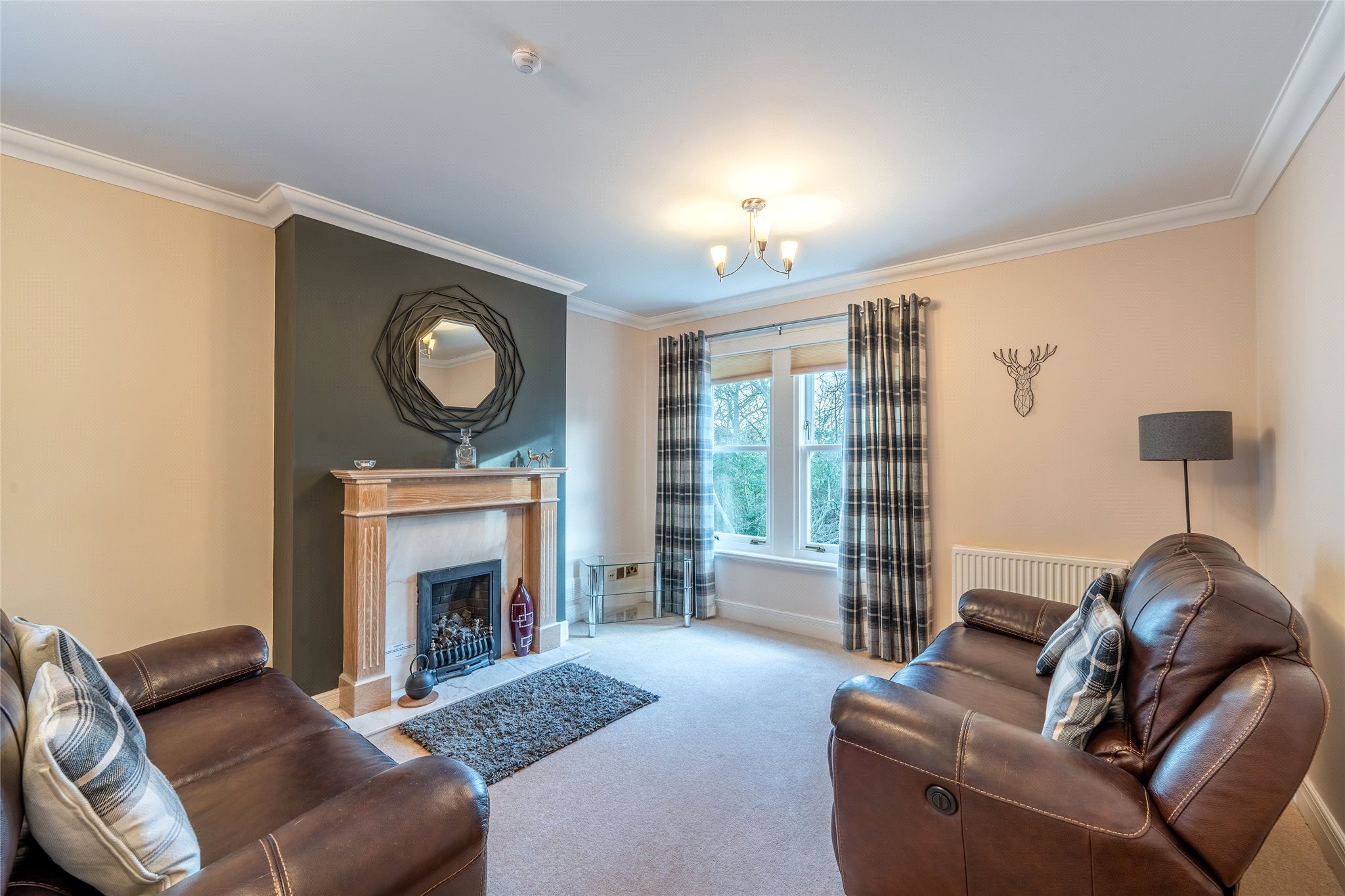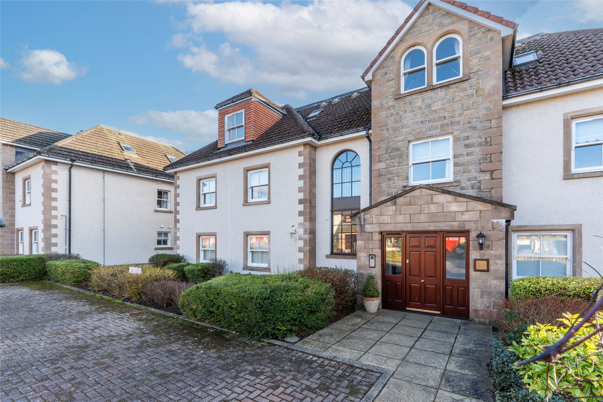 Located on the first floor of a small, exclusive apartment building in a peaceful cul-de-sac, this spacious, bright, and well-presented three-bedroom apartment occupies an enviable location just a short distance from St Andrews town centre. Accessed via a shared well-kept carpeted hallway and staircase, the front door opens into an inviting hall decorated with wood-effect flooring and a soft colour palette, creating a delightful first impression. From here you move into a dual-aspect south and east-facing living room that exudes a warm and welcoming ambience. This is enhanced by the tasteful dècor of muted earthy tones, plush carpeting and a living flame fireplace housed in an oak mantle. Returning to the hallway, the spacious dining kitchen boasts French doors opening to a Juliet balcony making it a delightful place for day-to-day living. Thoughtfully designed for both informal and formal dining, the layout showcases under-base-lit shaker-style wall and floor units complemented by quartz-effect worktops, a tiled splashback and breakfast bar. Integrated appliances include an extractor hood, microwave, gas hob, and oven. Each of the three generously proportioned bedrooms is light and airy with serene colour palettes, built-in wardrobes, and carpeting. The principal benefits from a stylish modern shower room complete with a washbasin built into vanity, hidden cistern WC, and chrome towel radiator set against marble-effect tiling. Completing the internal layout is a second shower room.