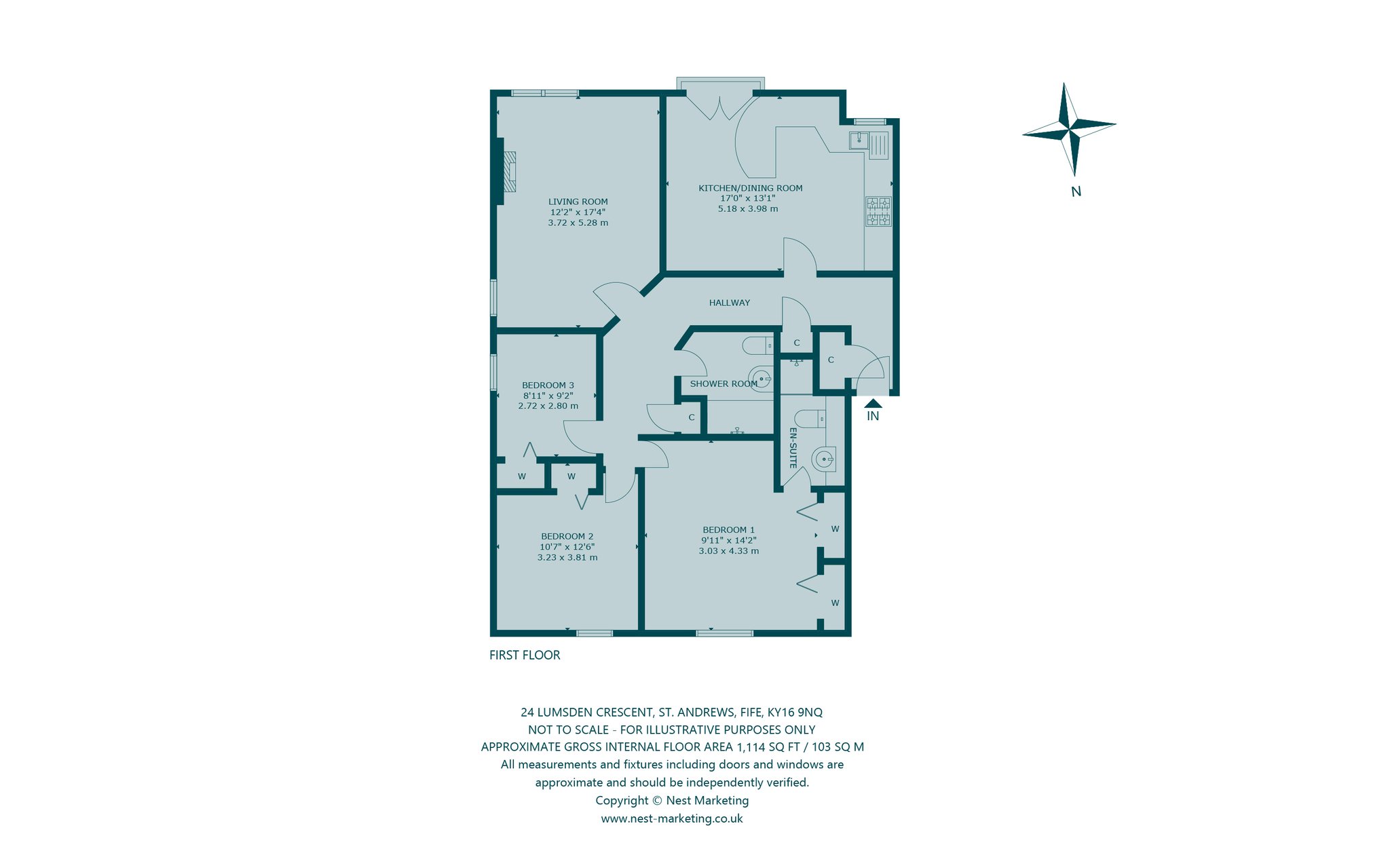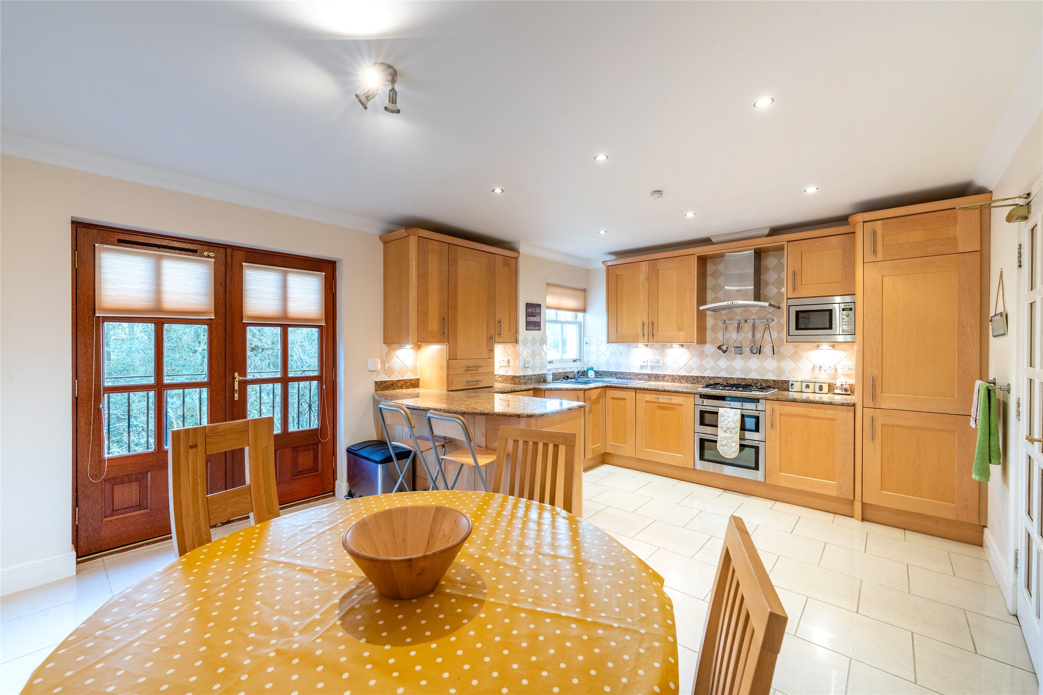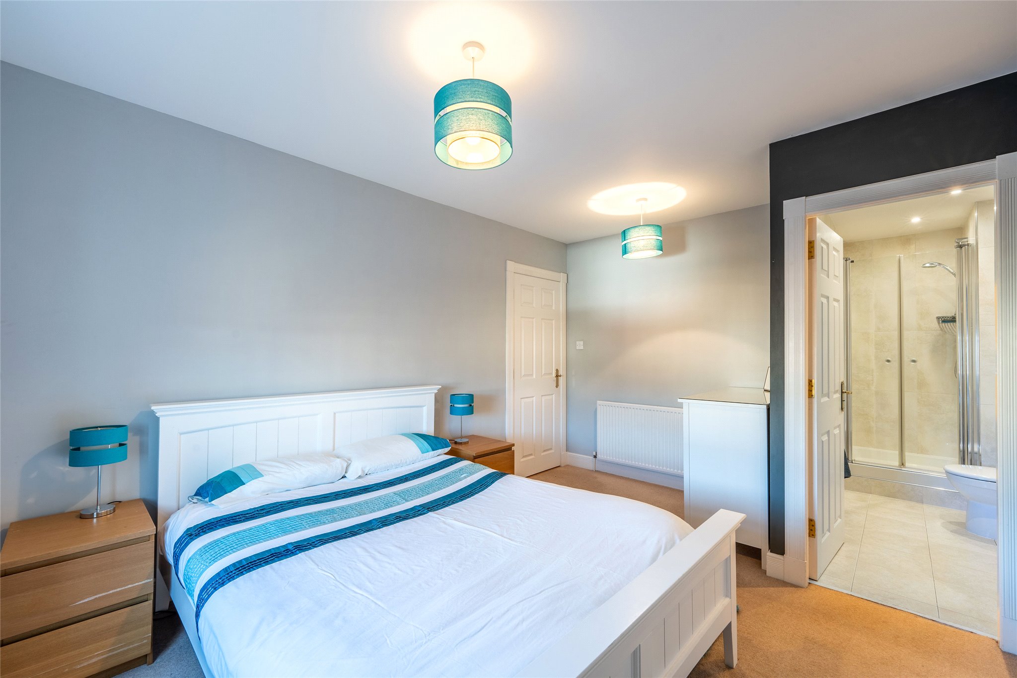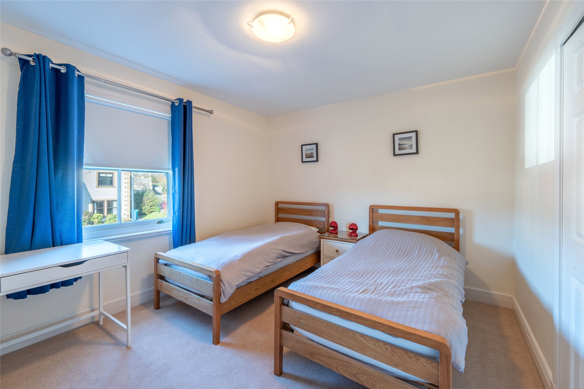 Located on the first floor of a small, exclusive apartment building in a peaceful cul-de-sac, this spacious, bright, and well-presented three-bedroom apartment occupies an enviable location just a short distance from St Andrews town centre. Accessed via a shared well-kept carpeted hallway and staircase, the front door opens into an inviting hall decorated with wood-effect flooring and a soft colour palette, creating a delightful first impression. From here you move into a dual-aspect south and east-facing living room that exudes a warm and welcoming ambience. This is enhanced by the tasteful dècor of muted earthy tones, plush carpeting and a living flame fireplace housed in an oak mantle. Returning to the hallway, the spacious dining kitchen boasts French doors opening to a Juliet balcony making it a delightful place for day-to-day living. Thoughtfully designed for both informal and formal dining, the layout showcases under-base-lit shaker-style wall and floor units complemented by quartz-effect worktops, a tiled splashback and breakfast bar. Integrated appliances include an extractor hood, microwave, gas hob, and oven. Each of the three generously proportioned bedrooms is light and airy with serene colour palettes, built-in wardrobes, and carpeting. The principal benefits from a stylish modern shower room complete with a washbasin built into vanity, hidden cistern WC, and chrome towel radiator set against marble-effect tiling. Completing the internal layout is a second shower room.