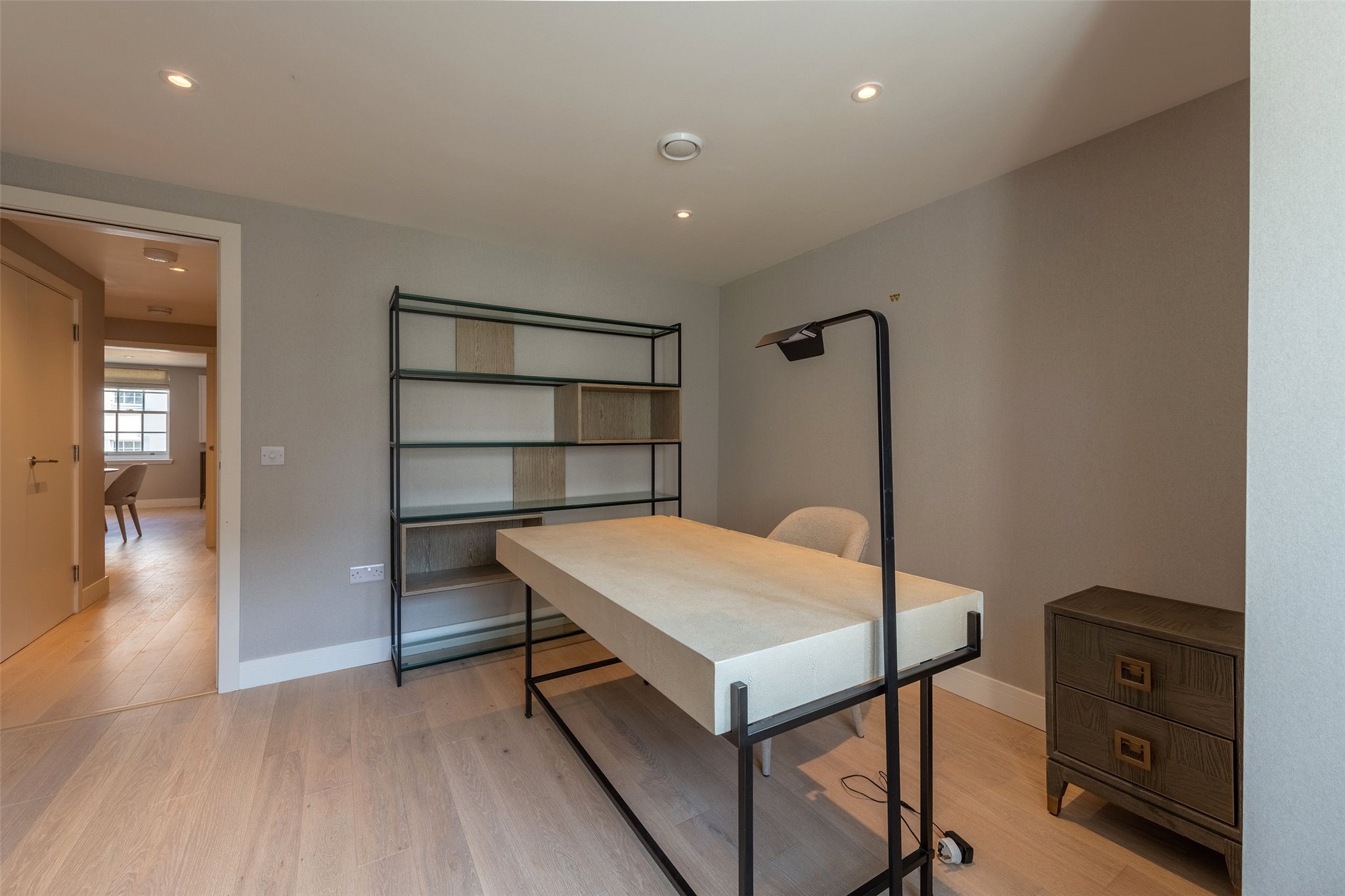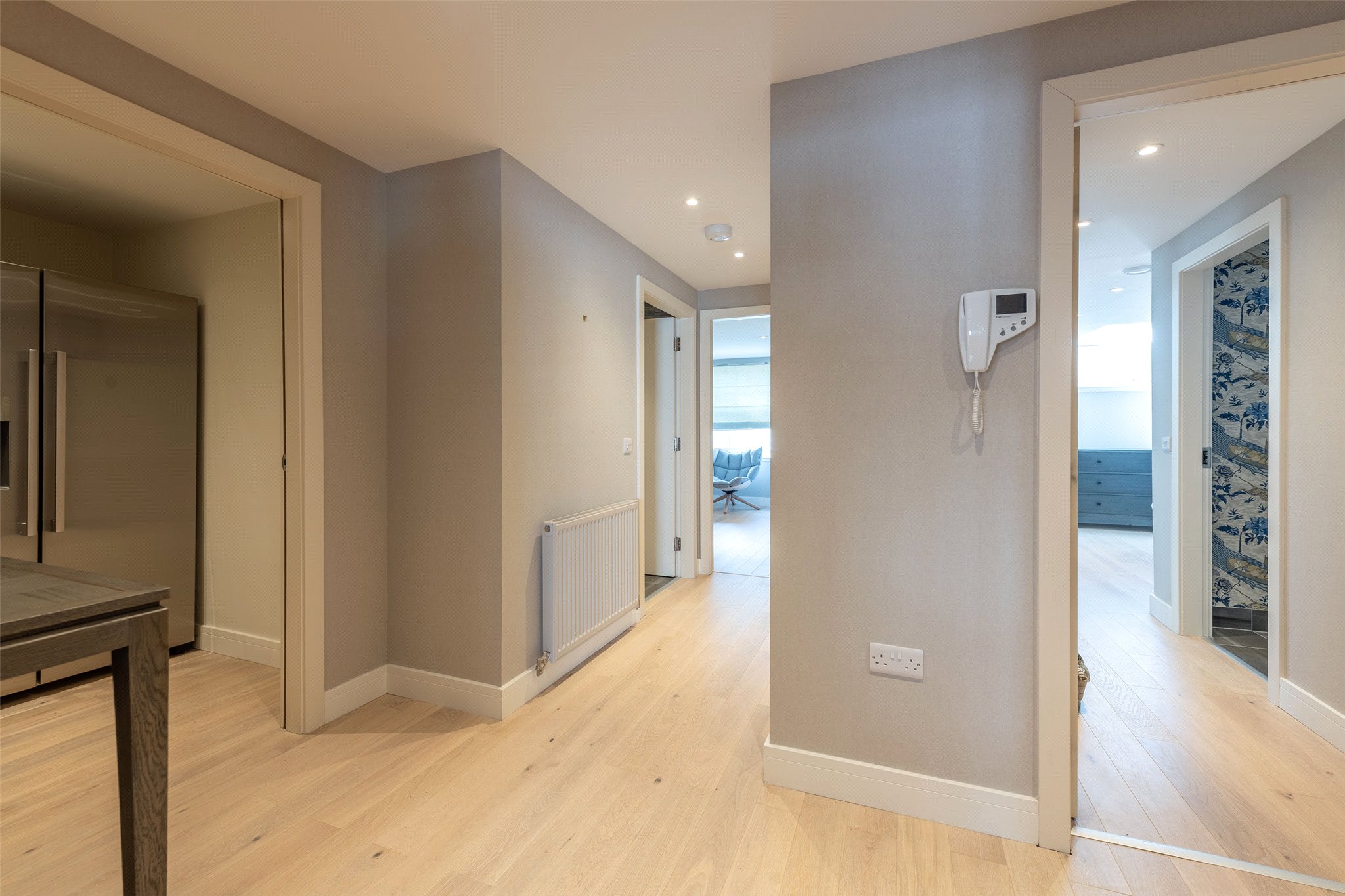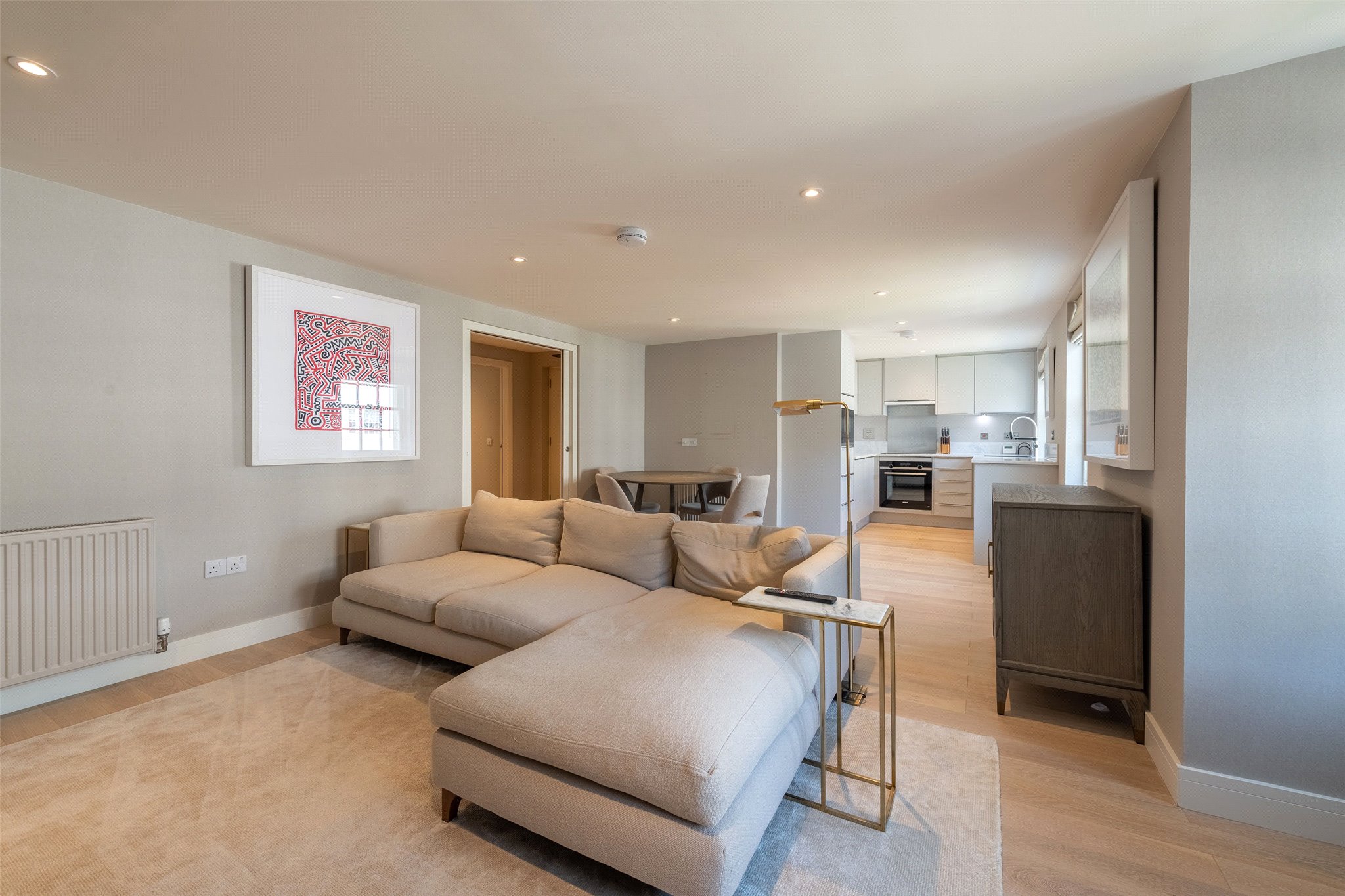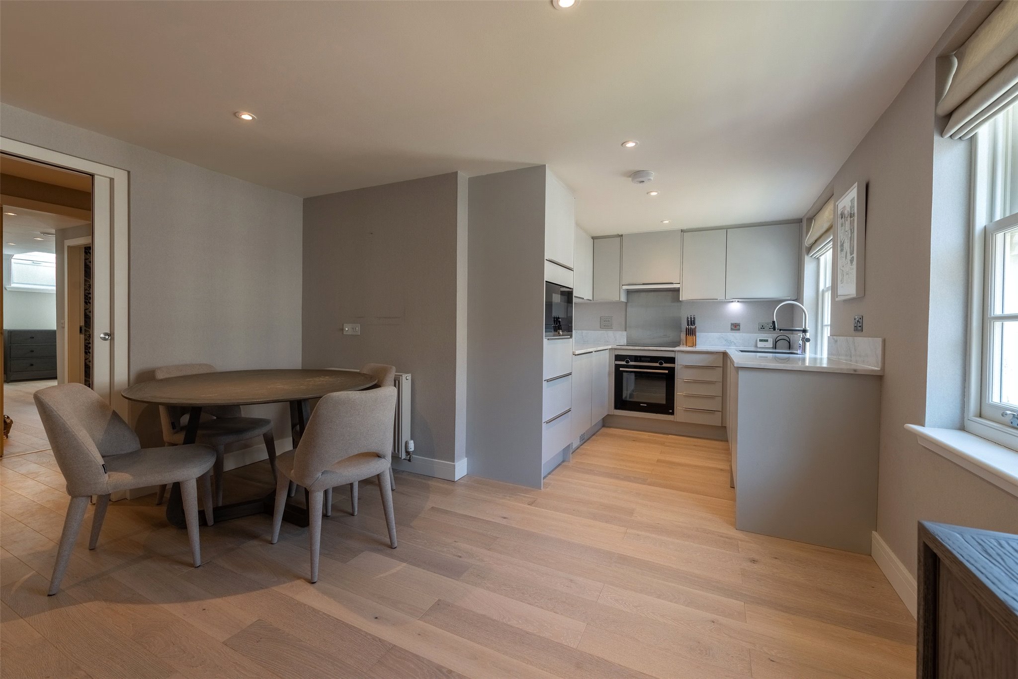 Situated in the very heart of St Andrews, this luxurious two-bedroom first-floor apartment with private underground parking has been meticulously designed with the highest quality finishes throughout. Housed within a handsome and exclusive residential development boasting landscaped garden grounds, the front door opens into a welcoming hallway with a chic interior design. From here sliding doors reveal a stunning open-plan living room and kitchen. Flooded with natural light from three windows including an elegant box bay window it exudes an ambience of refined sophistication. This feeling is enhanced by its tasteful décor which includes a continuation of the hallway’s wooden flooring along with wall finishes in a soft grey and ambient lighting. Allowing for dining as well as relaxing it is very much at the heart of the residence. The U-shaped designer kitchen showcases a sleek layout featuring grey wall and floor cabinetry, illuminated white marble worktops, and high-spec SIEMENS appliances that include an eye-level microwave, hob, and oven. A utility ensures it remains aesthetically appealing and streamlined. Across the hallway lies an inviting south-facing principal double bedroom. Thoughtfully designed, it boasts built-in mirrored wardrobes and an indulgent en-suite shower room. Adjacent lies a versatile south-facing second double bedroom with built-in storage, currently utilised as a comfortable study. Completing the impressive layout is a design-led bathroom showcasing a washbasin built into vanity, LED lit mirror, hidden cistern WC, bath with wall-mounted shower, and a towel radiator. Set against exquisite tiles it is a serene and spa-like retreat.
