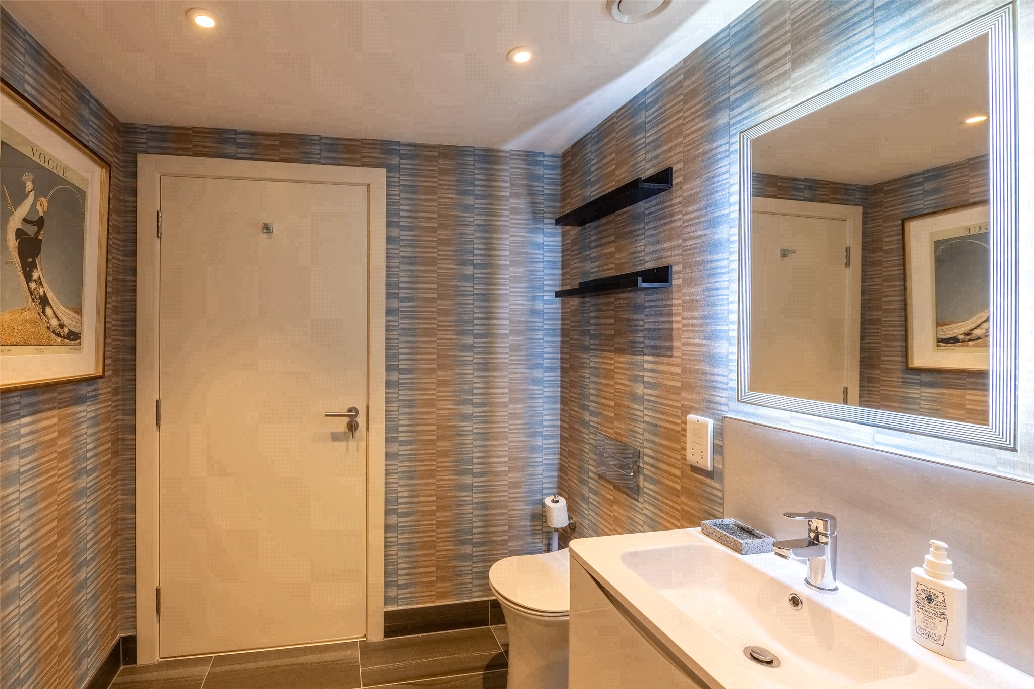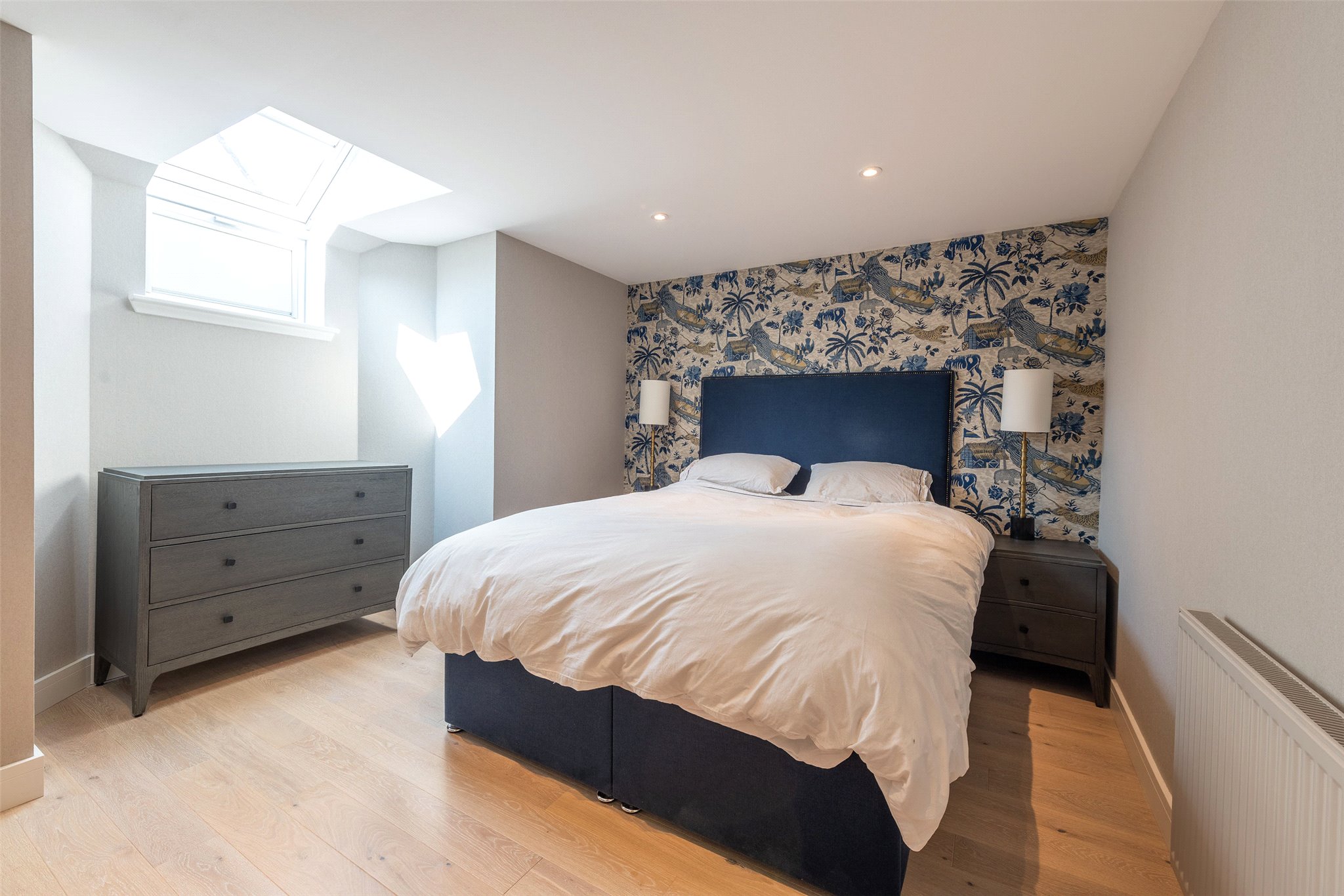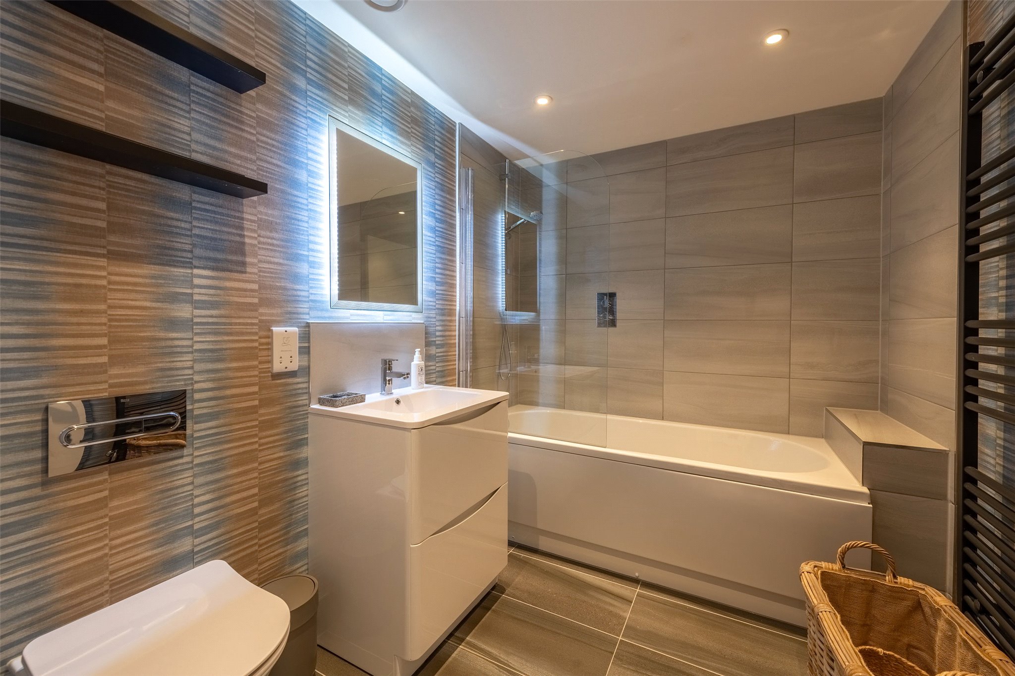 Situated in the very heart of St Andrews, this luxurious two-bedroom first-floor apartment with private underground parking has been meticulously designed with the highest quality finishes throughout. Housed within a handsome and exclusive residential development boasting landscaped garden grounds, the front door opens into a welcoming hallway with a chic interior design. From here sliding doors reveal a stunning open-plan living room and kitchen. Flooded with natural light from three windows including an elegant box bay window it exudes an ambience of refined sophistication. This feeling is enhanced by its tasteful décor which includes a continuation of the hallway’s wooden flooring along with wall finishes in a soft grey and ambient lighting. Allowing for dining as well as relaxing it is very much at the heart of the residence. The U-shaped designer kitchen showcases a sleek layout featuring grey wall and floor cabinetry, illuminated white marble worktops, and high-spec SIEMENS appliances that include an eye-level microwave, hob, and oven. A utility ensures it remains aesthetically appealing and streamlined. Across the hallway lies an inviting south-facing principal double bedroom. Thoughtfully designed, it boasts built-in mirrored wardrobes and an indulgent en-suite shower room. Adjacent lies a versatile south-facing second double bedroom with built-in storage, currently utilised as a comfortable study. Completing the impressive layout is a design-led bathroom showcasing a washbasin built into vanity, LED lit mirror, hidden cistern WC, bath with wall-mounted shower, and a towel radiator. Set against exquisite tiles it is a serene and spa-like retreat.