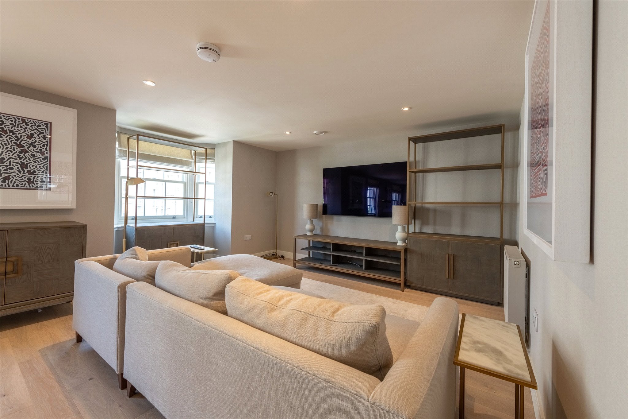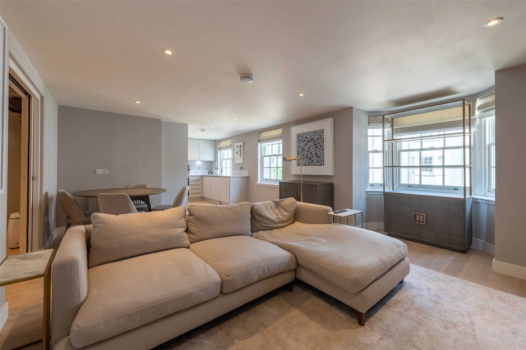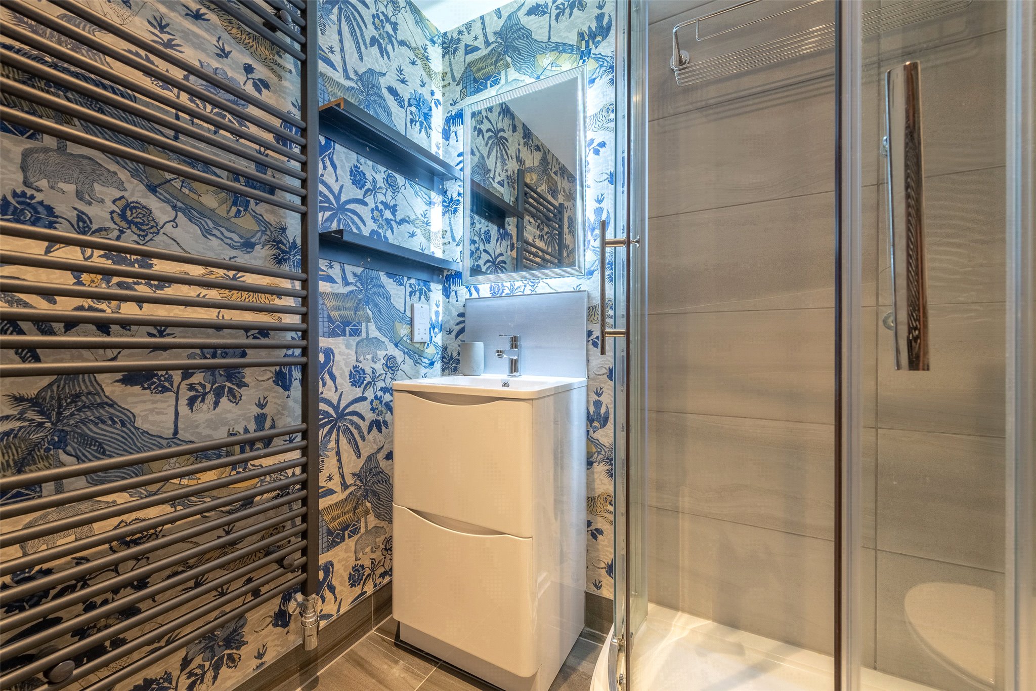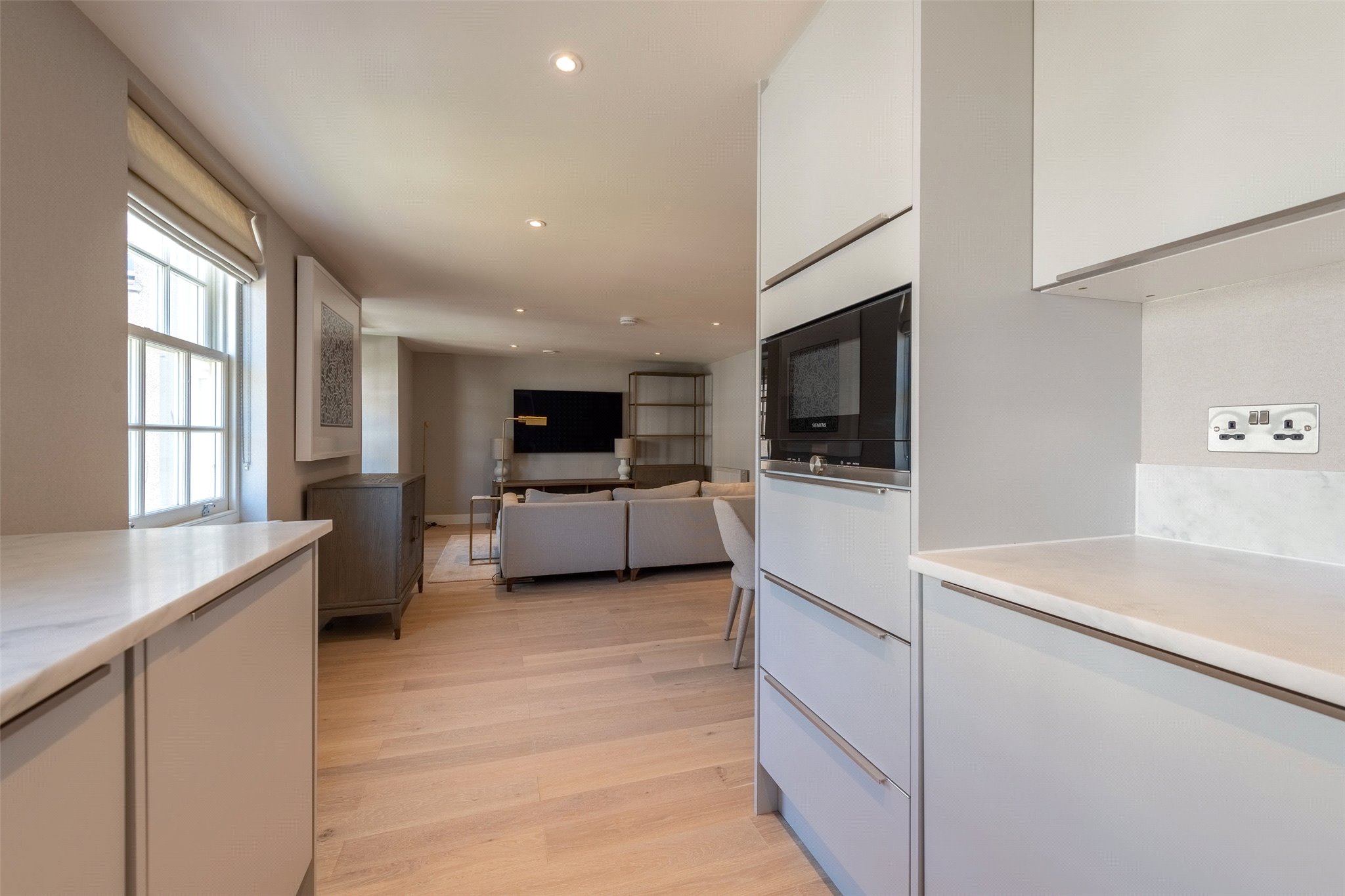 Situated in the very heart of St Andrews, this luxurious two-bedroom first-floor apartment with private underground parking has been meticulously designed with the highest quality finishes throughout. Housed within a handsome and exclusive residential development boasting landscaped garden grounds, the front door opens into a welcoming hallway with a chic interior design. From here sliding doors reveal a stunning open-plan living room and kitchen. Flooded with natural light from three windows including an elegant box bay window it exudes an ambience of refined sophistication. This feeling is enhanced by its tasteful décor which includes a continuation of the hallway’s wooden flooring along with wall finishes in a soft grey and ambient lighting. Allowing for dining as well as relaxing it is very much at the heart of the residence. The U-shaped designer kitchen showcases a sleek layout featuring grey wall and floor cabinetry, illuminated white marble worktops, and high-spec SIEMENS appliances that include an eye-level microwave, hob, and oven. A utility ensures it remains aesthetically appealing and streamlined. Across the hallway lies an inviting south-facing principal double bedroom. Thoughtfully designed, it boasts built-in mirrored wardrobes and an indulgent en-suite shower room. Adjacent lies a versatile south-facing second double bedroom with built-in storage, currently utilised as a comfortable study. Completing the impressive layout is a design-led bathroom showcasing a washbasin built into vanity, LED lit mirror, hidden cistern WC, bath with wall-mounted shower, and a towel radiator. Set against exquisite tiles it is a serene and spa-like retreat.