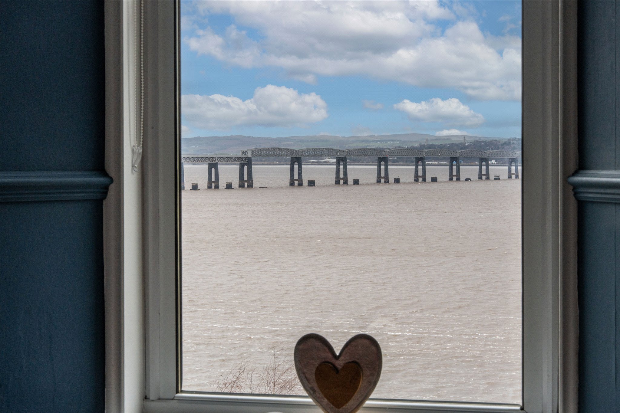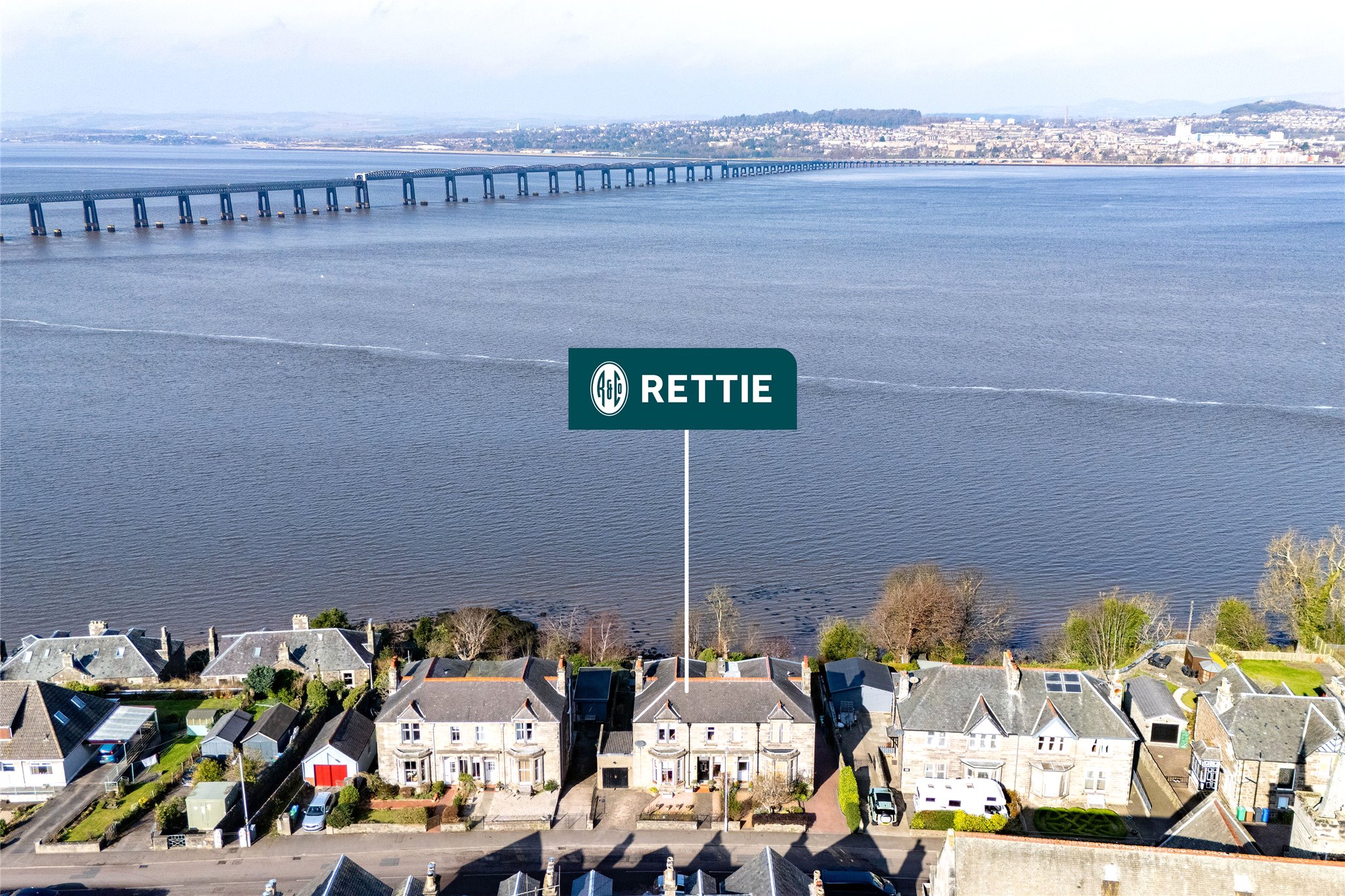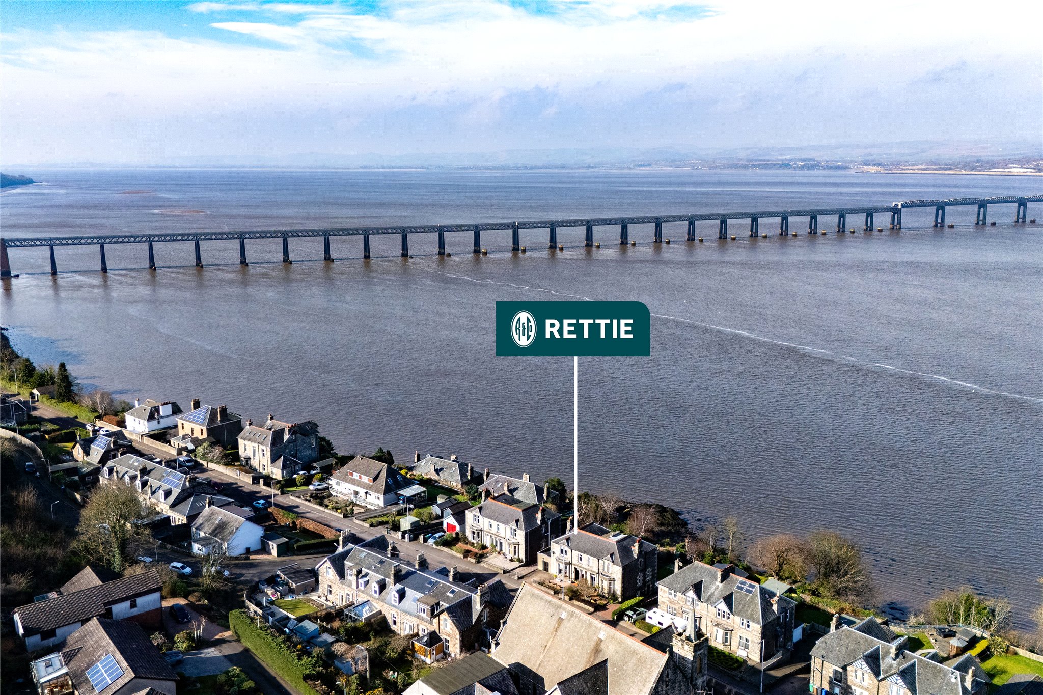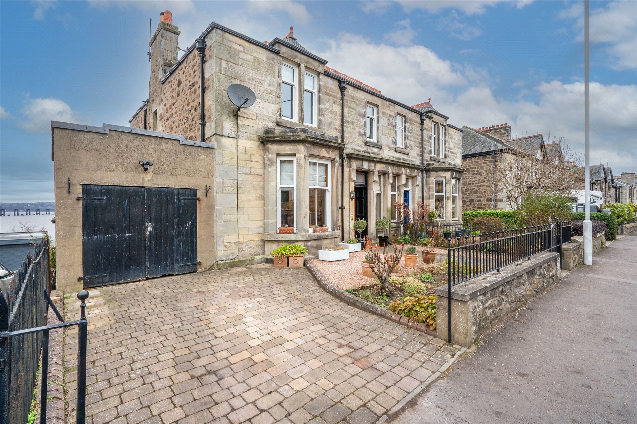 Balancing high-quality contemporary finishes with stunning period details, this exceptional four-bedroom semi-detached Victorian villa on the banks of the Firth of Tay presents a rare opportunity to acquire an immaculately presented family home in a sought-after village setting. A striking stone façade, framed by cast iron railings, leads you to the entrance vestibule and through to an inviting hallway. To the left, the spacious south-facing sitting room boasts an abundance of period charm and with its plush carpeting and soft warm décor is perfect for both relaxation and entertaining. High ceilings amplify the sense of openness, while a grand bay window, adorned with rich oak panelling, bathes the room in natural light. Intricate cornicing and a decorative ceiling rose add to the room's timeless elegance, and an open cast iron fireplace with an oak mantle and decorative tiled insert offers a striking focal point. To the rear, the modern farmhouse-style kitchen features cream cabinetry with under-base lighting, a Belfast sink, butcher-block worktops, and high-spec integrated appliances, including a sleek six-ring range cooker and stainless-steel extractor hood. Adjacent to the kitchen and also accessible from the hallway, is a charming dining room with handsome wooden flooring, a feature fireplace, and French doors that open onto the garden, showcasing a captivating aspect of the Firth of Tay. Completing this floor is a luxurious bathroom, designed as a serene retreat, with a Savoy roll-top slipper bath, a corner rainfall shower enclosure, a washbasin built into vanity, a WC, and a cast iron towel radiator, all set against a chic backdrop of monochrome metro tiles. Ascending the carpeted staircase, with its ornate carved oak banister and original stained-glass skylight, the first floor reveals four beautifully decorated bedrooms. Finished in calm muted tones and adorned with wooden flooring, exquisite cornicing, and a built-in press, the magnificent south-facing principal exudes a sense of understated grandeur and comfort. The two rear bedrooms offer tranquil views across the Firth of Tay, and all share access to a contemporary WC. Returning to the ground floor and stairs descend to the basement level. Here a carpeted hallway with whitewashed stone walls opens to a versatile and sizeable storeroom along with an appealing office/sitting room boasting wooden flooring, built-in cupboards and an exposed beam. Featuring sliding doors to the garden this light-filled space seamlessly connects the indoors with the stunning natural landscape. On this floor is also a well-appointed utility room with garden access through a fully-glazed door and a WC.