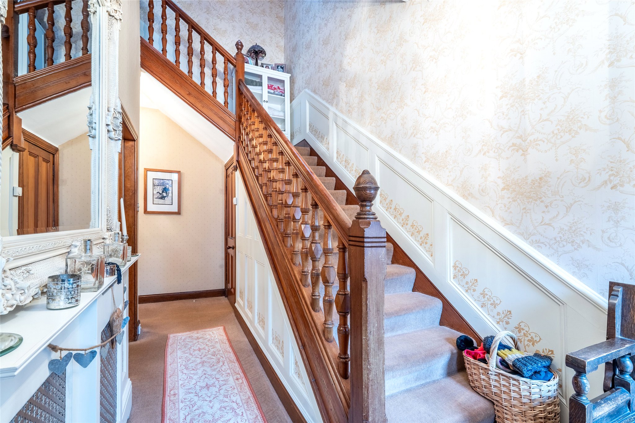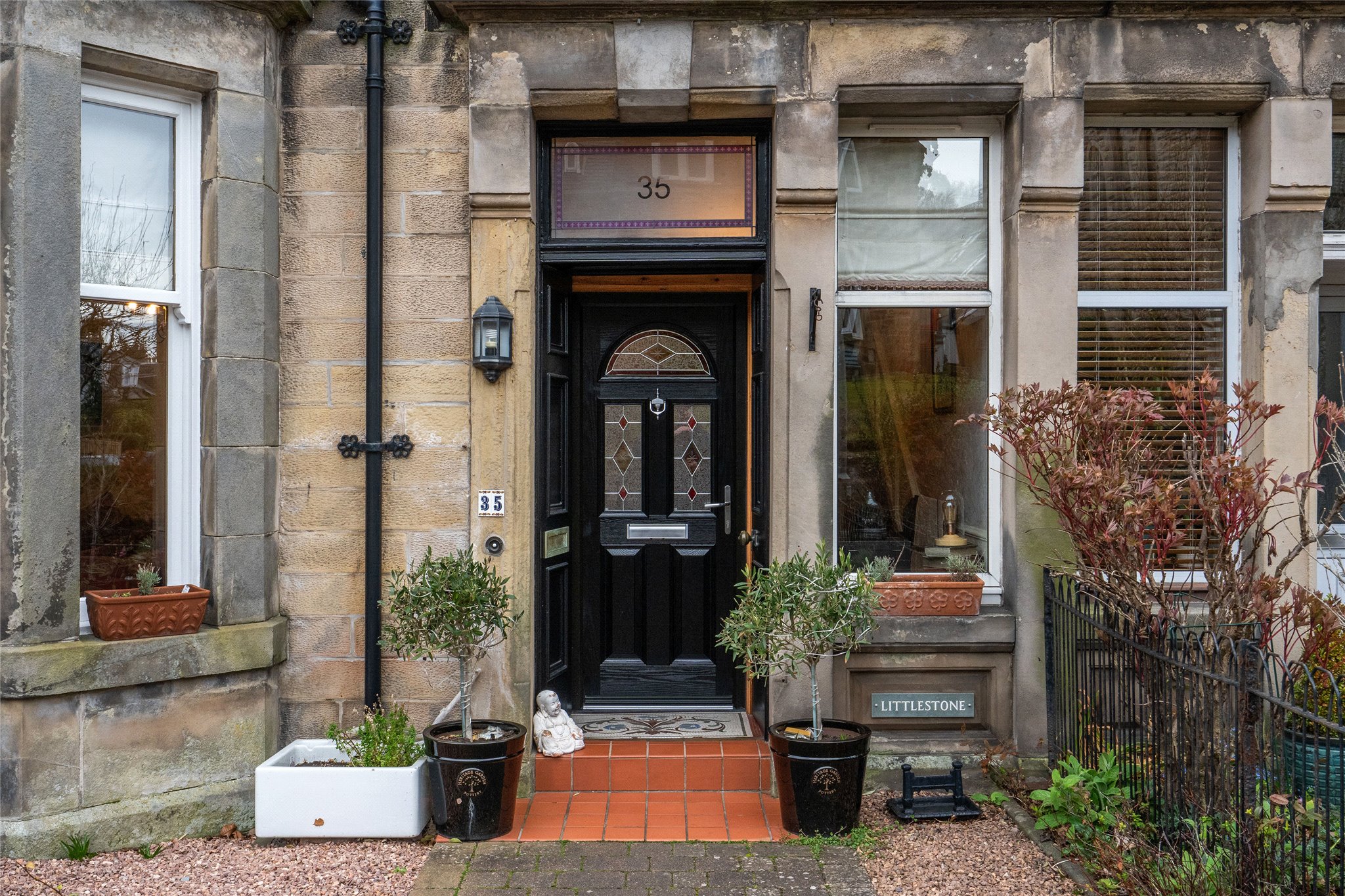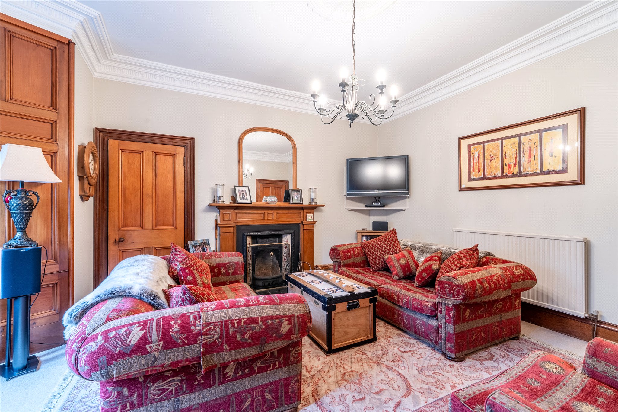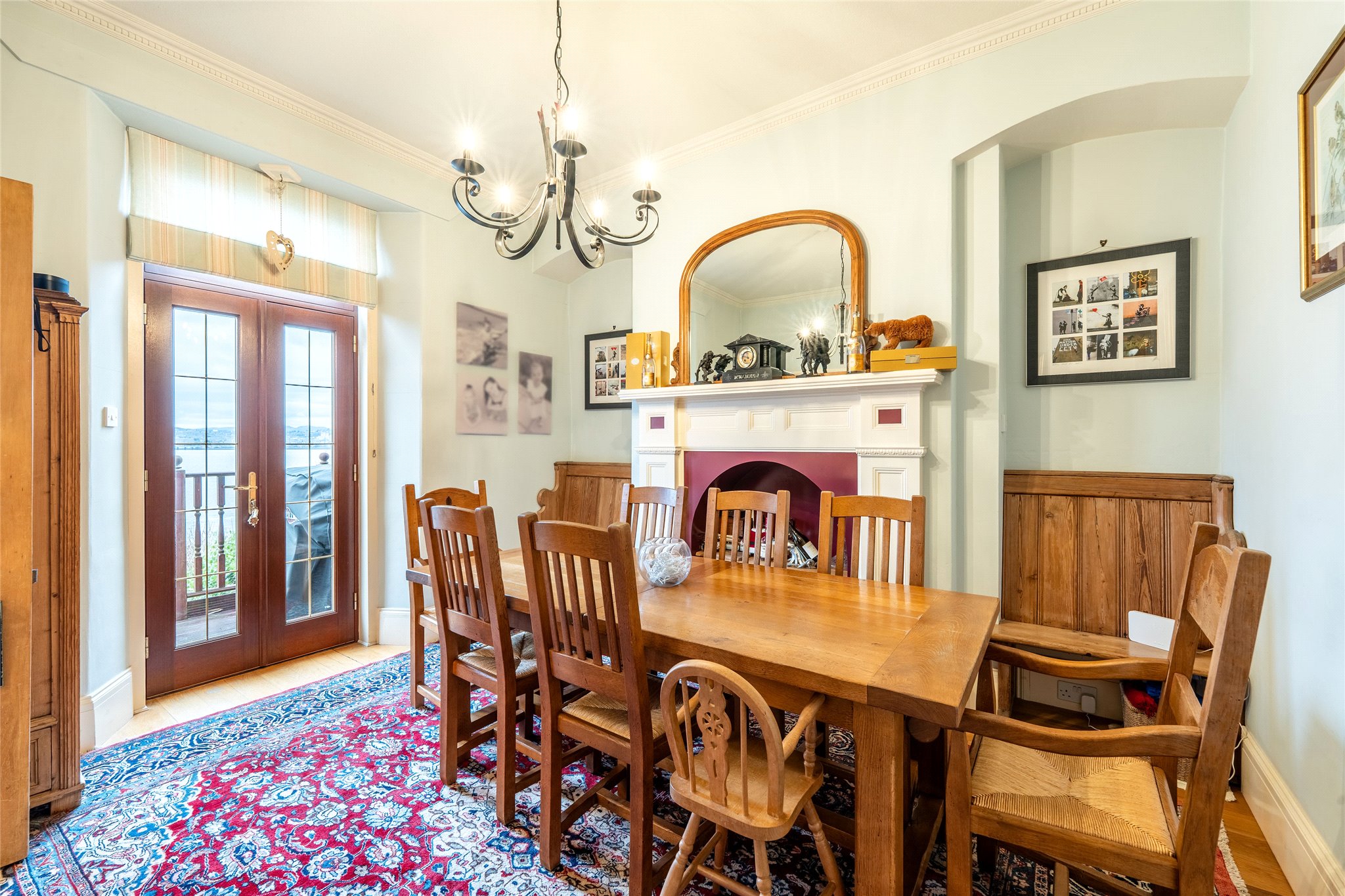 Balancing high-quality contemporary finishes with stunning period details, this exceptional four-bedroom semi-detached Victorian villa on the banks of the Firth of Tay presents a rare opportunity to acquire an immaculately presented family home in a sought-after village setting. A striking stone façade, framed by cast iron railings, leads you to the entrance vestibule and through to an inviting hallway. To the left, the spacious south-facing sitting room boasts an abundance of period charm and with its plush carpeting and soft warm décor is perfect for both relaxation and entertaining. High ceilings amplify the sense of openness, while a grand bay window, adorned with rich oak panelling, bathes the room in natural light. Intricate cornicing and a decorative ceiling rose add to the room's timeless elegance, and an open cast iron fireplace with an oak mantle and decorative tiled insert offers a striking focal point. To the rear, the modern farmhouse-style kitchen features cream cabinetry with under-base lighting, a Belfast sink, butcher-block worktops, and high-spec integrated appliances, including a sleek six-ring range cooker and stainless-steel extractor hood. Adjacent to the kitchen and also accessible from the hallway, is a charming dining room with handsome wooden flooring, a feature fireplace, and French doors that open onto the garden, showcasing a captivating aspect of the Firth of Tay. Completing this floor is a luxurious bathroom, designed as a serene retreat, with a Savoy roll-top slipper bath, a corner rainfall shower enclosure, a washbasin built into vanity, a WC, and a cast iron towel radiator, all set against a chic backdrop of monochrome metro tiles. Ascending the carpeted staircase, with its ornate carved oak banister and original stained-glass skylight, the first floor reveals four beautifully decorated bedrooms. Finished in calm muted tones and adorned with wooden flooring, exquisite cornicing, and a built-in press, the magnificent south-facing principal exudes a sense of understated grandeur and comfort. The two rear bedrooms offer tranquil views across the Firth of Tay, and all share access to a contemporary WC. Returning to the ground floor and stairs descend to the basement level. Here a carpeted hallway with whitewashed stone walls opens to a versatile and sizeable storeroom along with an appealing office/sitting room boasting wooden flooring, built-in cupboards and an exposed beam. Featuring sliding doors to the garden this light-filled space seamlessly connects the indoors with the stunning natural landscape. On this floor is also a well-appointed utility room with garden access through a fully-glazed door and a WC.