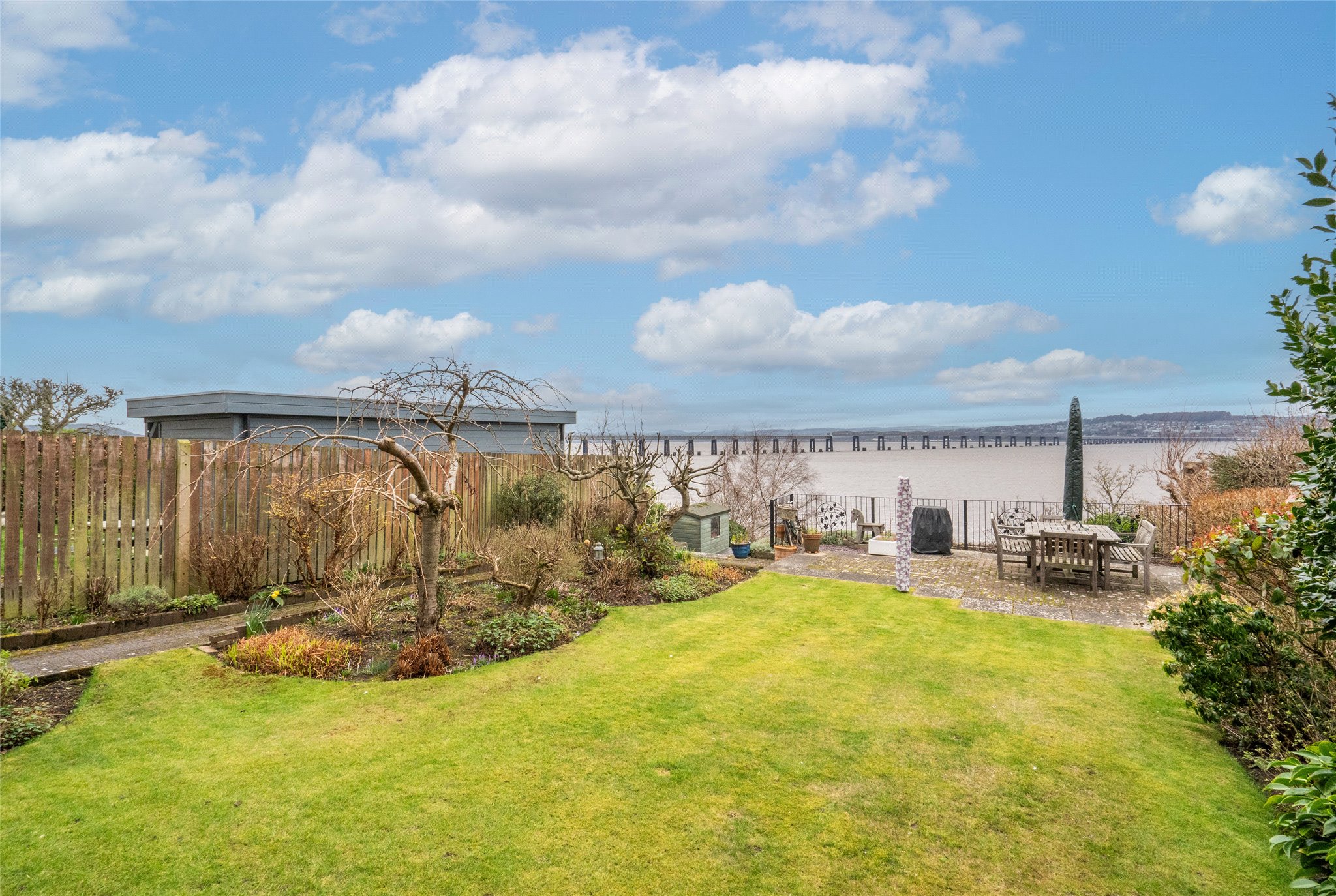 The thoughtfully landscaped rear terraced garden, with its panoramic views of the Firth of Tay, is a breathtaking extension of the home.