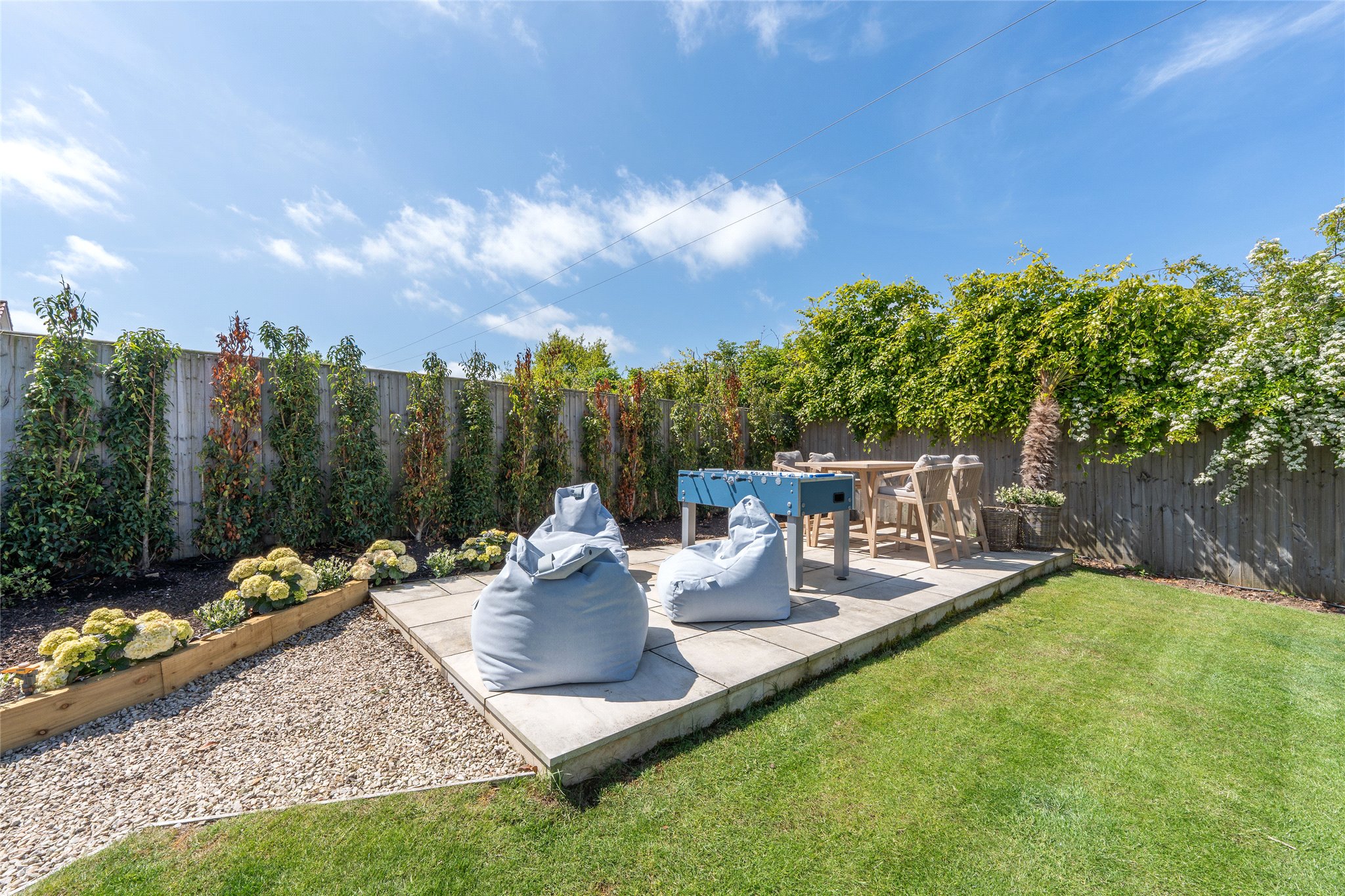 Utterly captivating, the fully enclosed landscaped and Mediterranean-inspired rear garden is a true showpiece and an idyllic setting for relaxed entertaining and family days.