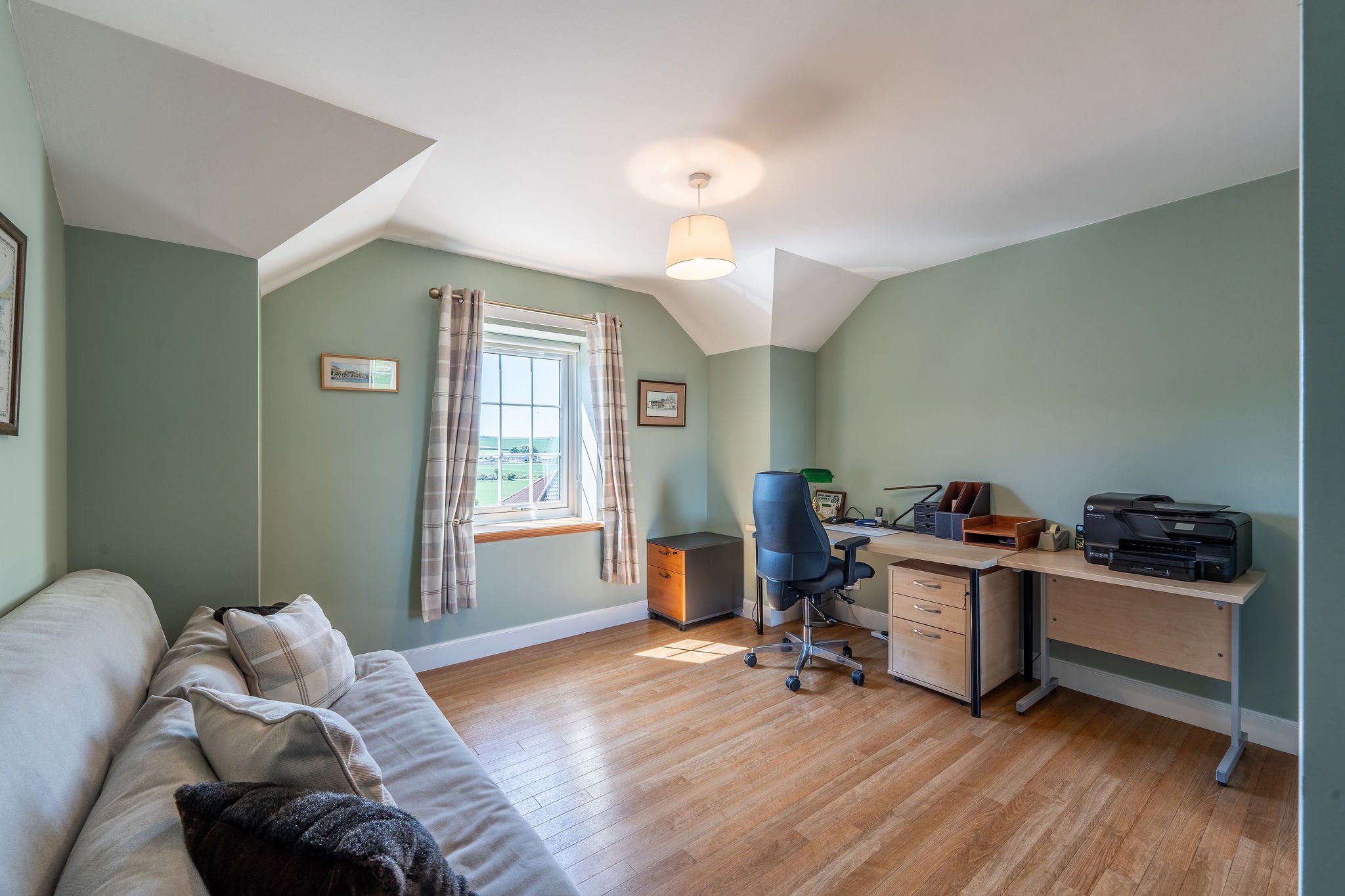 enjoys a delightful rural setting with the convenience of being only a short drive from retail and leisure amenities. A bustling and charming seaside and university town catering to students, golfers, and residents alike, St Andrews, ‘the home of golf’ boasts an array of shops and amenities to meet daily needs. These include boutique and independent retailers selling artisan produce and goods such as St Andrews Bakery, Mitchell’s Delicatessen, and Leuchars Quality Butchers through to well-known high street stores such as Sainsbury’s Local. Other popular retail destinations are Waterstones, Boots, and H&M. Thriving and cosmopolitan bars, restaurants, and cafès sit side-by-side offering fine dining through to casual lunches and drinks. Education at all levels is well-catered for. Positioned on the stunning east coast of Fife, St Andrews is the perfect location from which to explore the characterful fishing villages that make up this scenic part of Scotland including Anstruther, St Monans, Crail, and Pittenweem. Dundee to the north is a thirty-minute drive and Edinburgh to the south is approx. 90 minutes by car or just over an hour by train from Leuchars.
