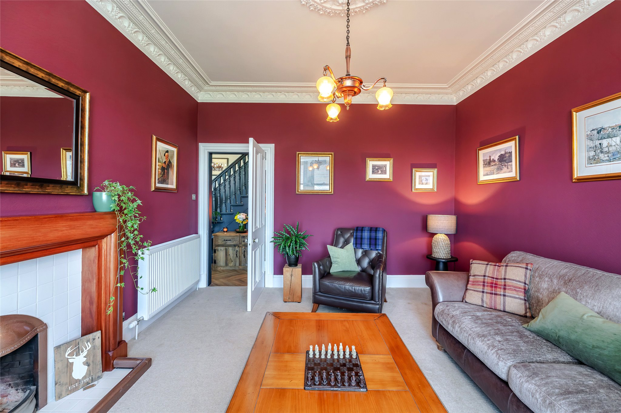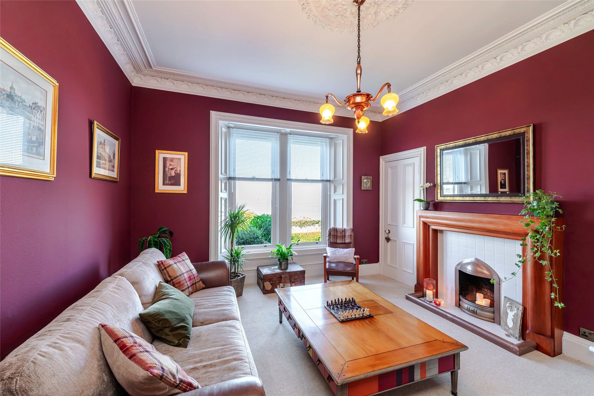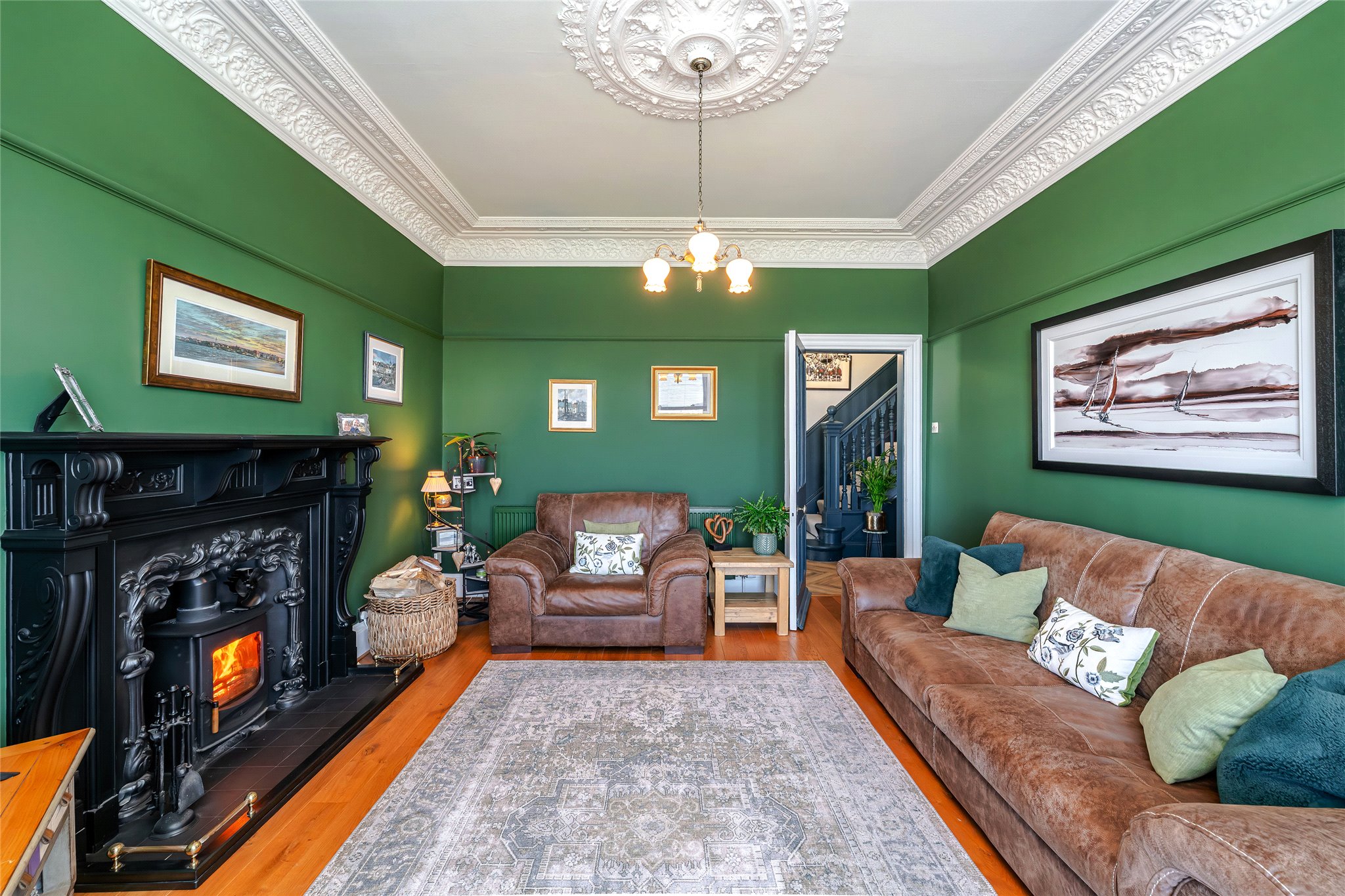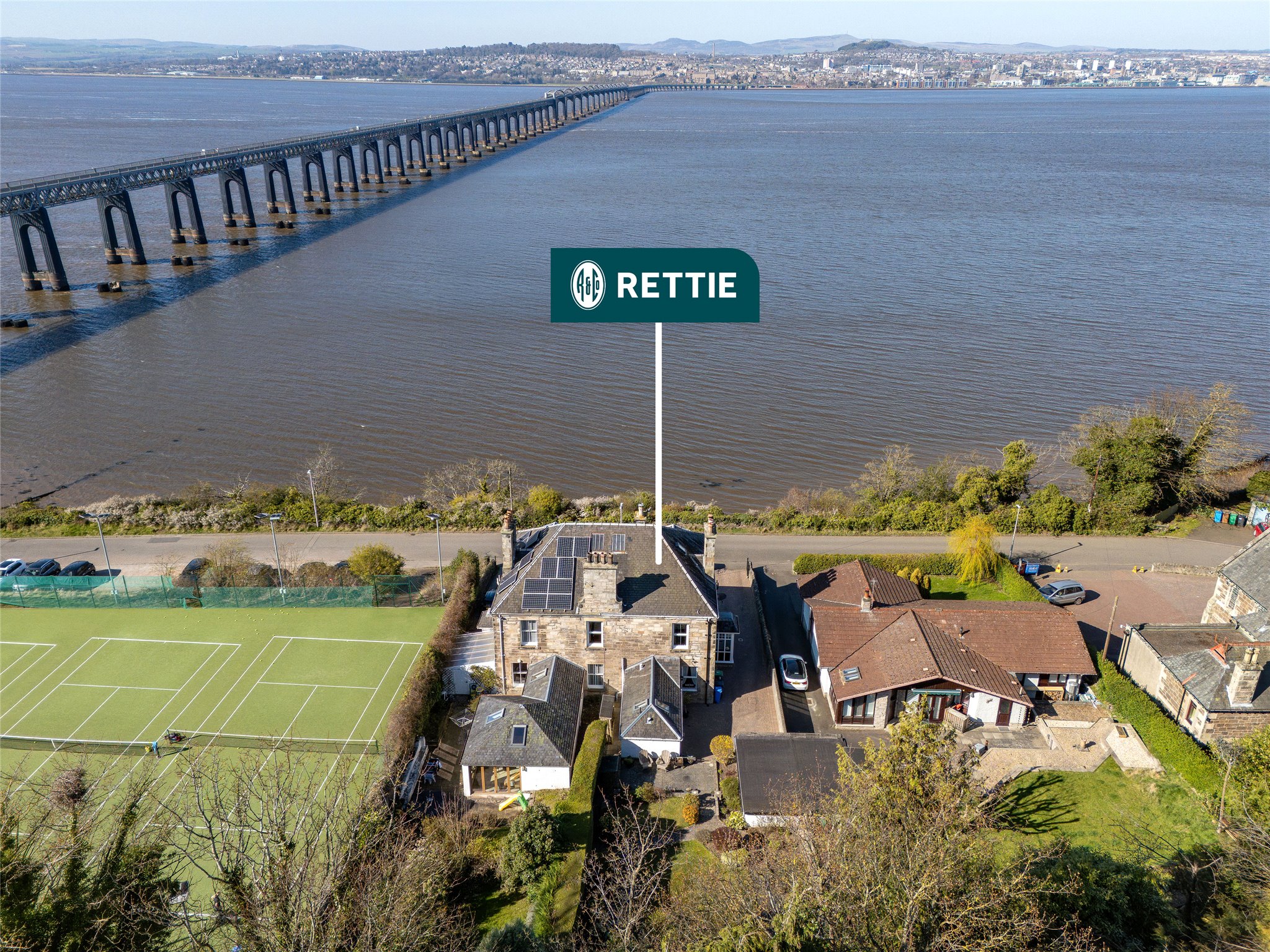 Occupying an enviable riverside setting in the peaceful village of Wormit on the banks of the River Tay, this four-bedroom semi-detached Victorian villa is beautifully presented and with its abundance of fine period details, sophisticated interior design, and high-quality finishes presents a rare and exceptional opportunity. A delightful river-facing garden, featuring a sloping lush lawn and meticulously manicured hedging, flanks the gated driveway and guides you to the front door. Stepping inside, you are welcomed by a bright vestibule with original mosaic floor tiling before a decorative glazed door opens into a welcoming hallway. Adorned with parquet flooring, deep blue wall finishes, and exquisite cornicing, a sense of timeless elegance is immediately apparent. To your right, the spectacular living room takes full advantage of breathtaking panoramic River Tay views through its grand bay windows creating an inviting setting for entertaining and relaxation. This beautifully decorated space exudes period charm, with handsome wooden flooring, a picture rail, intricate cornicing, a ceiling rose, and a magnificent ornate black mantelpiece housing a log-burning stove. Across the hallway, a dining room with a rear garden aspect offers a light and airy space for hosting or day-to-day living, complete with a built-in pantry for added convenience. Moving past a classically styled WC adorned with Burlington sanitaryware, you arrive at a bright east-facing kitchen with driveway and garden access. Boasting a stylish modern design that manages to blend with the traditions of the home, it features under-base-lit cabinetry in a rich blue, butcher block worktops, a double Belfast sink, and high-spec integrated appliances, including a five-ring gas hob, extractor hood, grill, and oven. Completing the ground floor layout is a generously proportioned carpeted double bedroom currently utilised as a second comfortable living room. With an outstanding River Tay aspect its twin windows flood the space with natural light and enhance the charming interior that includes cornicing, a ceiling rose, a built-in press, and feature fireplace with a tiled insert. Ascending the carpeted staircase, where the original banister and dado rail have been beautifully preserved, you reach a spacious landing. To your left, the breathtaking principal double bedroom commands stunning views across the River Tay from its expansive bay windows. Decorated in warm neutral tones, with plush carpeting, high ceilings, original cornicing, and a ceiling rose, this serene and luxurious retreat is the perfect sanctuary. The first floor is also home to two south-facing double bedrooms overlooking the rear garden along with a design-led rainfall shower room equipped with a towel radiator, washbasin built into an LED-lit wall-hung vanity, and WC set against soothing grey tones.