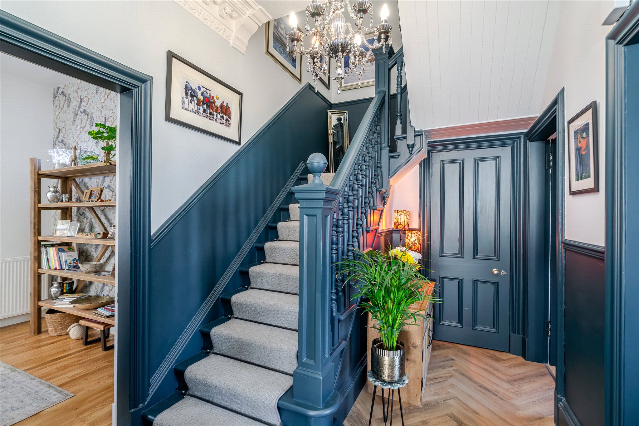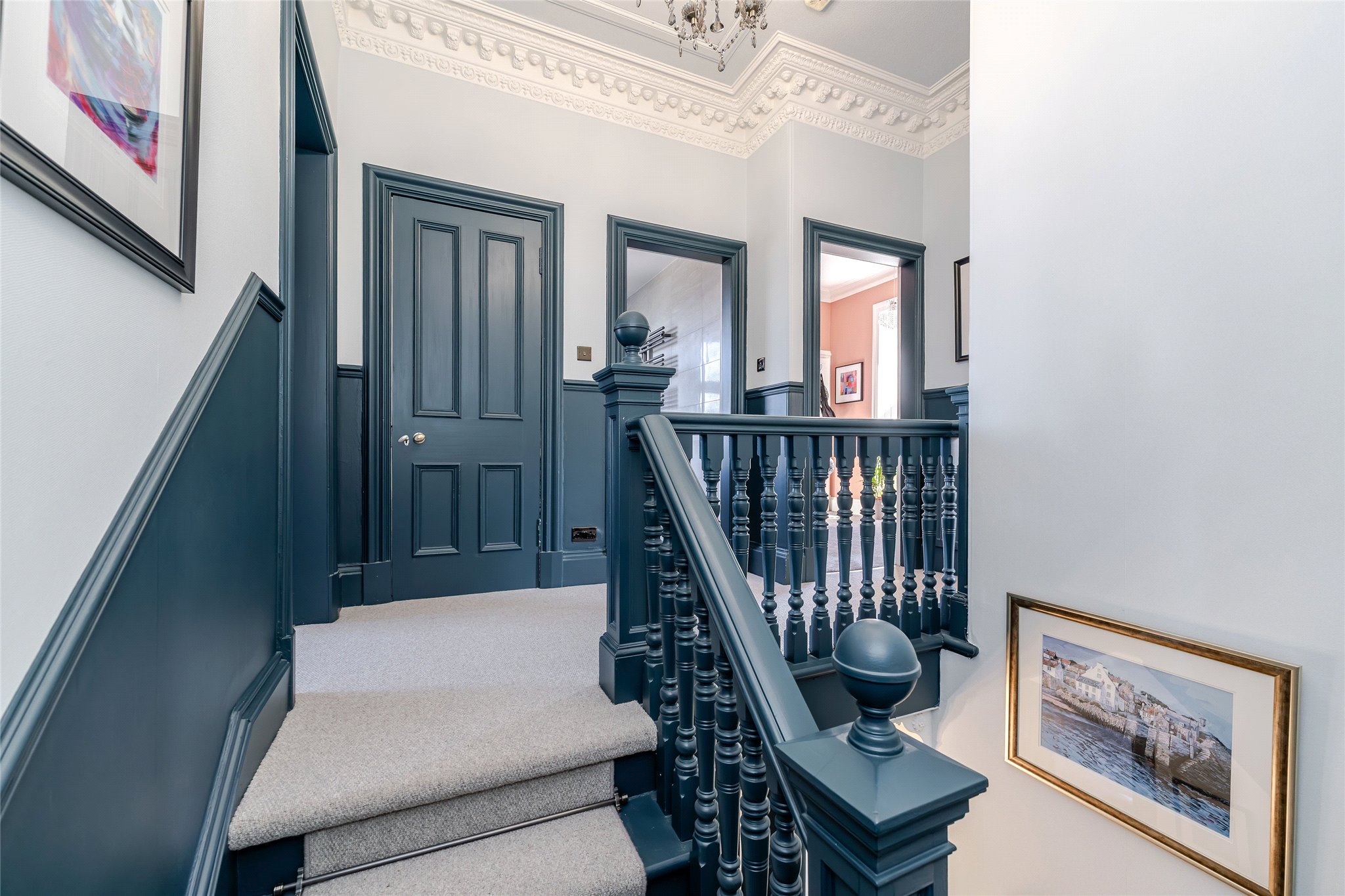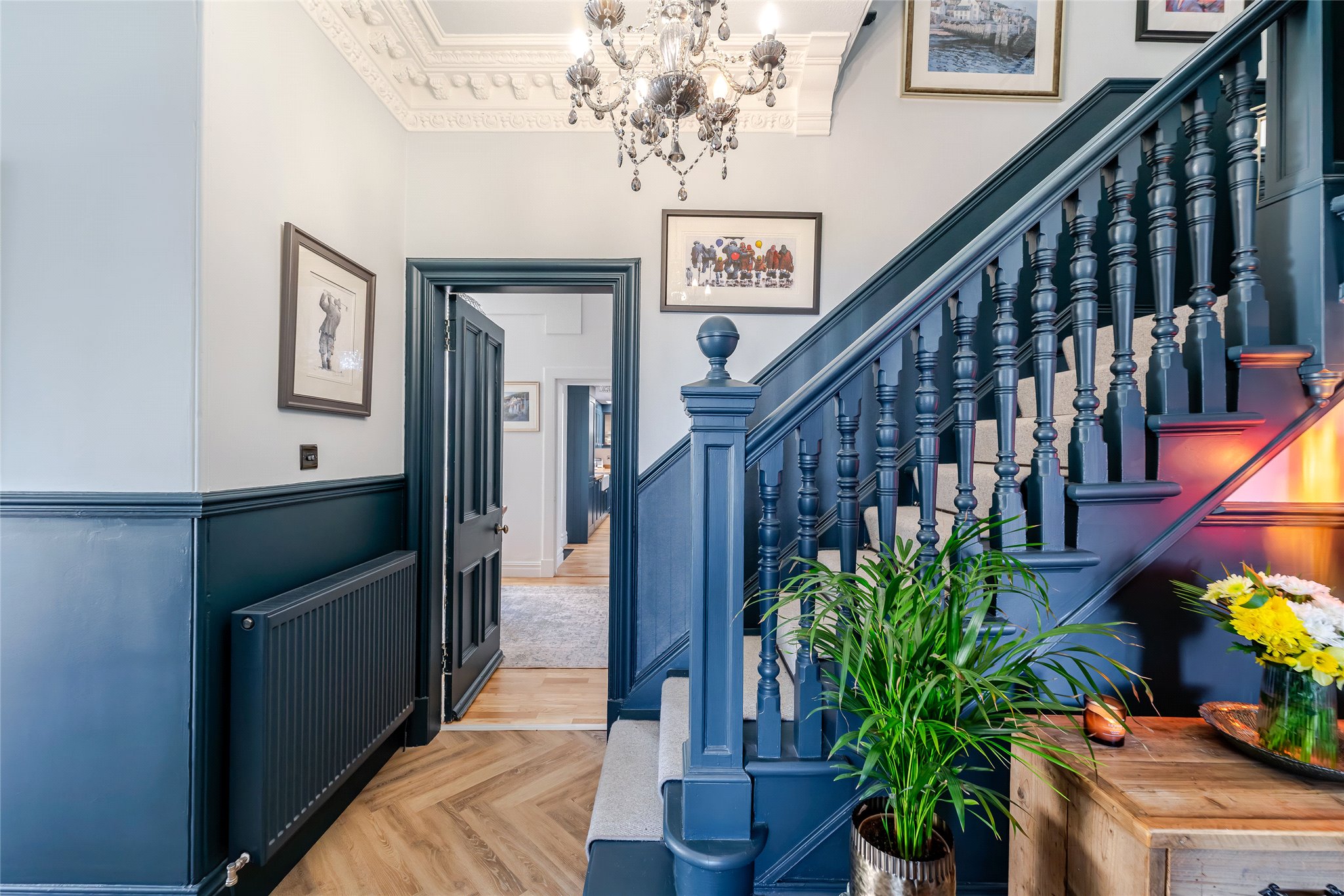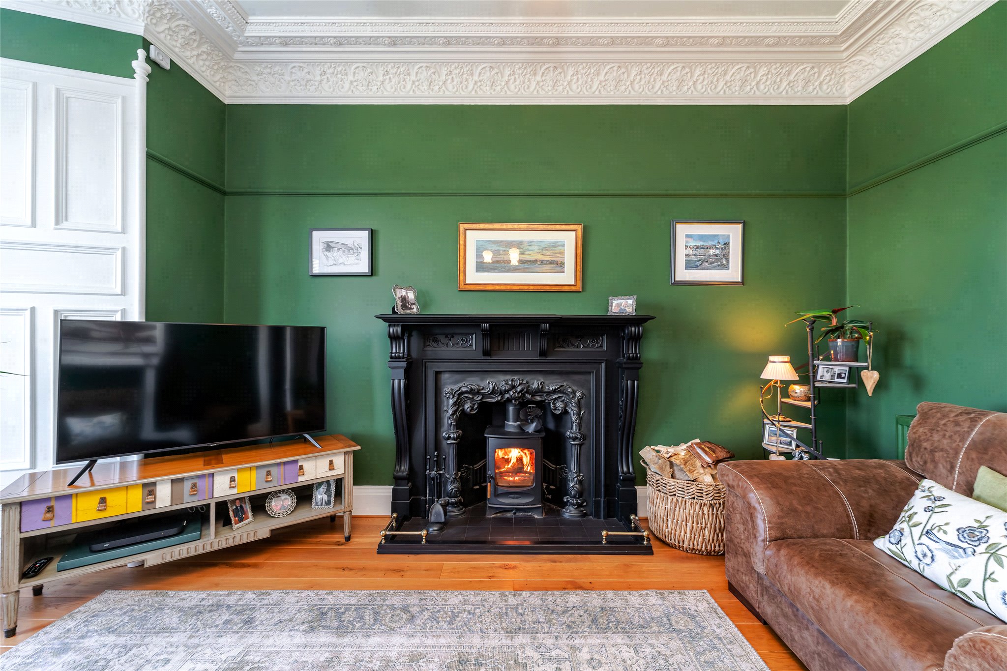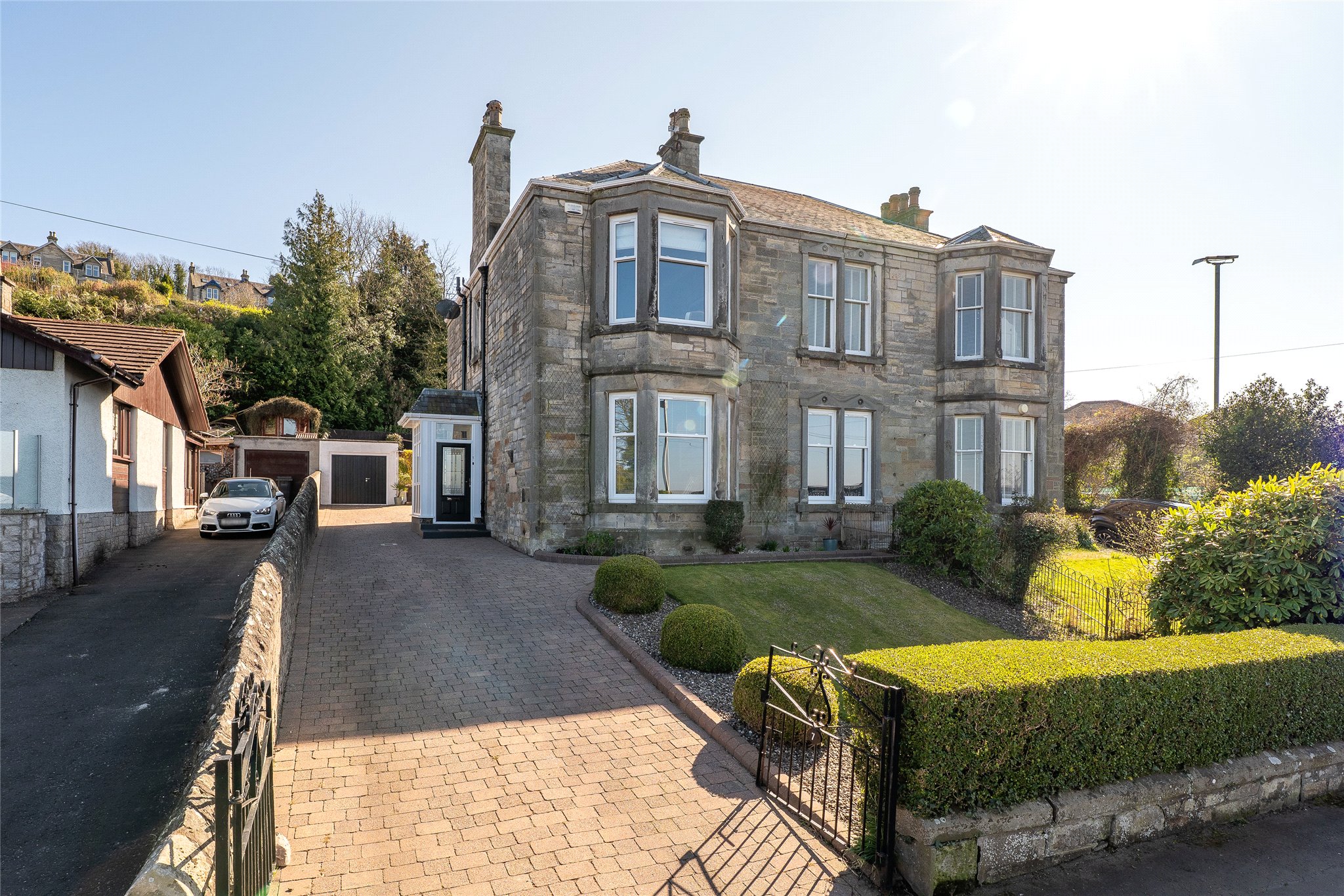 Occupying an enviable riverside setting in the peaceful village of Wormit on the banks of the River Tay, this four-bedroom semi-detached Victorian villa is beautifully presented and with its abundance of fine period details, sophisticated interior design, and high-quality finishes presents a rare and exceptional opportunity. A delightful river-facing garden, featuring a sloping lush lawn and meticulously manicured hedging, flanks the gated driveway and guides you to the front door. Stepping inside, you are welcomed by a bright vestibule with original mosaic floor tiling before a decorative glazed door opens into a welcoming hallway. Adorned with parquet flooring, deep blue wall finishes, and exquisite cornicing, a sense of timeless elegance is immediately apparent. To your right, the spectacular living room takes full advantage of breathtaking panoramic River Tay views through its grand bay windows creating an inviting setting for entertaining and relaxation. This beautifully decorated space exudes period charm, with handsome wooden flooring, a picture rail, intricate cornicing, a ceiling rose, and a magnificent ornate black mantelpiece housing a log-burning stove. Across the hallway, a dining room with a rear garden aspect offers a light and airy space for hosting or day-to-day living, complete with a built-in pantry for added convenience. Moving past a classically styled WC adorned with Burlington sanitaryware, you arrive at a bright east-facing kitchen with driveway and garden access. Boasting a stylish modern design that manages to blend with the traditions of the home, it features under-base-lit cabinetry in a rich blue, butcher block worktops, a double Belfast sink, and high-spec integrated appliances, including a five-ring gas hob, extractor hood, grill, and oven. Completing the ground floor layout is a generously proportioned carpeted double bedroom currently utilised as a second comfortable living room. With an outstanding River Tay aspect its twin windows flood the space with natural light and enhance the charming interior that includes cornicing, a ceiling rose, a built-in press, and feature fireplace with a tiled insert. Ascending the carpeted staircase, where the original banister and dado rail have been beautifully preserved, you reach a spacious landing. To your left, the breathtaking principal double bedroom commands stunning views across the River Tay from its expansive bay windows. Decorated in warm neutral tones, with plush carpeting, high ceilings, original cornicing, and a ceiling rose, this serene and luxurious retreat is the perfect sanctuary. The first floor is also home to two south-facing double bedrooms overlooking the rear garden along with a design-led rainfall shower room equipped with a towel radiator, washbasin built into an LED-lit wall-hung vanity, and WC set against soothing grey tones.