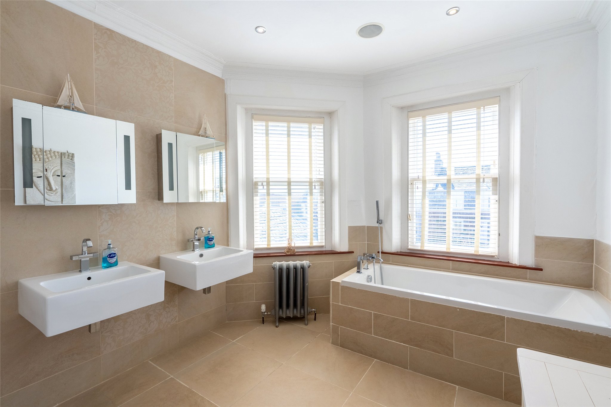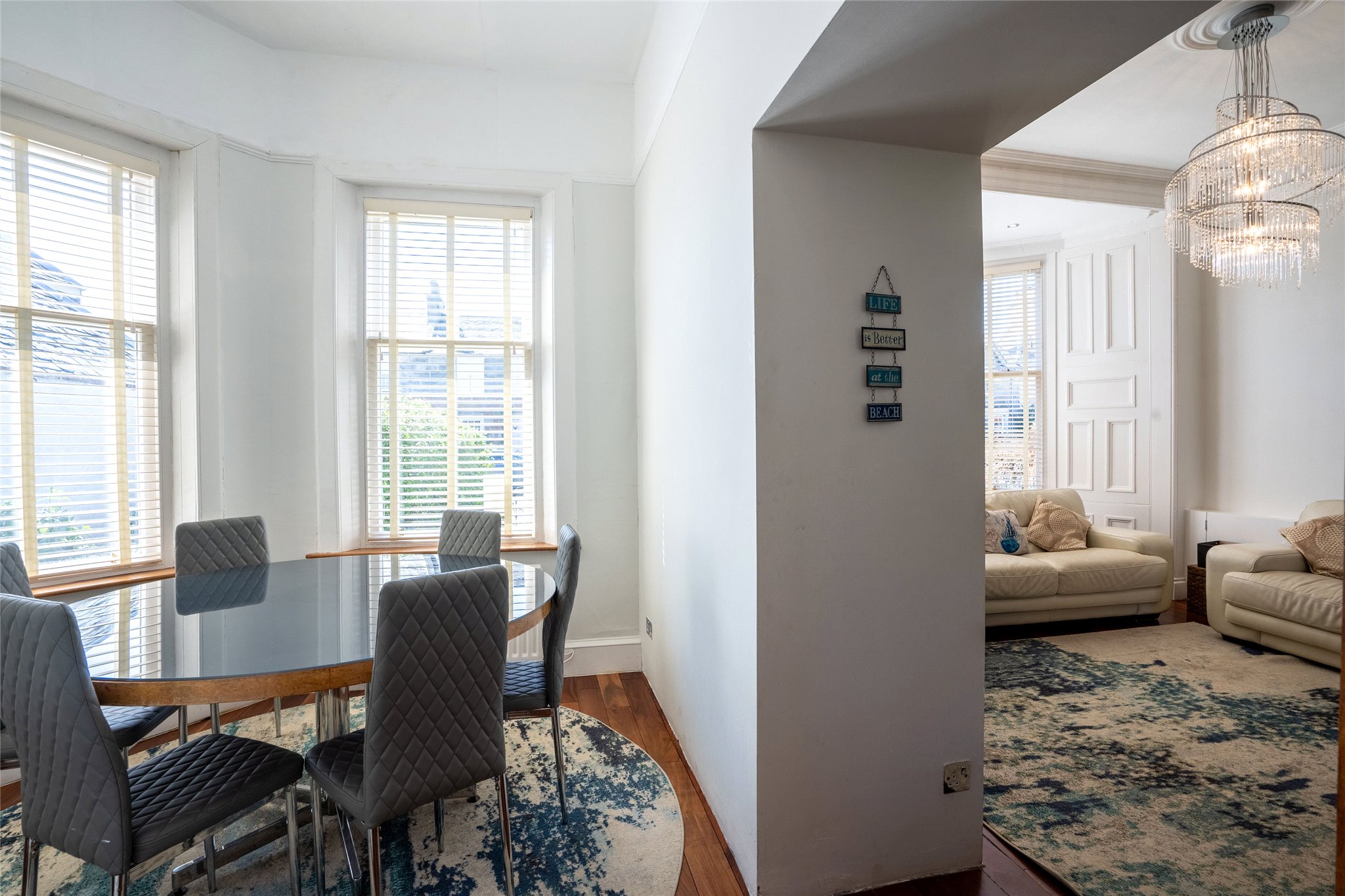 Minutes from Elie Beach, this rarely available three-bedroom semi-detached C-listed Victorian villa with a two-bedroom garden cottage is presented in immaculate condition, characterised by its elegant interiors, high-spec finishes, and exceptional attention to detail. Flowing seamlessly from the hallway, this outstanding home opens into an elegant west-facing dining room before revealing a stunning open-plan sitting area and kitchen. Spanning the full width of the property, it enjoys an enviable dual aspect, east and west, with French doors leading directly from the kitchen to the garden. Overlooking the street-facing enclosed garden, the west-facing sitting area is framed by bay windows with shutters and features a soft neutral décor, a wall-mounted fireplace, and a sense of understated sophistication. The sleek, modern kitchen separated from the sitting area by a one-wall island/breakfast bar, boasts cream cabinetry, polished black worktops and splashback, and high-spec integrated appliances including a stainless-steel range cooker, American-style fridge/freezer, extractor hood, and wine fridge. The kitchen includes an Insinkerator instant hot water tap. Thoughtfully designed with space for dining, it is at the heart of the home. Also on the ground floor is a spacious, light-filled double bedroom with a luxurious en-suite rainfall shower room featuring LED lighting, a hidden cistern WC, and a washbasin built into vanity. Upstairs, two generously proportioned and tastefully decorated double bedrooms enjoy east and west-facing aspects, each complemented by its own luxurious ensuite. One features an indulgent, spa-like design with Jack and Jill washbasins, a deep bathtub, walk-in shower, and WC, while the other boasts a well-appointed shower room, providing both style and convenience. Situated within the garden, the impressive Garden Cottage offers excellent flexibility, ideal for older children, extended family, or as an investment opportunity. It features an open-plan reception area and L-shaped kitchen with gloss cream units, wood-effect worktops, and integrated appliances including a hob, oven, and extractor hood. The kitchen also includes an Insinkerator instant hot water tap. Two comfortable double bedrooms, including one with west-facing French doors to the garden and an en-suite, are complemented by a family bathroom.
