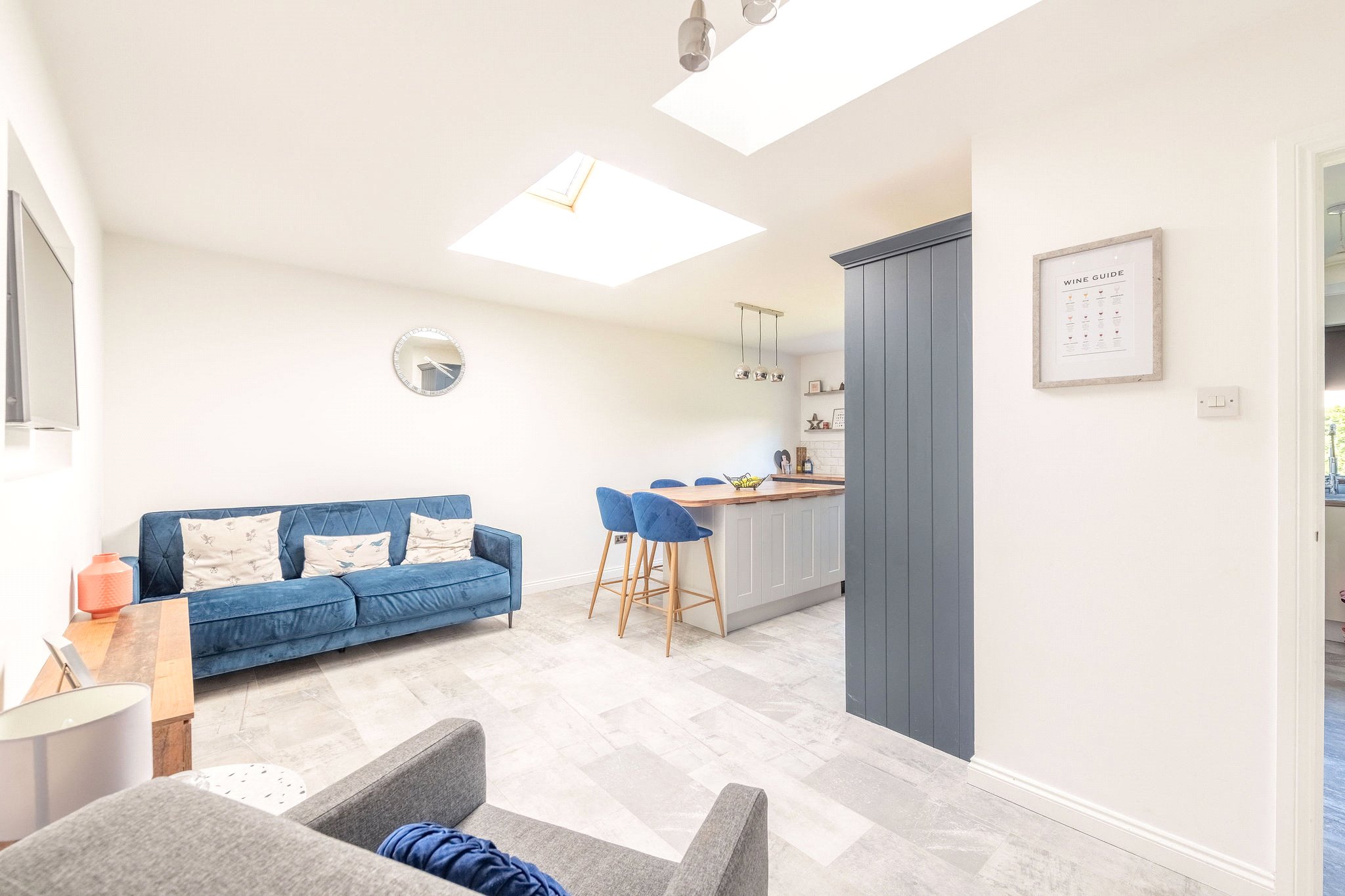 Entrance hallway, living dining room, kitchen, utility, three bedrooms, bathroom, gym