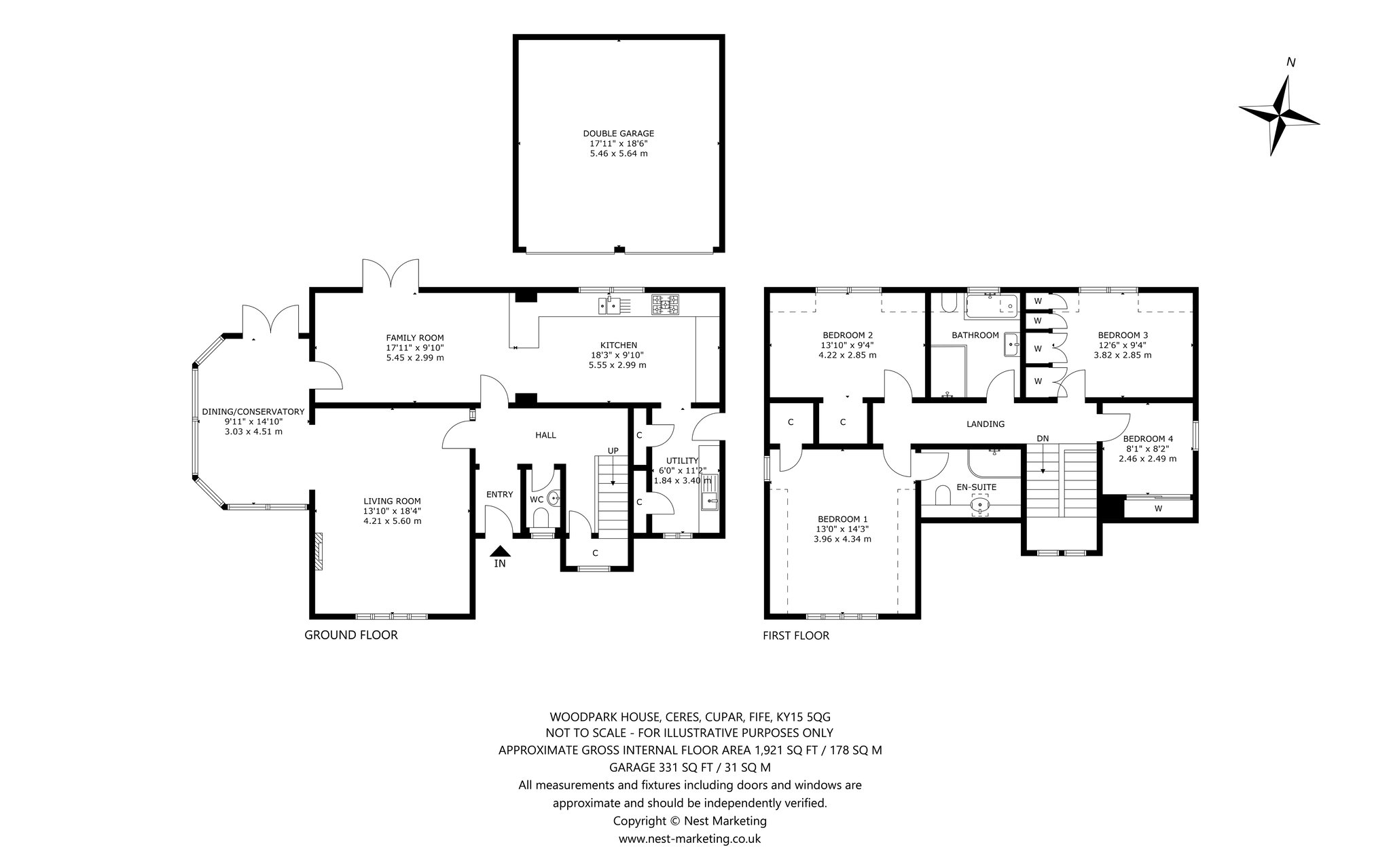 Nestled in the charming village of Ceres only a few miles from St Andrews, Woodpark House is an exceptional four-bedroom residence defined by its sophisticated interior design, meticulous attention to detail, and generous light-filled layout. A gated driveway leading to a detached double garage ushers you to a welcoming entrance porch. From here you step into a beautifully presented hallway that exudes timeless charm, enhanced by chic grey wall finishes, wooden flooring, and elegant decorative detailing. To the left, a stunning south-facing living room invites you in. Boasting polished wooden flooring, intricate cornicing, and an original cast iron fireplace with a decorative tiled insert, this space blends elegance with warmth and comfort. Flowing seamlessly from the living room is a bay-windowed dining room/conservatory that enjoys sweeping westerly views of the garden and direct access. This effortless connection between indoors and outdoors makes it an ideal setting for entertaining in every season. The heart of the home lies in the spectacular open-plan kitchen and family room, where French door open onto the rear garden. Sleek and contemporary, the bespoke kitchen with ample space for dining features gloss black cabinetry, polished grey quartz worktops, and high-spec integrated appliances including a five-ring gas hob, extractor hood, eye-level oven and grill. A breakfast bar adds practicality and style, while an adjacent, well-equipped utility room keeps the space effortlessly organised. A guest WC completes the ground floor. Upstairs, the south-facing principal double bedroom is light-filled and tranquil, enhanced by plush carpeting, built-in storage, and elevated views across the garden and surrounding countryside. It benefits from a luxurious, fully tiled en-suite shower room with a hidden cistern WC and washbasin built into vanity. Three further well-presented double bedrooms offer versatility, with one currently styled as a bright home office. They share access to a contemporary family bathroom featuring a bath, separate shower enclosure, washbasin built into a wall-hung vanity, and a hidden cistern wall-hung WC.