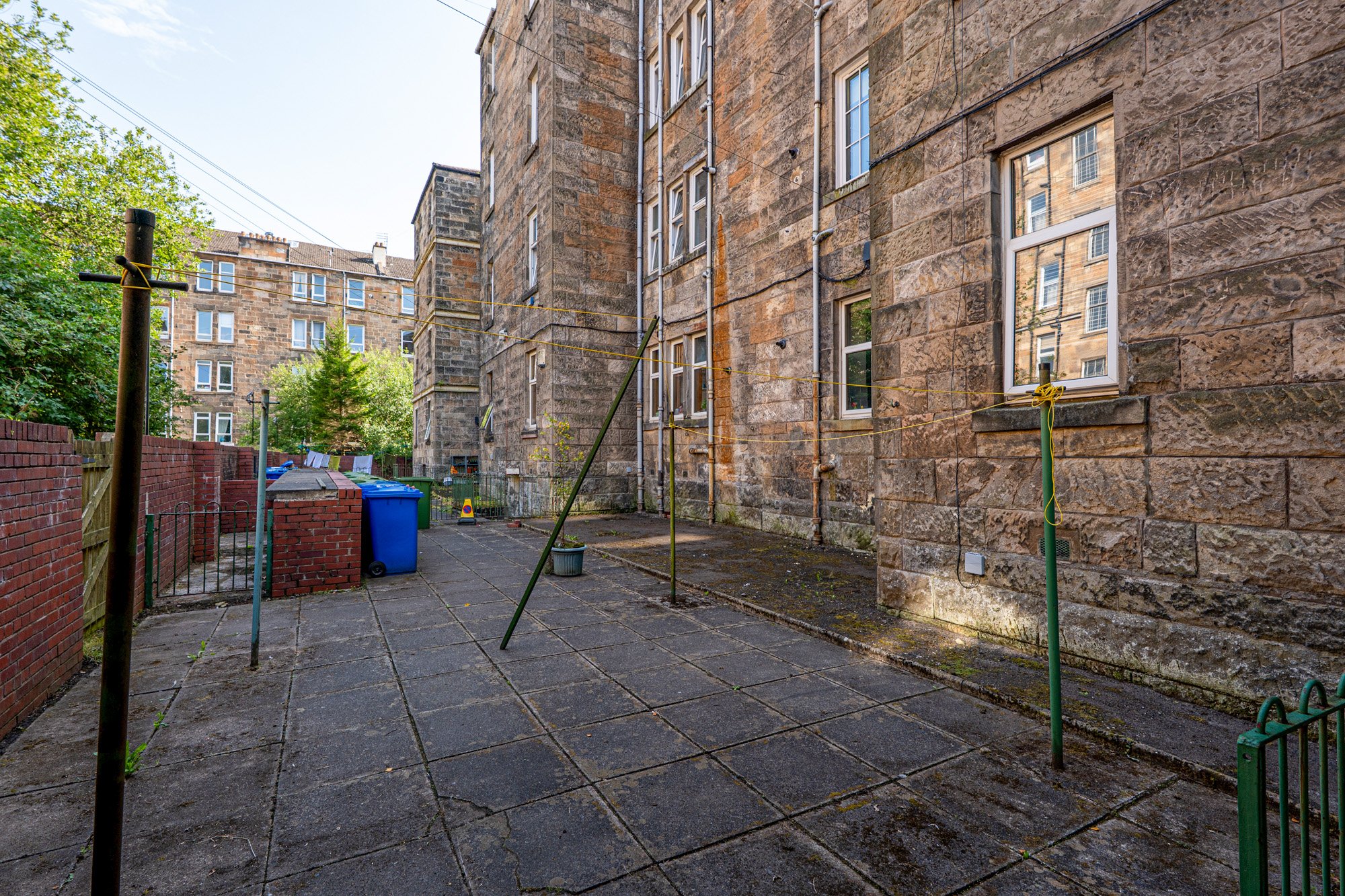 This red sandstone tenement building is accessed via secure door entry system into a well-kept communal close and stairwell, where the flat is accessed on the second floor.