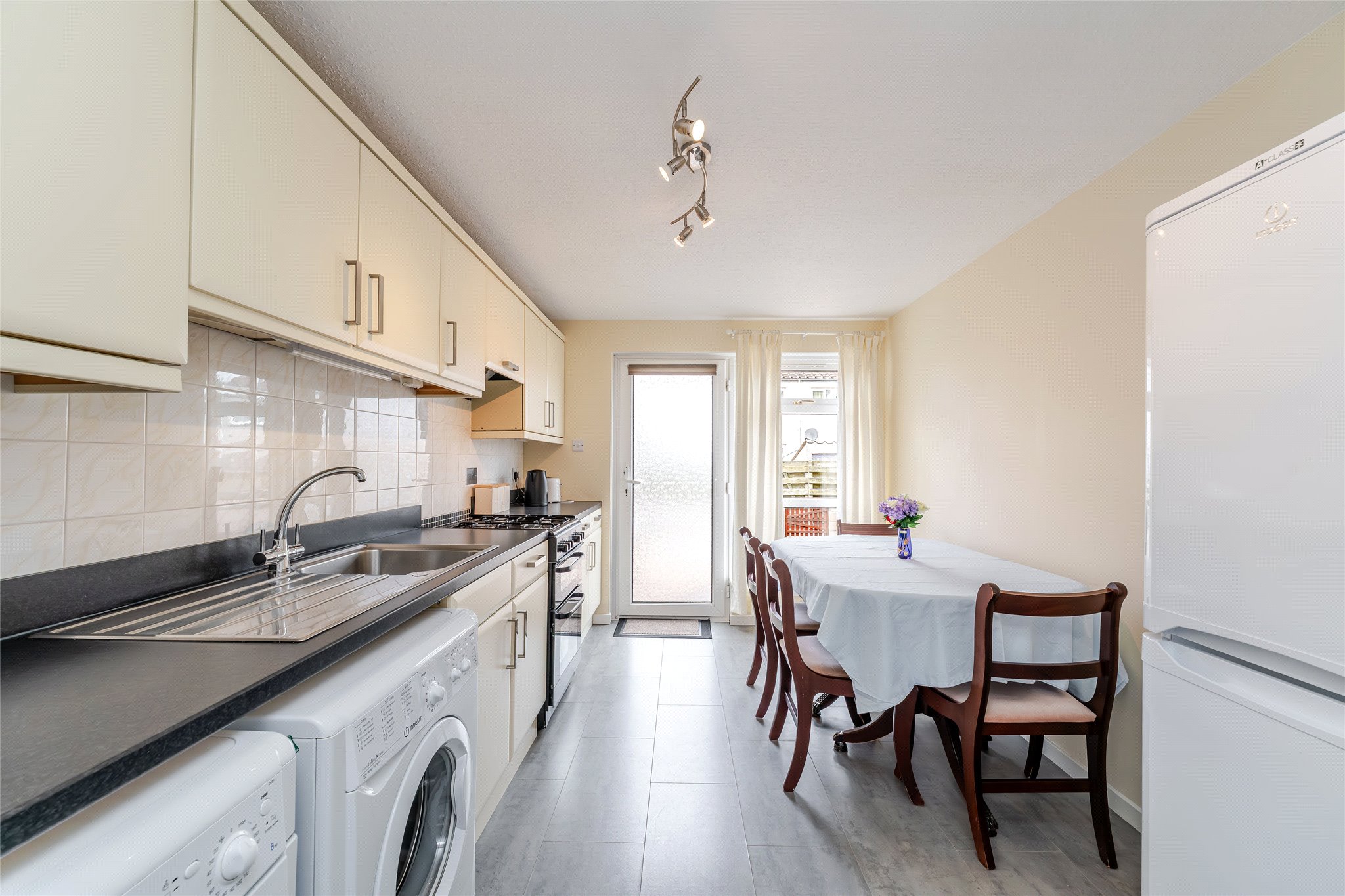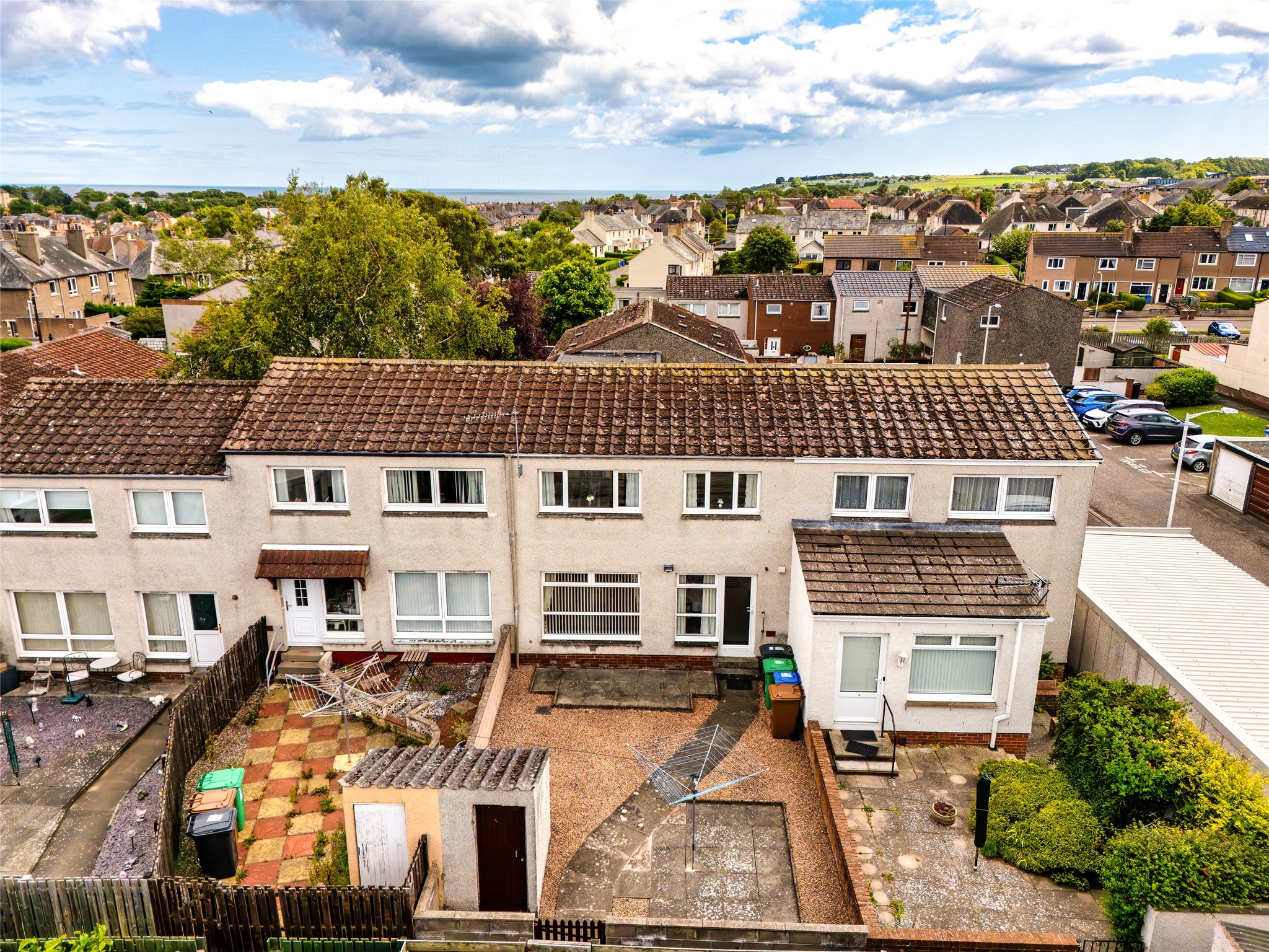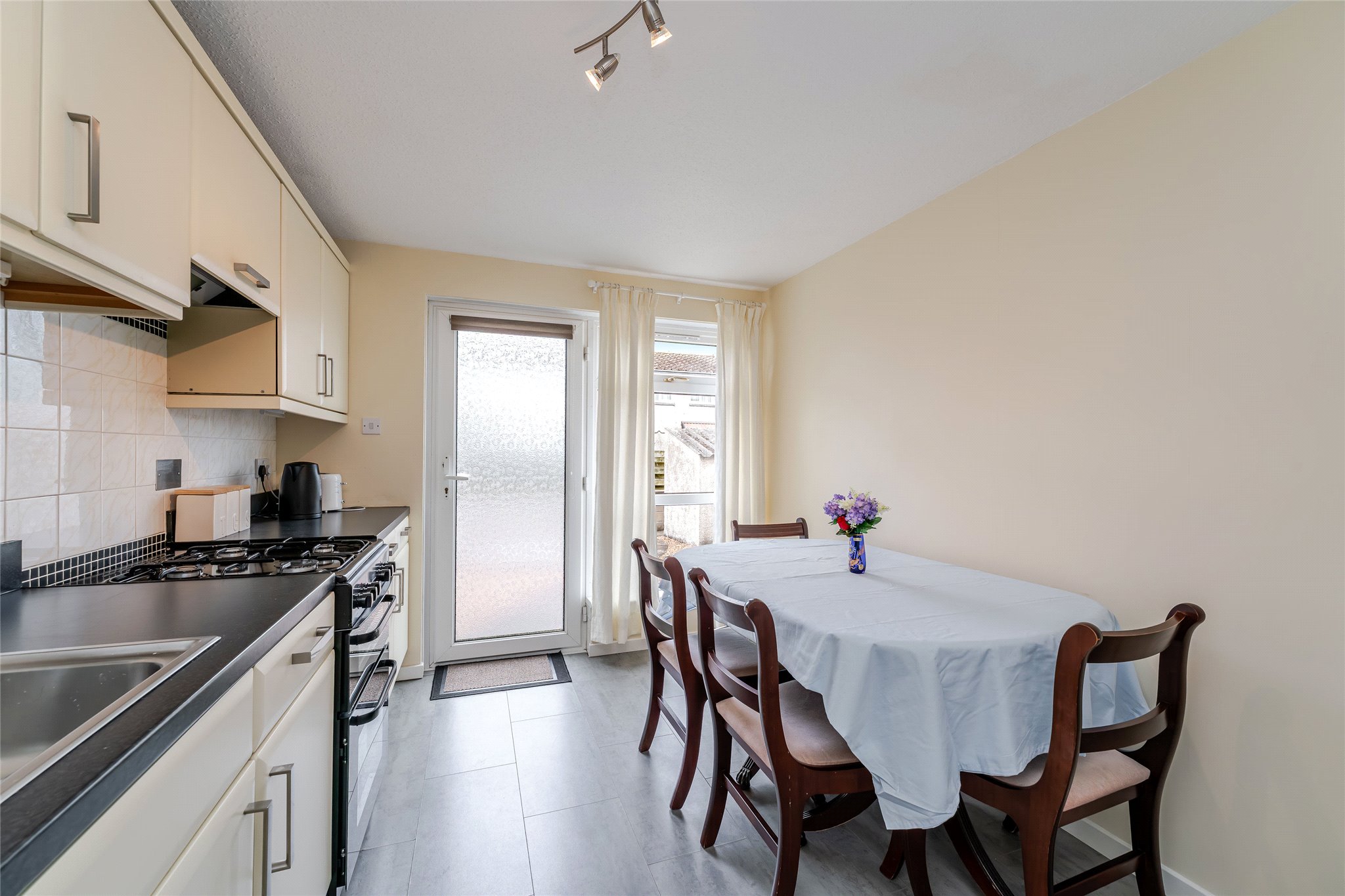Forming two floors of a mid-terrace property and close to the heart of St Andrews along with local amenities and schooling, this well-presented and deceptively spacious three-bedroom terrace home with a private garden will appeal to a variety of buyers. From the ground floor carpeted hallway equipped with built-in storage, you move into a light-filled west-facing living room overlooking the rear garden. Generously proportioned, the layout allows for a versatile and comfortable furniture configuration and it also benefits from a large walk-in-cupboard. Across the hallway, a spacious and bright dining kitchen enjoys the same orientation along with access to the garden. Modern in design, the one-wall kitchen features cream wall and floor units, black worktops, and a white tiled splashback, with ample space for freestanding appliances. On the first floor, the west-facing principal double bedroom showcasing wooden flooring, neutral wall finishes, and built-in wardrobes exudes a light and airy ambience. Mirroring the same interior design, the additional two double bedrooms are inviting and comfortable. Each shares access to a well-appointed shower room complete with a WC, washbasin built into vanity, and chrome towel radiator, along with a separate WC.