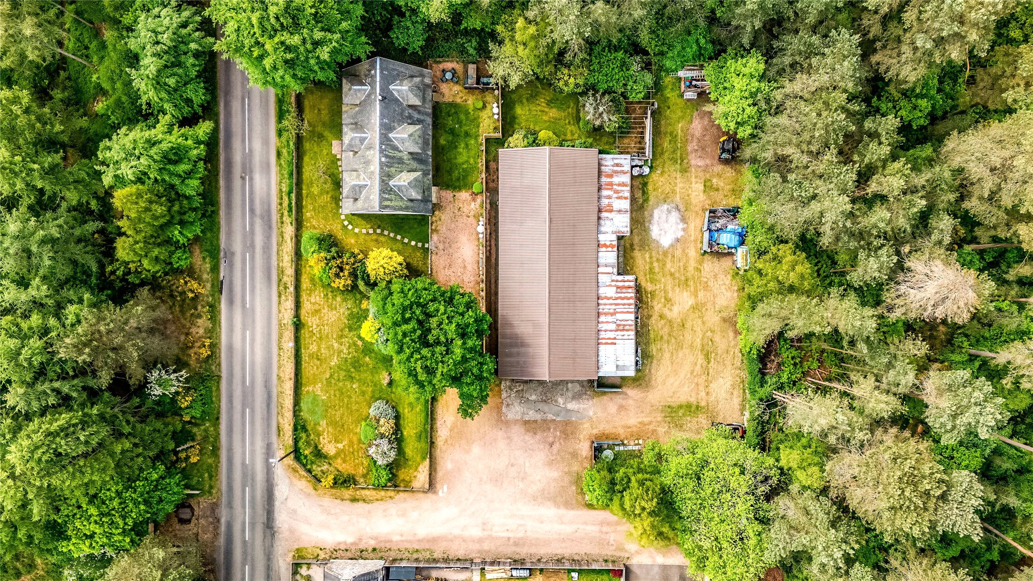 May be purchased as a whole or in two lots: lot 1 house/lot 2 workshop and ground