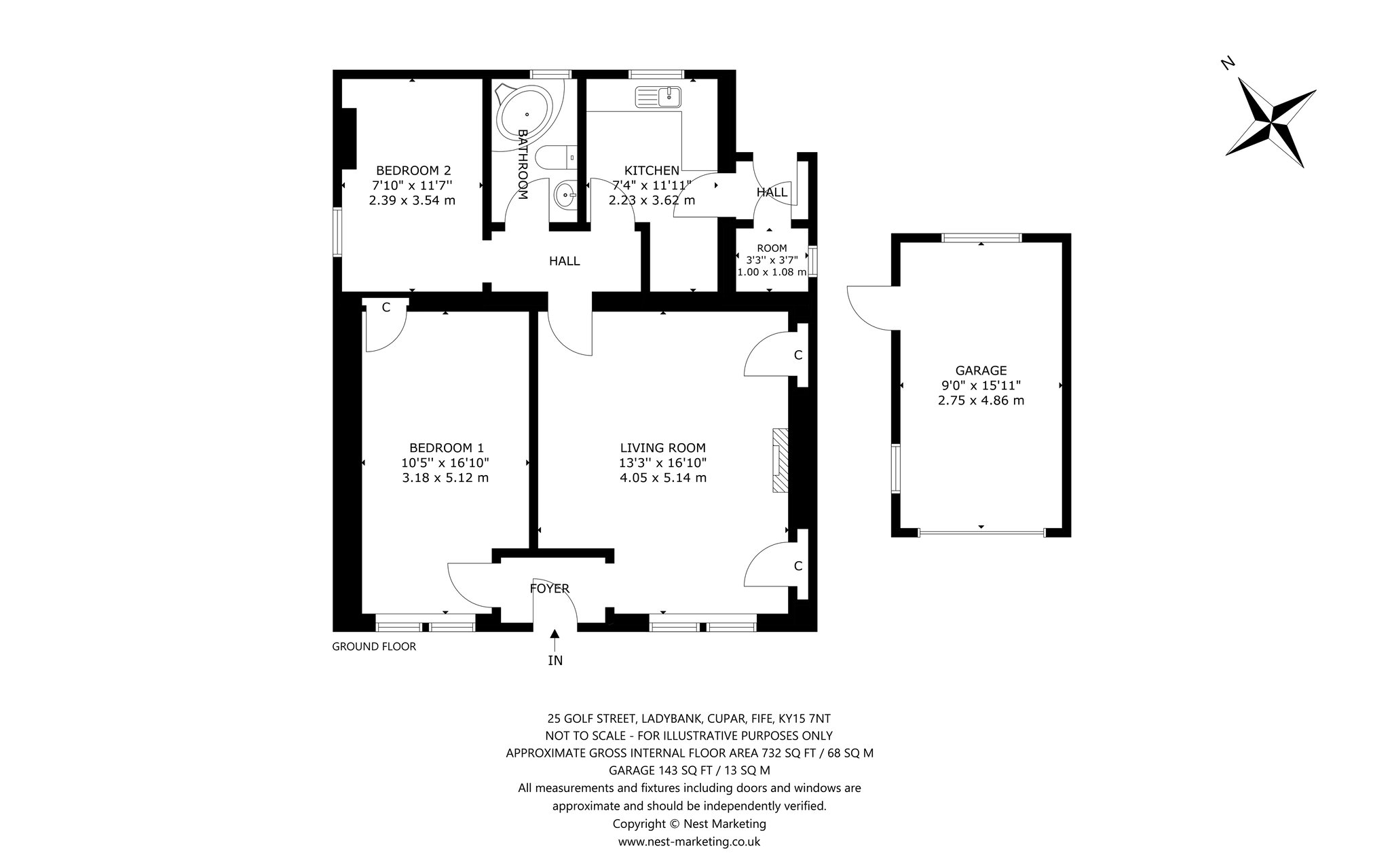 Quietly positioned in the small village of Ladybank, this two-bedroom semi-detached property enjoys a well-presented interior design alongside bright, and spacious accommodation, ideal for first-time buyers or investors. A mainly lawned south-west enclosed garden ushers you to the front door and into a welcoming entrance foyer. To your right, the light-filled south-west-facing living room exudes a warm ambience with plush carpeting, stylish wall finishes, and an open fireplace. With twin windows overlooking the front garden, it's a delightful space for friends and family to unwind. Directly accessed from the living room via an internal hallway, a well-appointed contemporary kitchen features white wall and floor units, complementary worktops, a chic brick-effect splashback, and ample space for freestanding appliances. From here, you can access a useful store cupboard and the rear garden. The two generously proportioned, bright and comfortable carpeted double bedrooms share access to a bathroom featuring a corner bath, washbasin built into vanity, and WC.