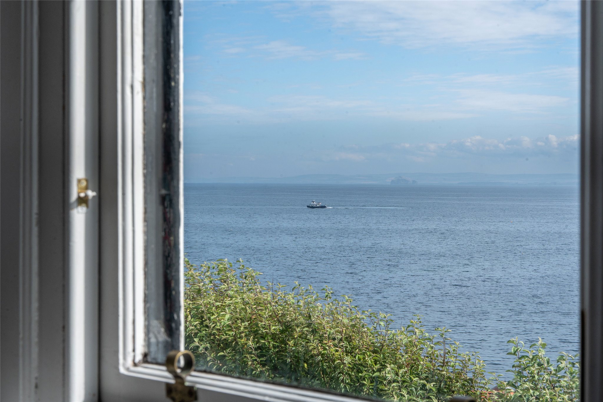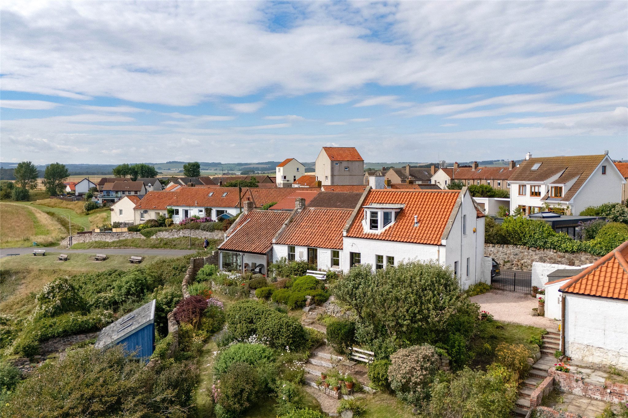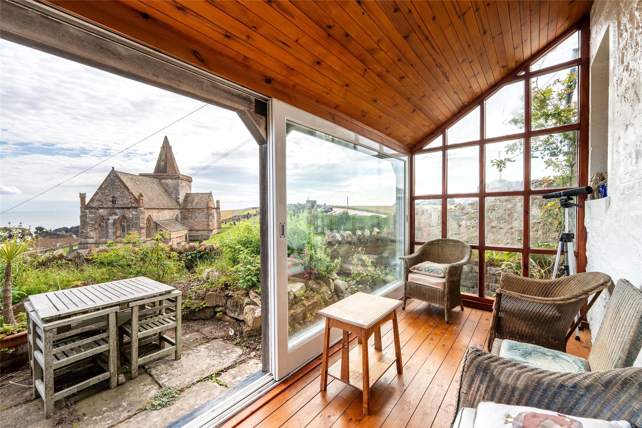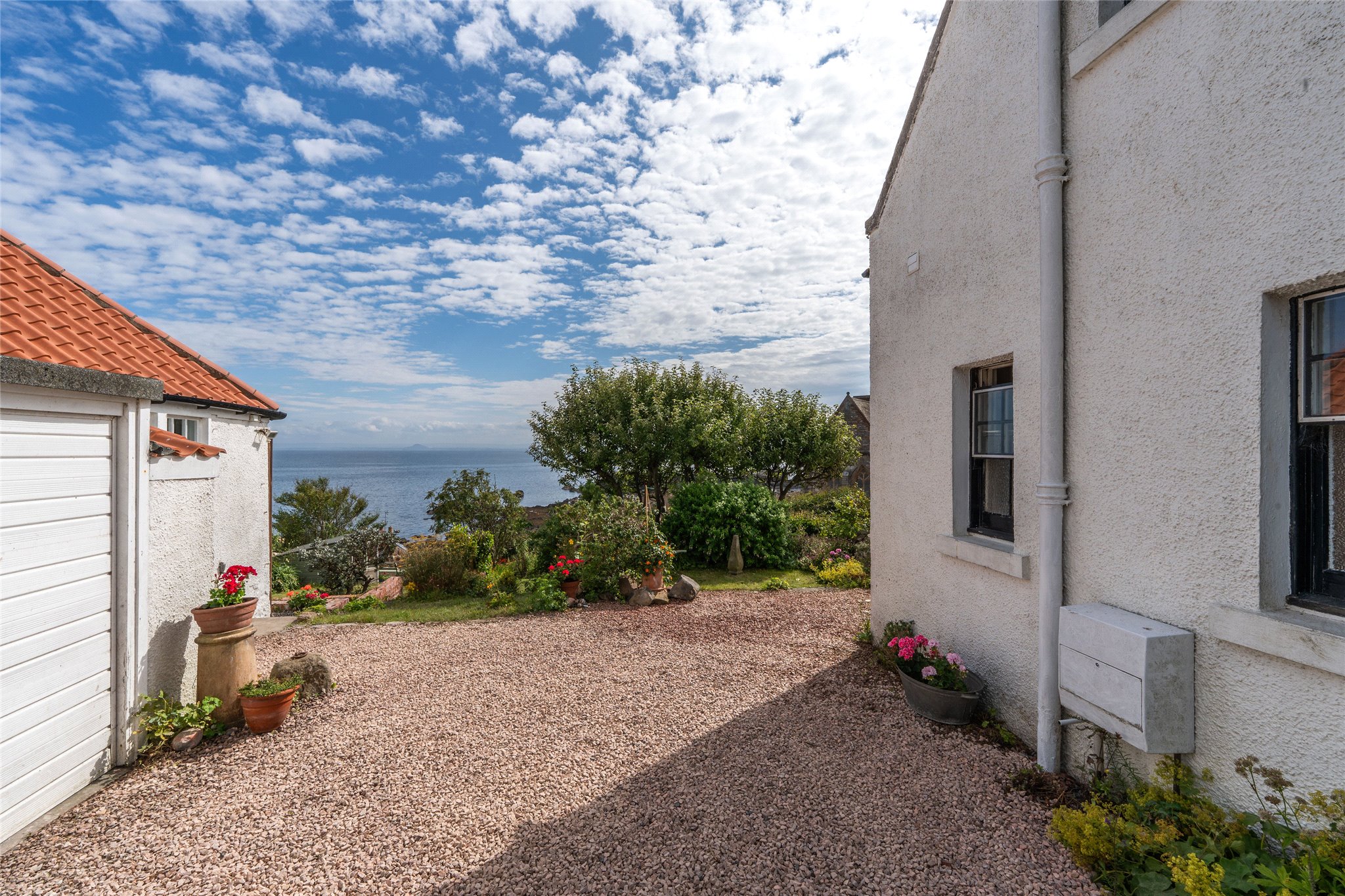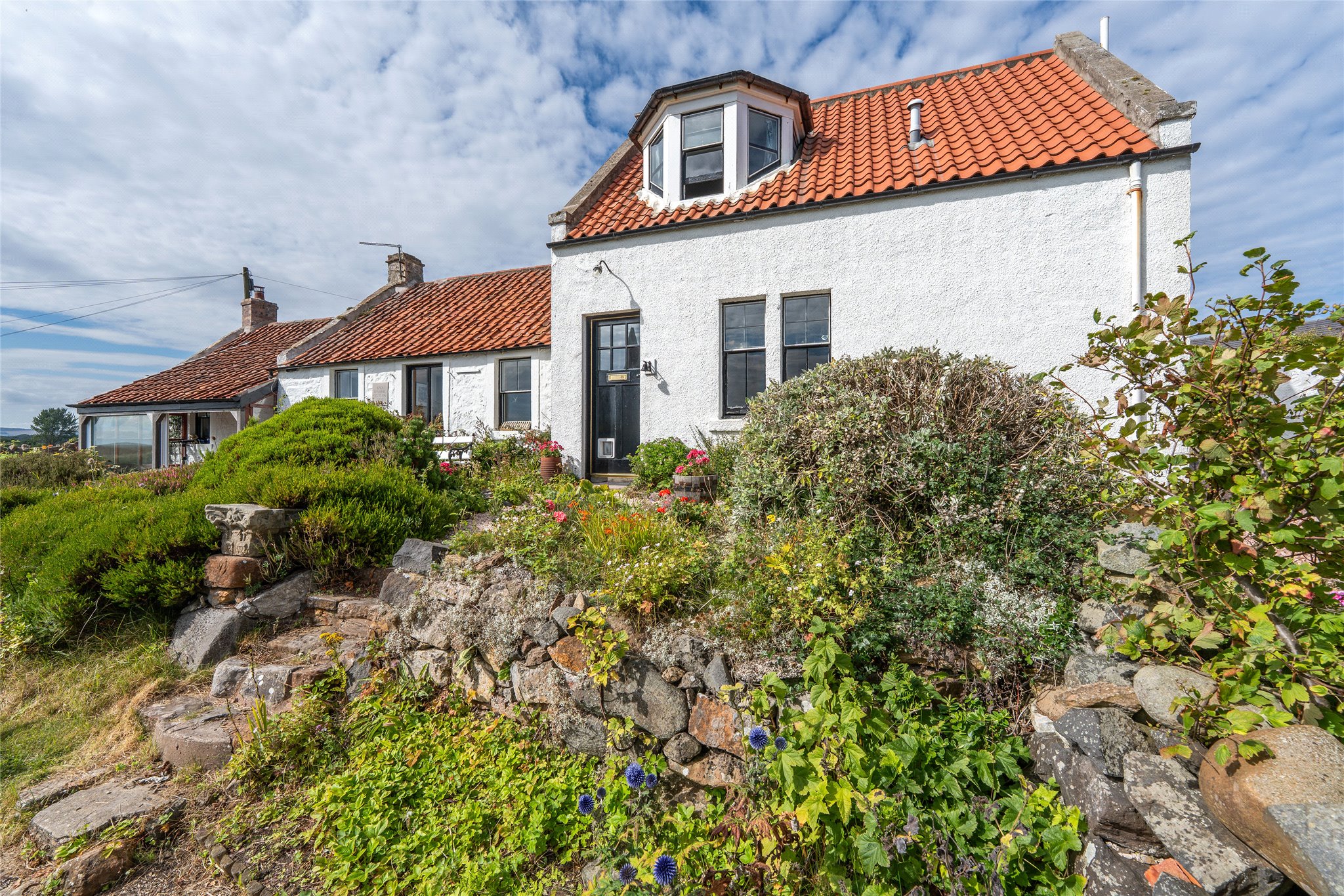 Once the home and studio of renowned artist Eugen Dekkert, famed for his landscapes and coastal scenes, this enchanting and rarely available three-bedroom residence, dating back to 1792, boasts beautiful gardens and breathtaking views over the Firth of Forth and towards the iconic St Monans Auld Kirk. From the whitewashed façade, a welcoming, carpeted hallway equipped with built-in storage leads to a versatile, spacious, and tastefully decorated formal dining room bathed in natural light from twin windows offering a wonderful outlook. Moving into the inner hallway, you pass a light and airy double bedroom overlooking the garden and St Monans Auld Kirk before arriving at a warm and welcoming skylit living room, which once served as the studio of Eugen Dekkert. Full of character, this space features handsome wooden flooring, original wood panelling, built-in shelving, and a striking period fireplace set within a white mantle and tiled insert. Adjoining the living room, a beautifully bright sunroom enjoys panoramic views of the Firth of Forth and St Monans Auld Kirk. With expansive sliding doors opening onto the garden, this is an exceptional spot for relaxing and taking in the surrounding landscape. Lying at the opposite end of the ground floor, the spacious kitchen also enjoys a captivating aspect. Rustic yet modern in style, it features shaker-style cabinetry, illuminated worktops, and a mosaic-tiled splashback. Integrated appliances include a full-sized fridge/freezer, a fitted dishwasher, an oven, hob, and extractor, with space for casual dining for two. The ground floor also benefits from a convenient guest WC and a stylish, fully tiled shower room with contemporary fittings including a WC and washbasin. Upstairs, two comfortable and well-appointed carpeted bedrooms await, a double and single. The principal double bedroom with built-in storage is a serene retreat, perfectly positioned to take in sweeping, uninterrupted views of the Firth of Forth.
