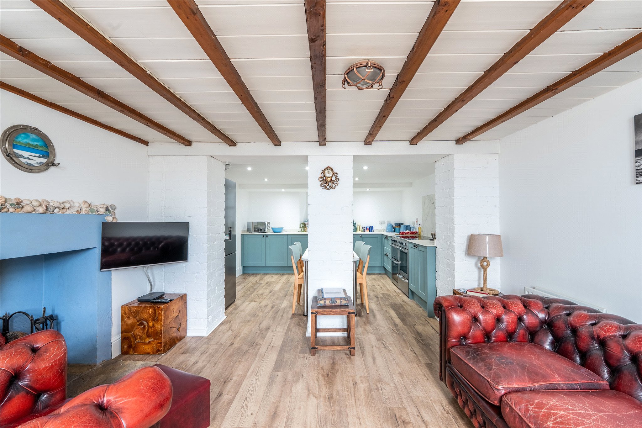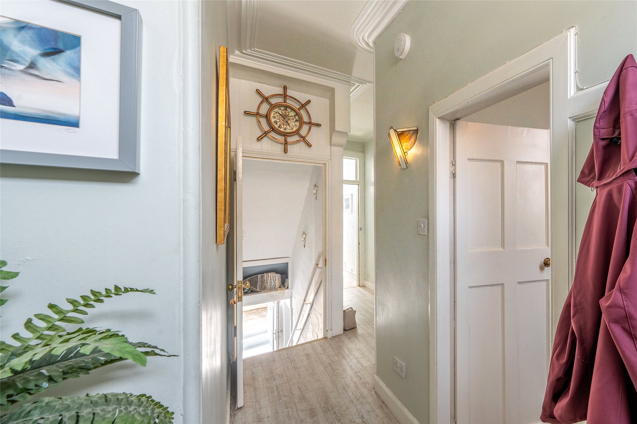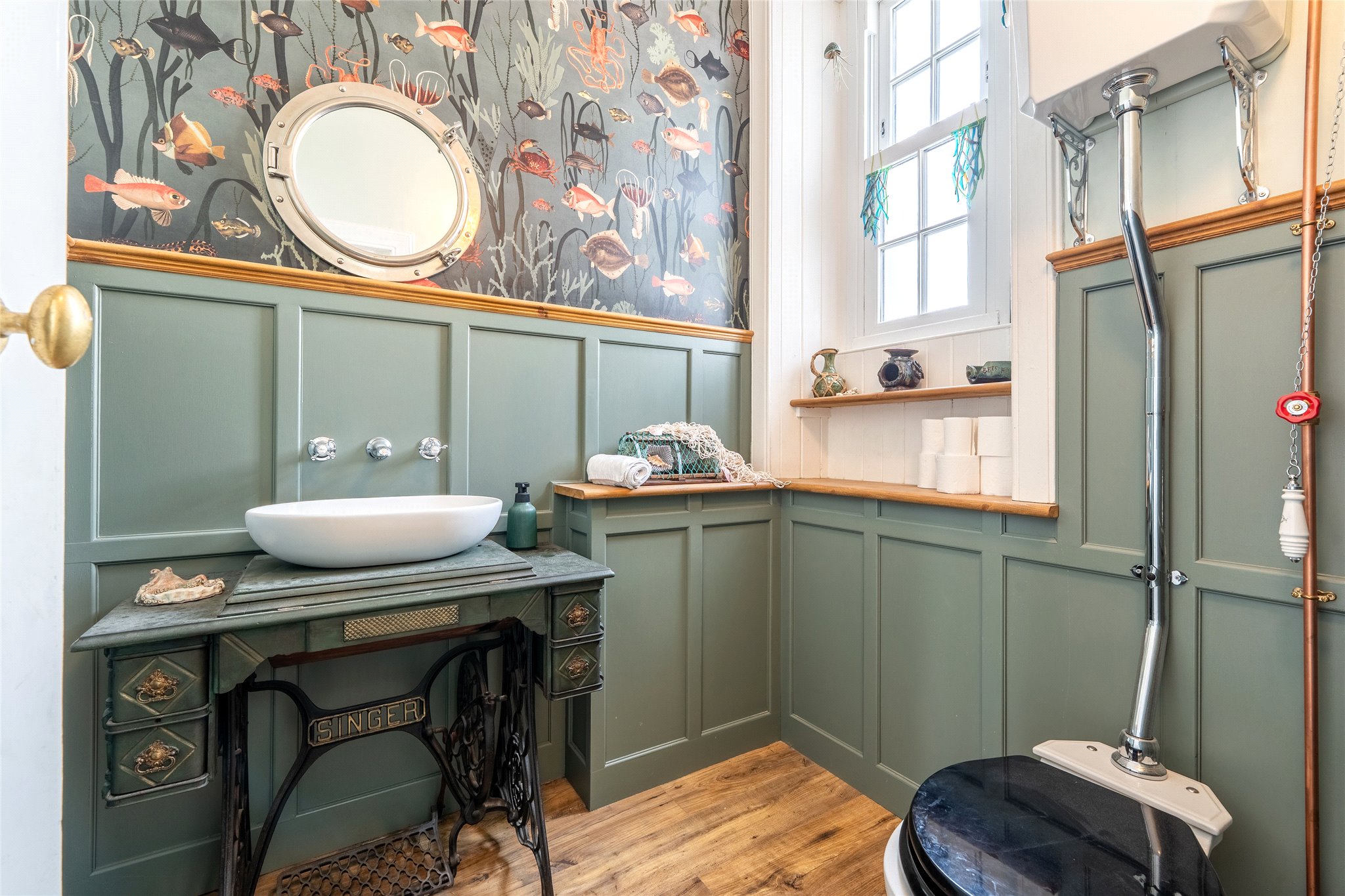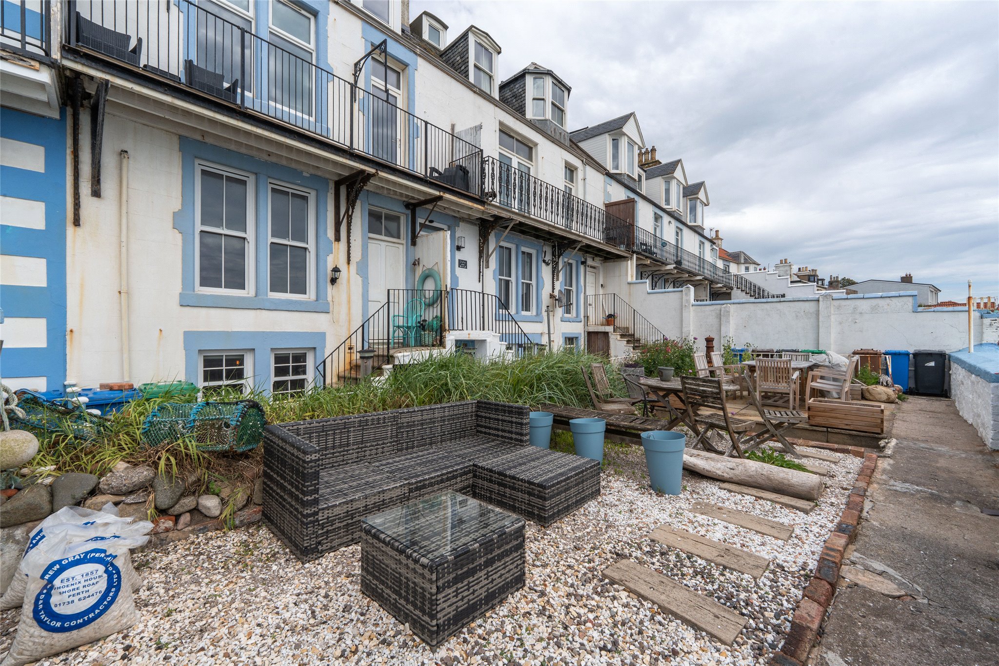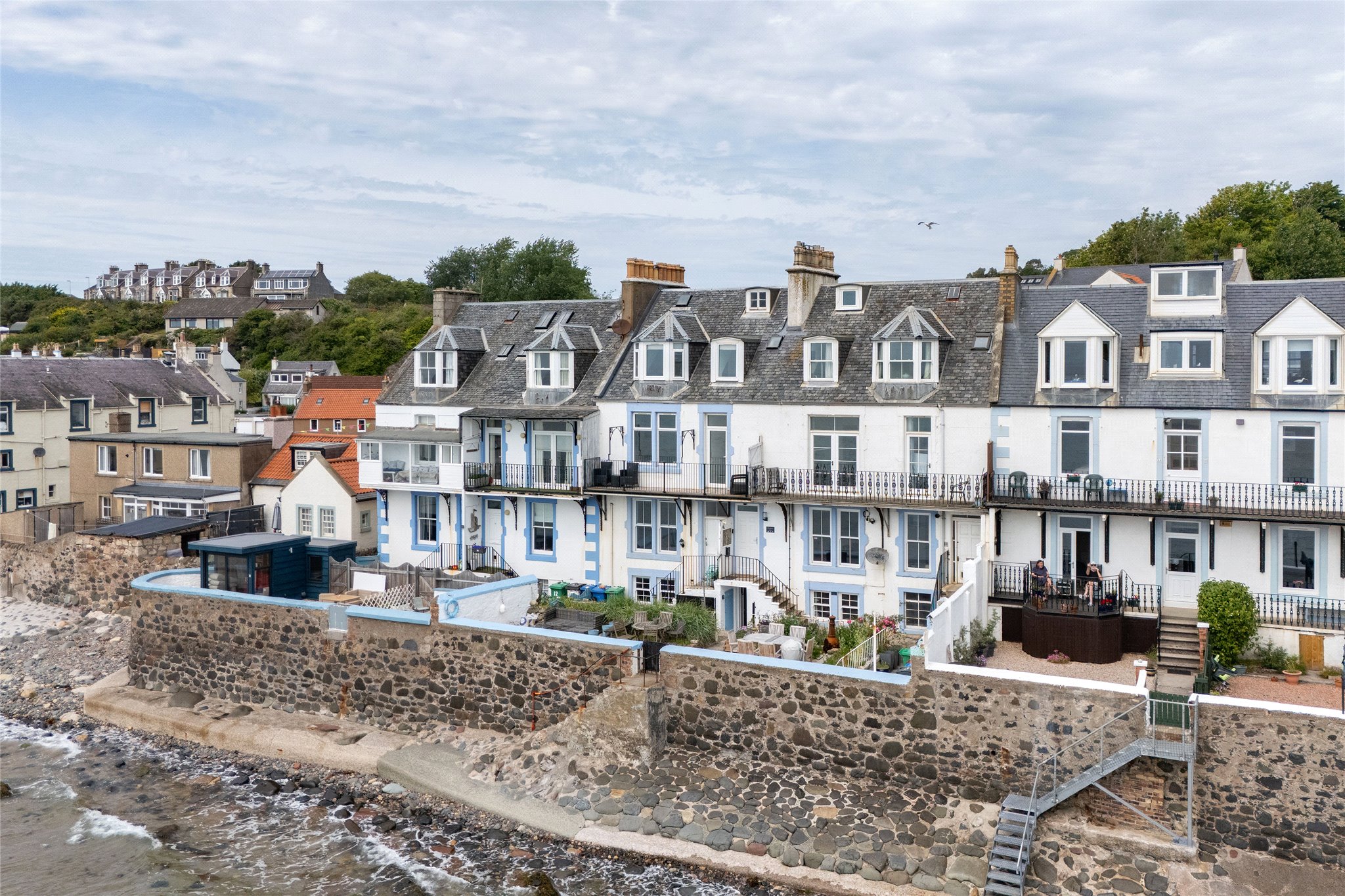 Enjoying an uninterrupted aspect across the Firth of Forth, Rockview split over two floors is a rarely available mid-terrace traditional Lower Largo home that blends period details with high-quality modern touches and a generous layout. A welcoming hallway decorated in soft muted tones creates a delightful first impression. With captivating Firth of Forth views, the living room situated to the left, exudes a sense of coastal warmth and comfort. Finished with wooden flooring, a log-burning stove, intricate cornicing, and a striking accent wall, the space is elegant and inviting. Its thoughtful split-level layout offers two distinct seating areas, perfect for relaxed day-to-day living or formal dining and entertaining. Bathed in natural light, the adjoining south-facing kitchen designed around a range cooker and breakfast bar, combines black and white cabinetry with real Italian marble worktops, a Belfast sink, and an integrated wine fridge. A separate utility room on the ground floor provides additional storage, while a convenient and classically styled guest WC adds practicality. Also on this level is a bright and airy principal double bedroom, enjoying a stunning coastal outlook and complemented by an en-suite bathroom complete with a shower enclosure, bath, countertop washbasin, and WC. On the basement level, a spacious and characterful living room awaits featuring original exposed beams, an open fireplace, and a charming window seat. From here, you move into a stylish breakfasting kitchen, where soft blue cabinetry is paired with a stainless-steel range cooker and marble-effect worktops to create a relaxed, coastal aesthetic. Two further tastefully presented double bedrooms, each with window seats, provide peaceful retreats and share access to a luxurious bathroom. With a wall-hung hidden cistern WC, bath, and a floating countertop washbasin set against turquoise coastal-inspired tiles, it evokes a spa-like sense of tranquillity. With direct access to the alfresco seating area, the basement level offers the flexibility to serve as a self-contained retreat — ideal for visiting friends and family, older children, or as a holiday let. The space benefits from its own private entrance, allowing for easy separation from the main residence, and has been successfully operated by the current owners as a holiday let, generating considerable rental income. (details available on request, following viewings)