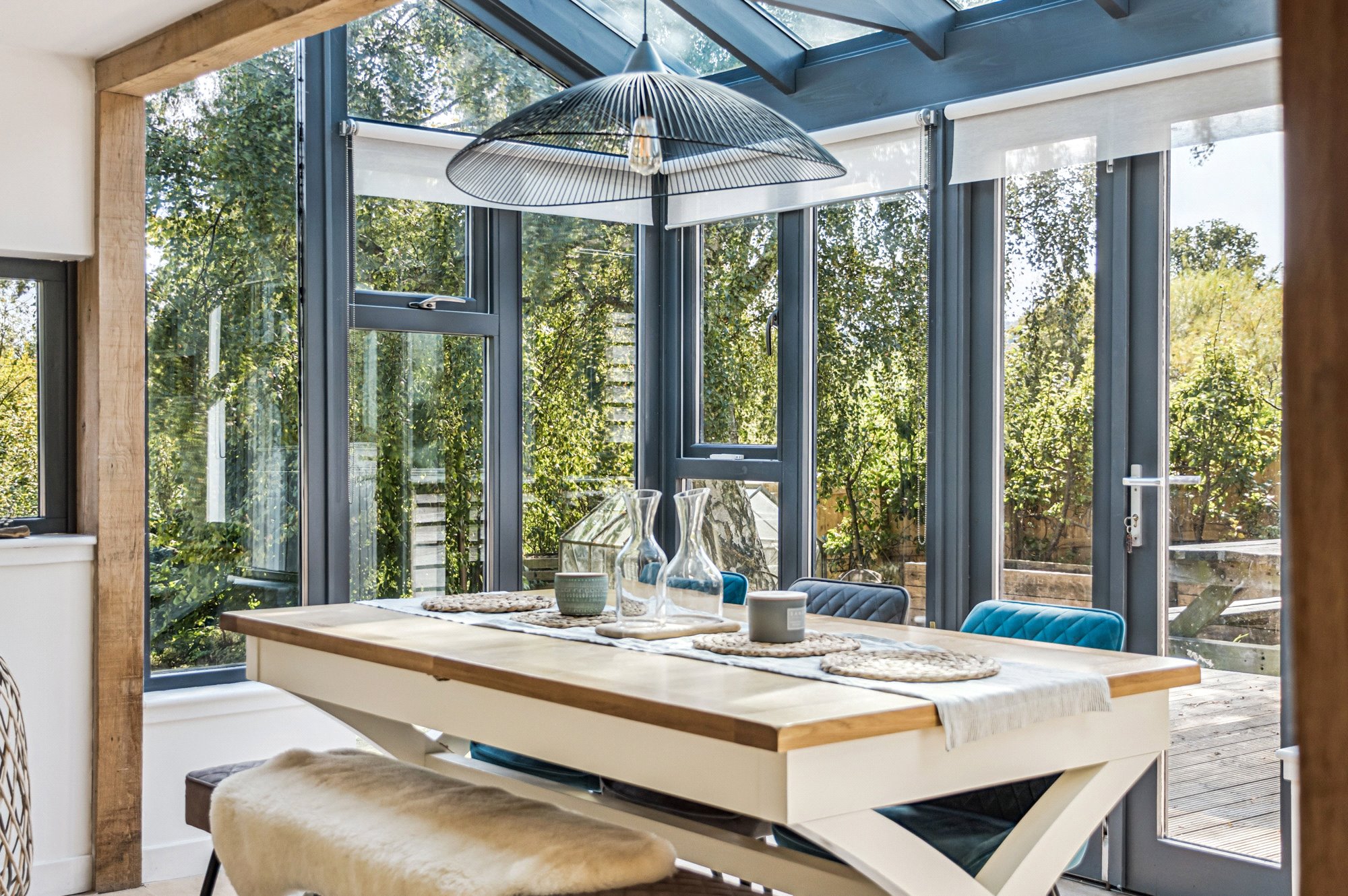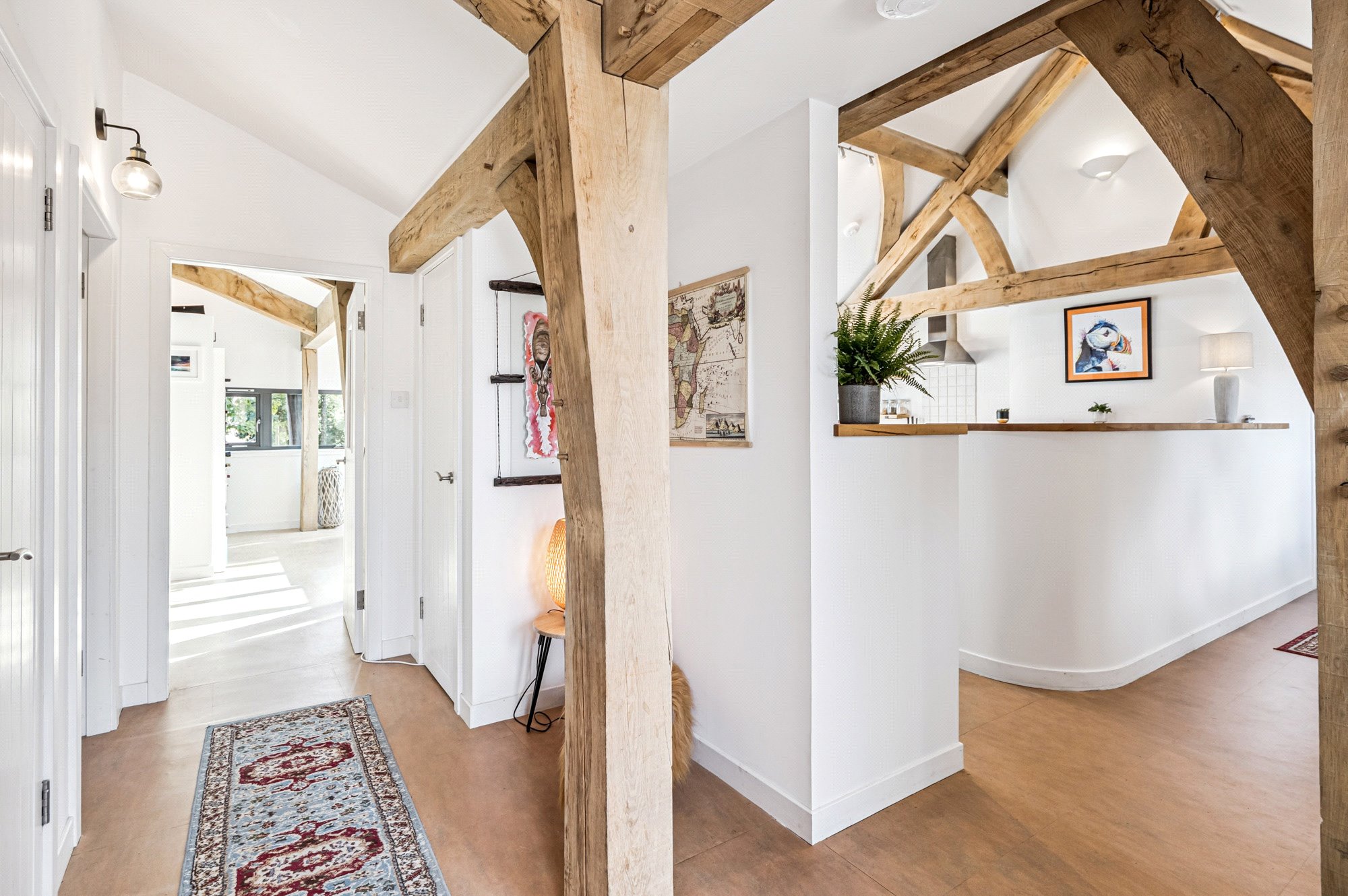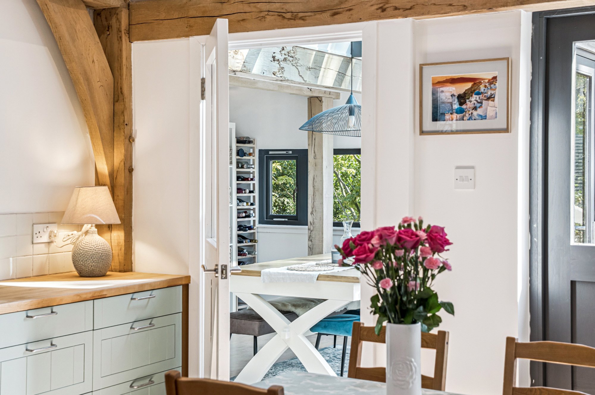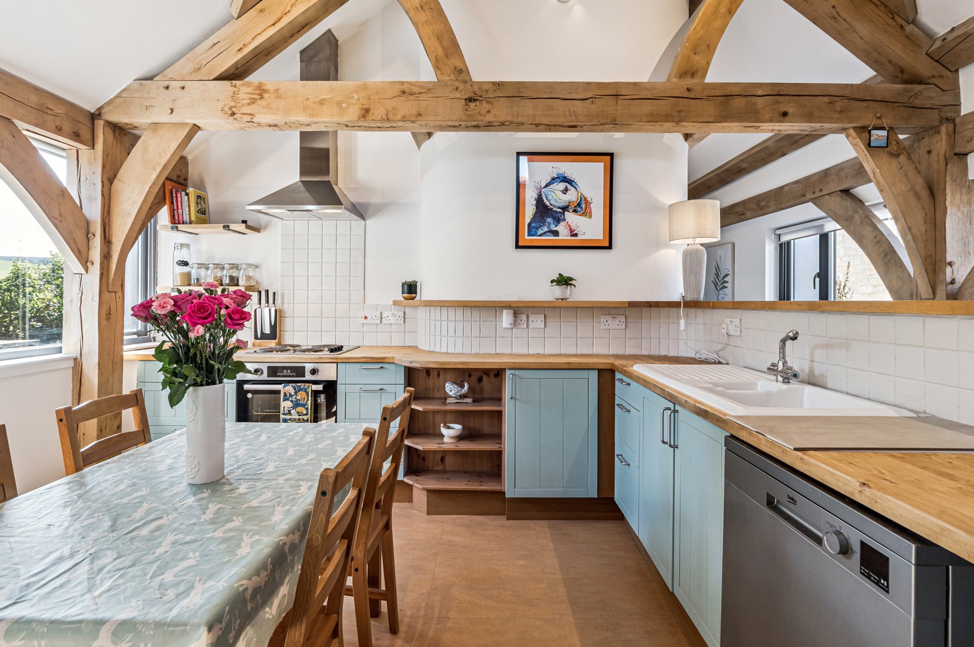 - Open-plan dining kitchen: well-equipped with integrated appliances, natural light and oak framing giving a relaxed country feel