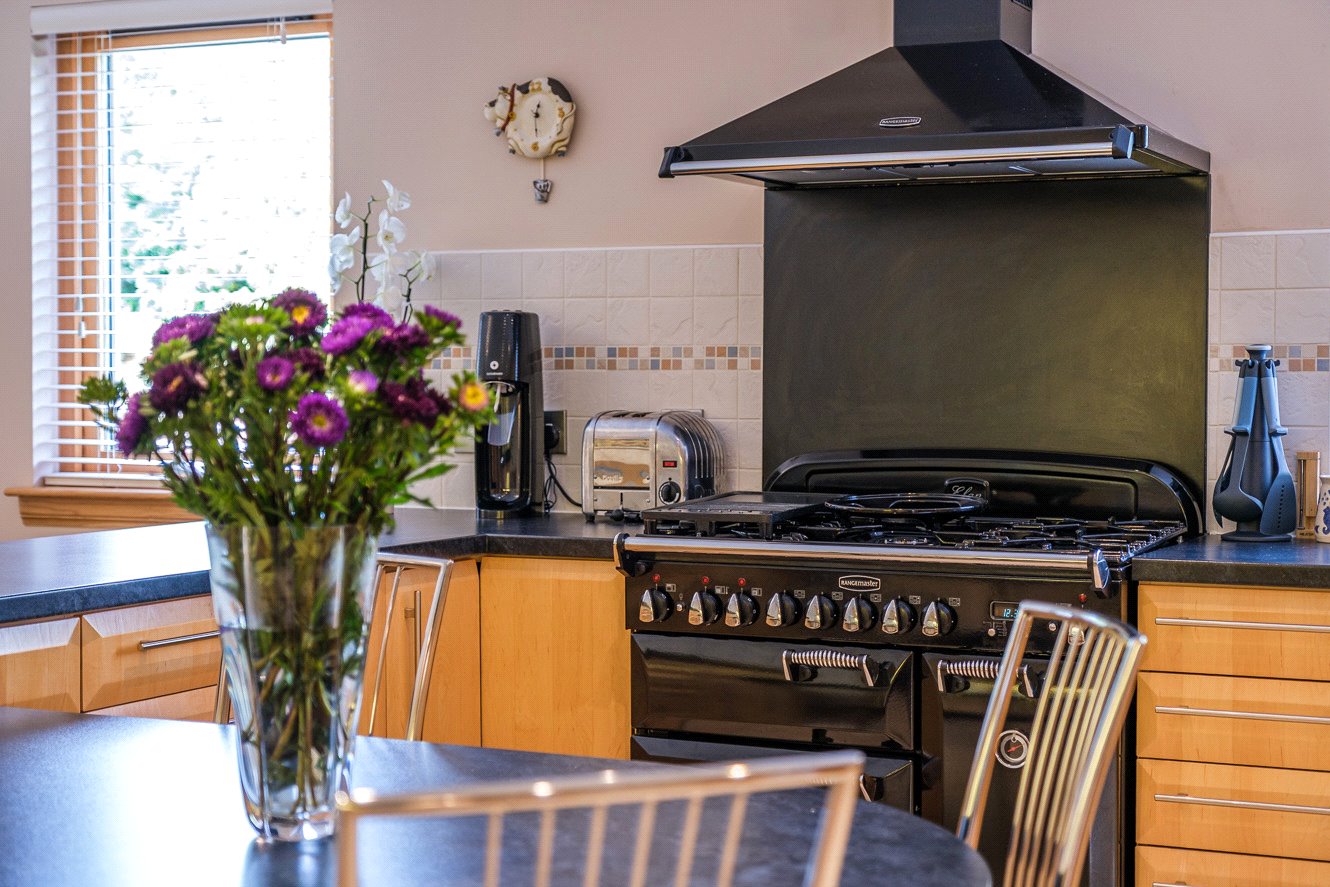 At the heart of the home lies the open-plan kitchen and family room, designed with both style and practicality in mind. Sleek cabinetry, quality integrated appliances, striking Rangemaster cooker with matching hood, and a carefully considered layout ensure this is a space equally suited to family life and entertaining, with seamless flow to the adjoining dining and sitting areas.