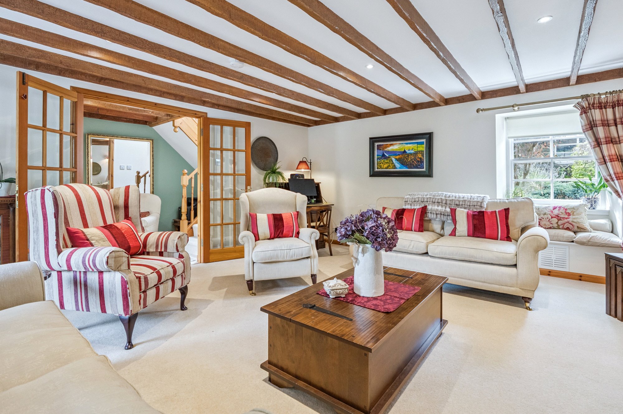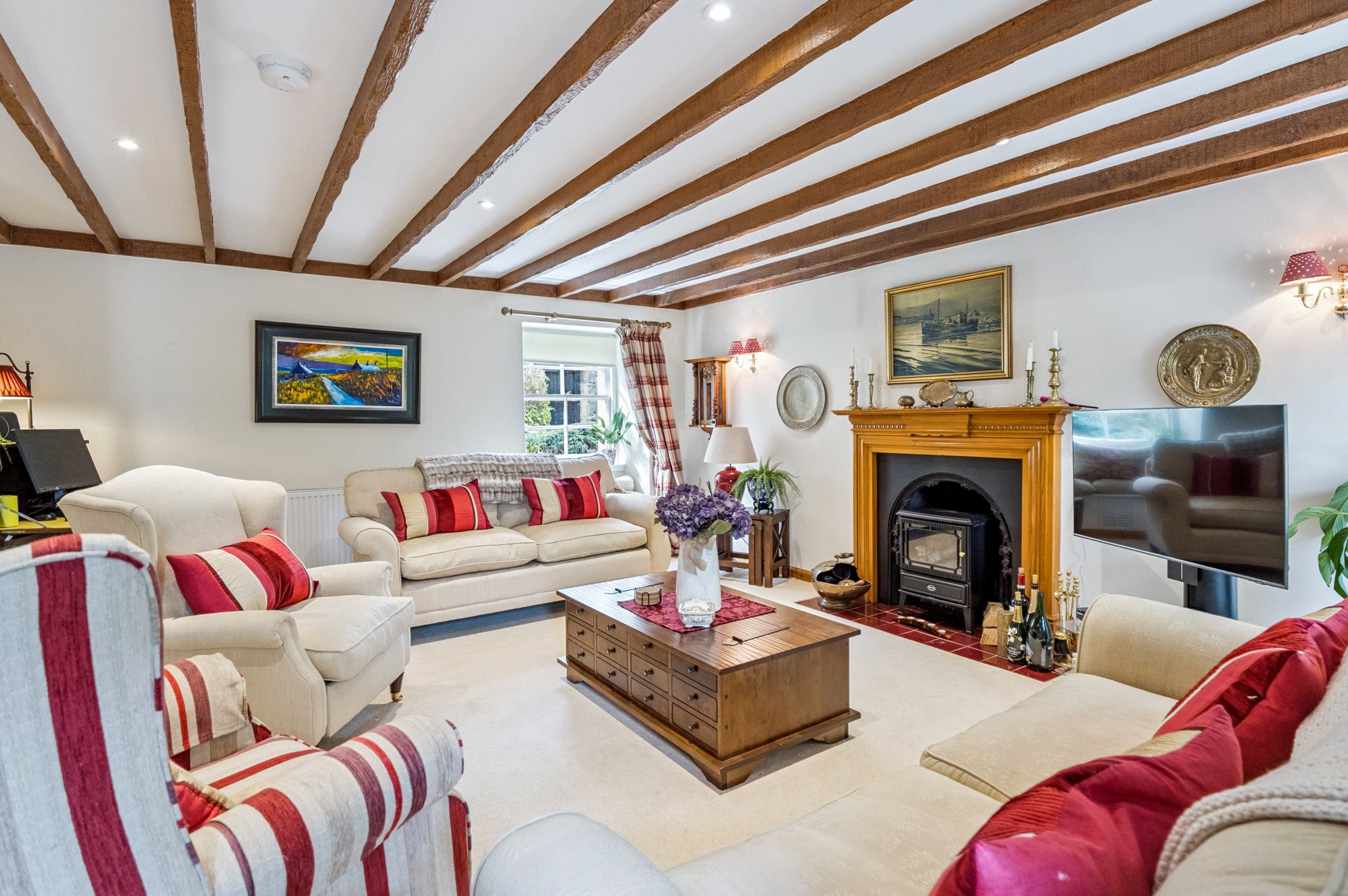 3 Royal Terrace is a delightful two-bedroom B listed terraced cottage set over two storeys, offering the perfect blend of traditional charm and homely comfort. The property is approached via a bright entrance hall, where the exposed wooden beams immediately set the tone for the character found throughout the house.