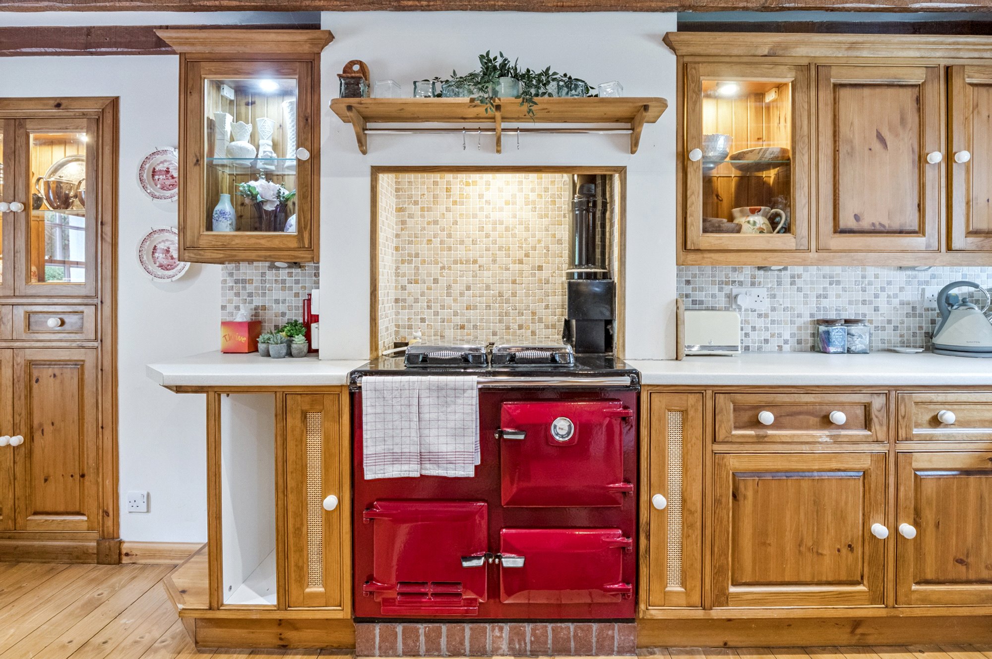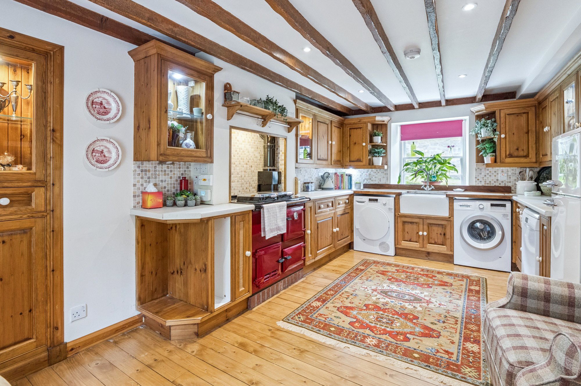 - Country-style dining kitchen with 2-burner solid fuel Aga and Belfast sink
