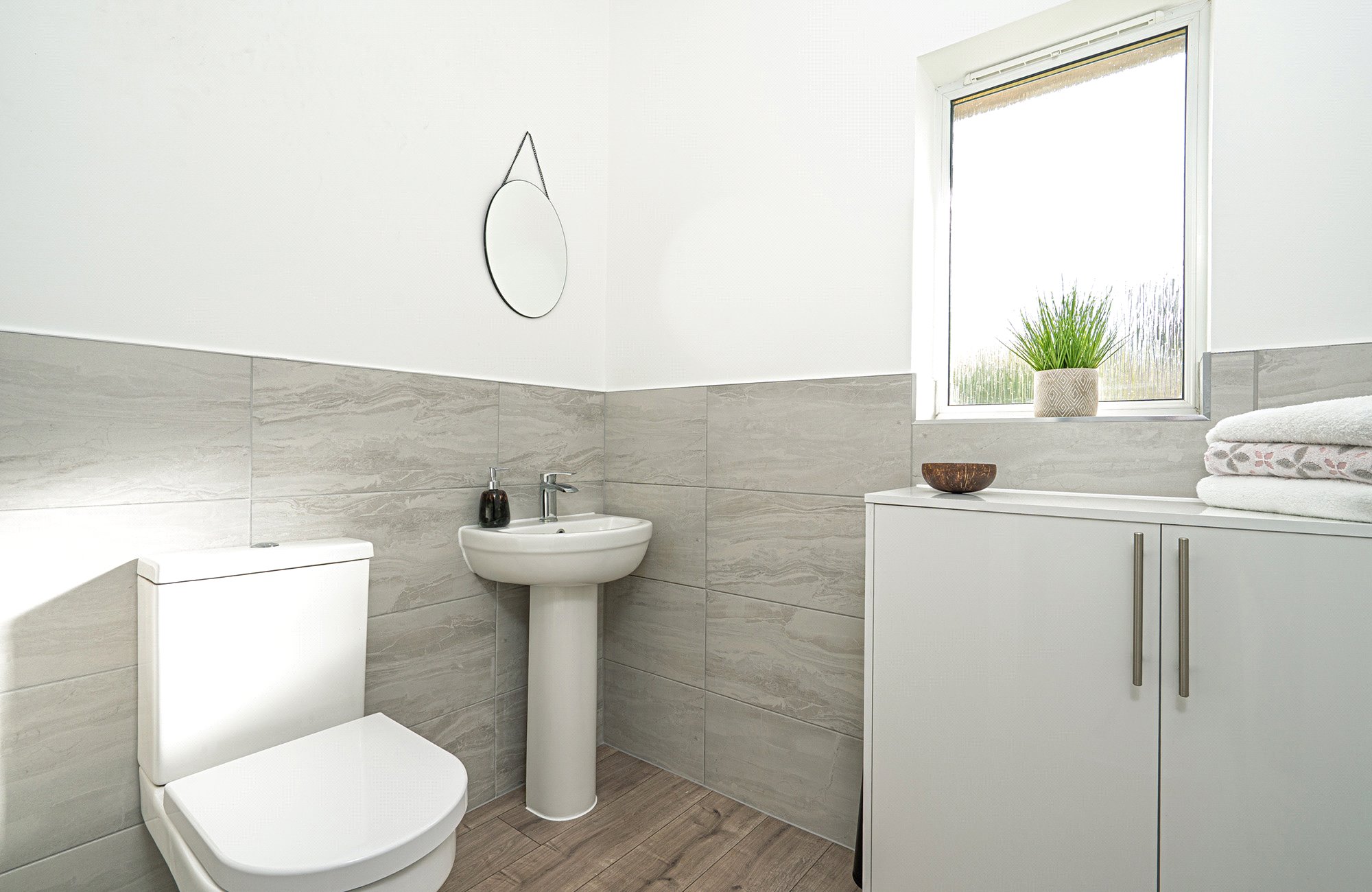 Three comfortable bedrooms include bedroom one with a modern en-suite shower room and inbuilt wardrobe, bedroom two also features inbuilt storage. A family bathroom and separate WC complete the accommodation. Throughout, the décor is fresh and neutral, with wood flooring in the main living areas and soft carpeting in the bedrooms.
