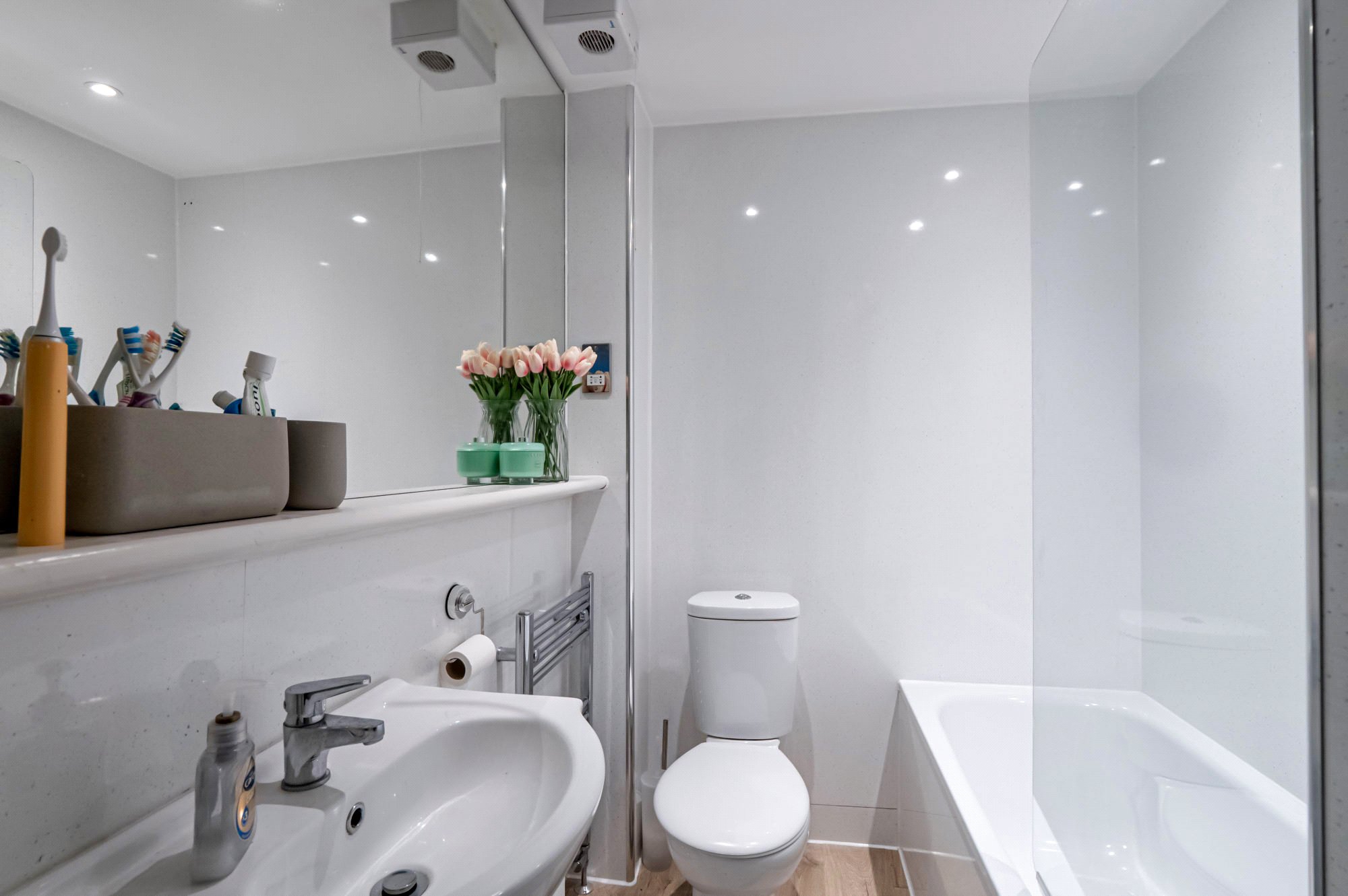 - Bathroom with shower over bath