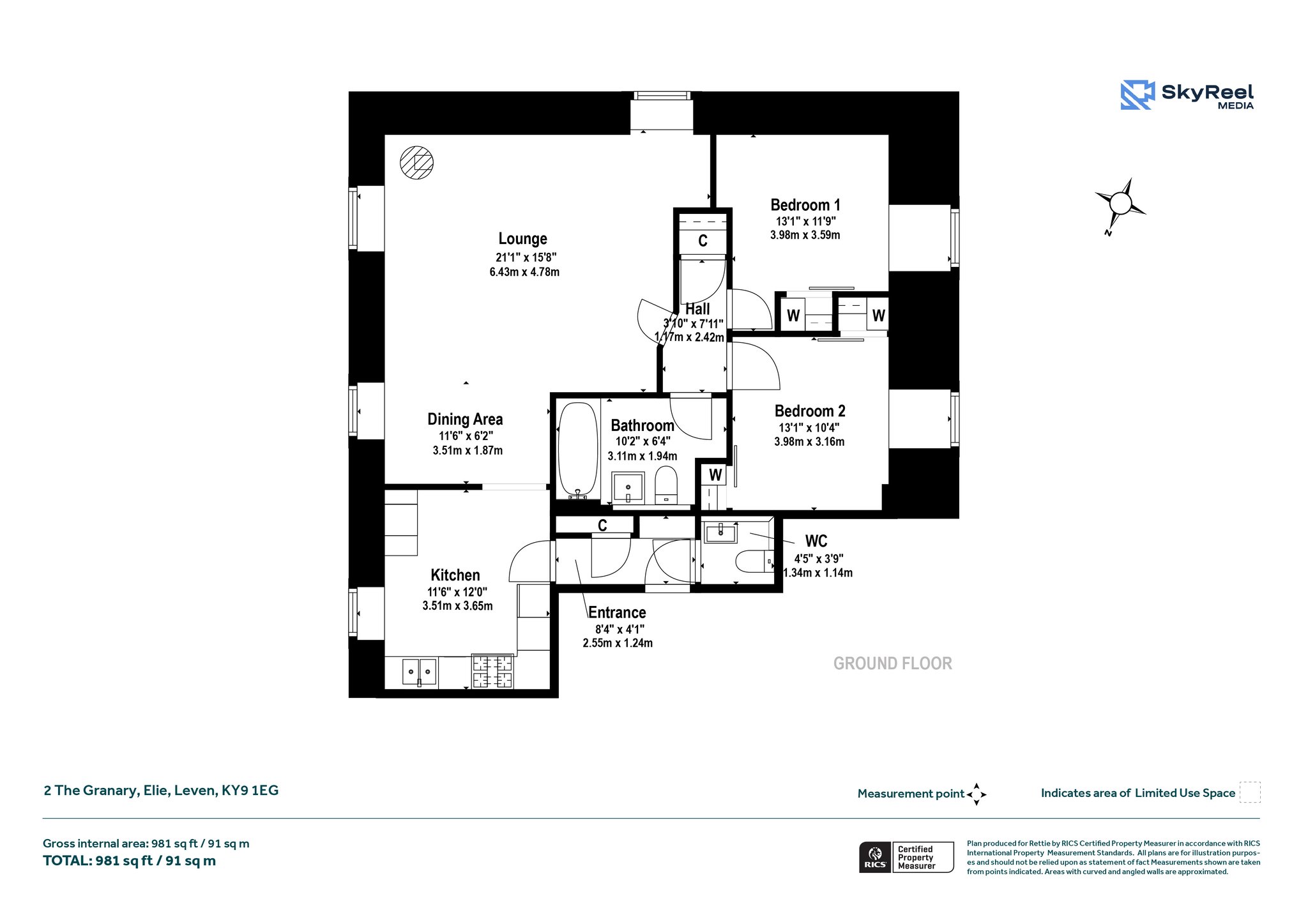 All Rettie floorplans are drawn to RICS standard. The text, photographs and plans are for guidance only and are not necessarily comprehensive and it should not be assumed that the property remains as photographed. Any error, omission or mis-statement shall not annul the sale or entitle any party to compensation or recourse to action at law. It should not be assumed that the property has all necessary planning, building regulation or other consents, including for its current use. Rettie & Co. & Rettie LLP’s have not tested any services, equipment or facilities. Purchasers must satisfy themselves by inspection or otherwise and ought to seek their own professional advice.