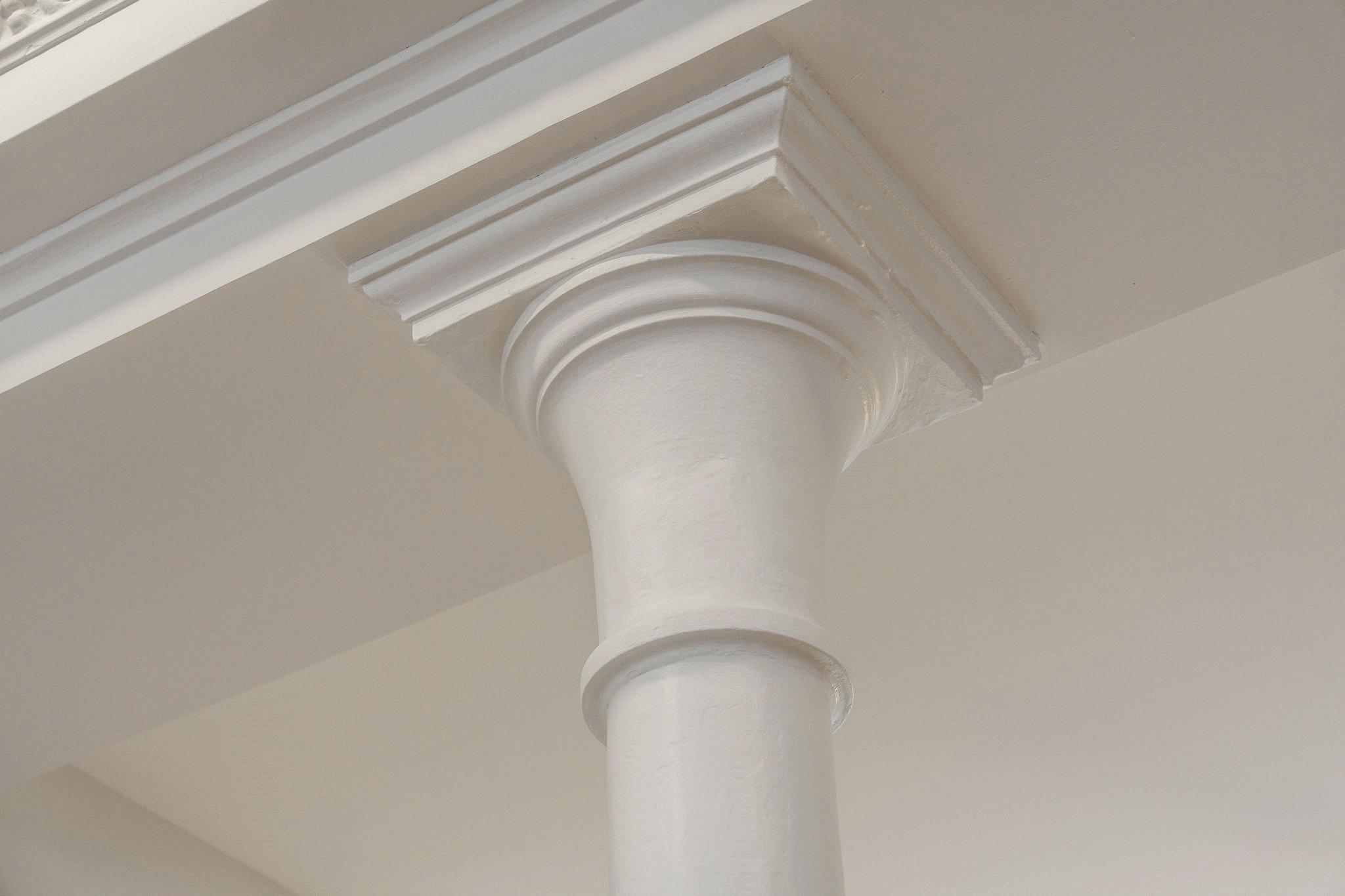 Thoughtful lighting enhances every detail, from the entry stairs to the custom lounge ceiling that highlights the cornice and the elegant up-lights on the columns.