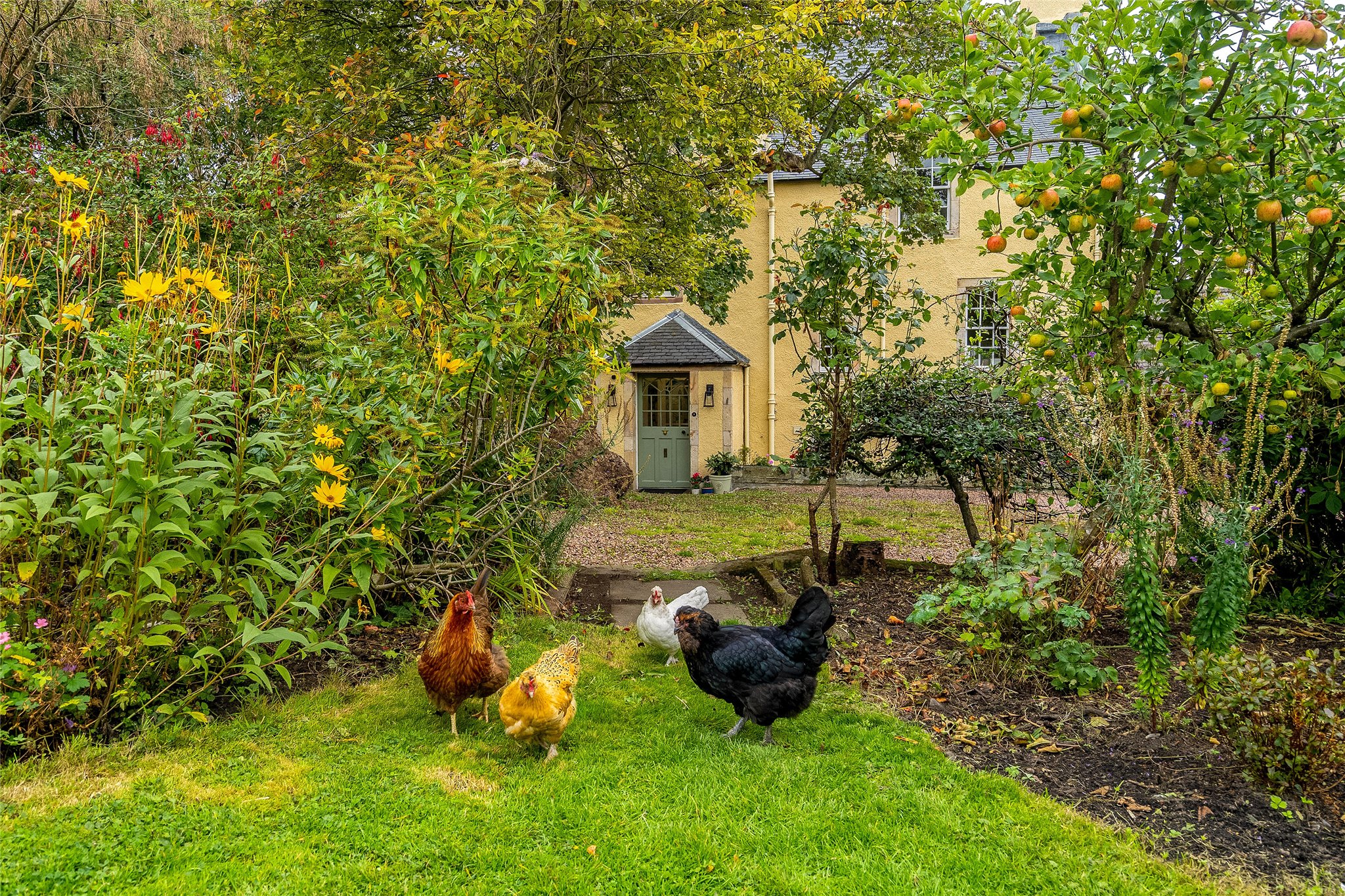 The property is nestled within beautifully mature and expansive private walled gardens with a lush lawn and established plants and flower beds, making a peaceful and secluded outdoor sanctuary. A particular highlight is the orchard, with flourishing fruit trees and carefully positioned ponds, which allow an abundance of nature to thrive.